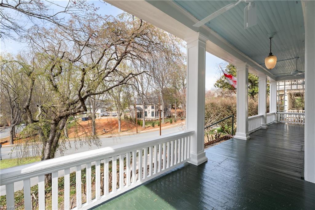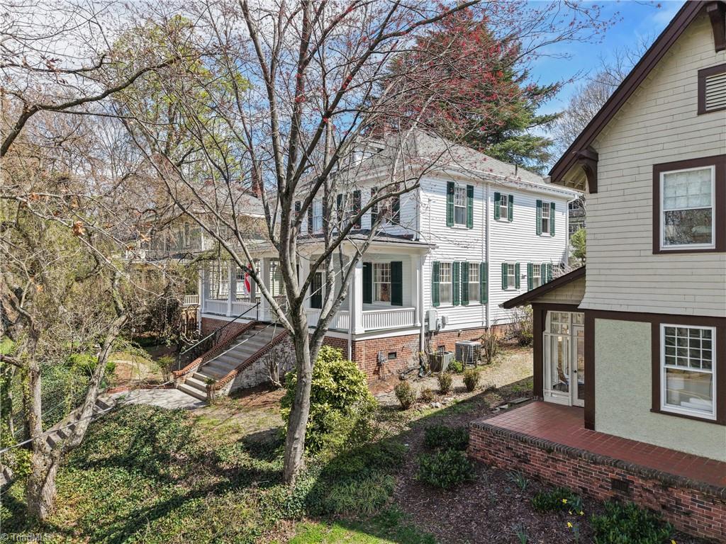 1224 Glade Street (The Carroll-Trivette House 1910) located in the West End Historic District. Close to all of your favorites ..... Hanes Park, Central Y, Grace Court, restaurants and shopping. Take in the view from a gorgeous wraparound front porch. High ceilings, generous room sizes, 3 fireplaces, handsome dining room, living room and updated large cook's kitchen. Primary bedroom suite has tiled steam shower, heated tile floor with spacious walk in closet and permanent strairs leading to floored attic. Easy access to rear alley, detached 2-car garage and additional parking spaces.