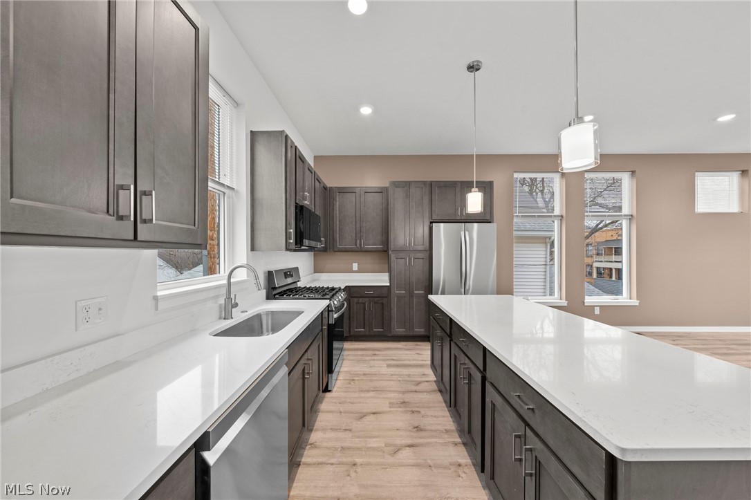 Welcome to the Gramercy Townhome Development! Brand new, will be tax-abated, and perfectly positioned in Ohio City! This unit is one of the "larger" options and therefore has a bonus room on the first floor! This never-been-lived-in 2-bedroom, 2.5-bath townhome offers one of the final opportunities to secure a FULL 15-year City of Cleveland tax abatement, keeping your monthly payment approachable. Thoughtfully designed and refreshingly complete, this townhome checks every box. Inside, you'll find soaring ceilings, energy-efficient vinyl windows, wide-plank luxury vinyl flooring throughout, and a beautifully finished kitchen with quartz countertops, full appliance package, and soft-close cabinetry. Units offer either classic white with black hardware or a warm "greyson" tone (think brown/grey) paired with brushed nickel. Unlike many new builds, this home comes fully equipped with all appliances, including washer and dryer, plus installed window treatments. The layout offers two spacious bedrooms, each serviced by its own bath along with a half bath for guests. An attached 2-car garage adds rare functionality while the showstopper awaits above. A private rooftop deck with 360-degree views perfect for entertaining or unwinding against Cleveland's skyline sunsets. Part of an intimate 11-townhome community with two distinct floorplans and price points, this development delivers flexibility without sacrificing style. The low $100/month maintenance fee covers snow removal, trash, and common area upkeep, keeping ownership simple and predictable. Location? Just steps from the energy of Lorain Avenue and Gordon Square. Think local bookstores, cozy caf s, pizza spots and even the Redline Greenway bike trail. With one of the most attainable price points for new construction in the area, paired with full tax abatement and turnkey living, opportunities like this are both rare and fleeting! Select units available for closing as early as May. Secure yours before they're gone.
