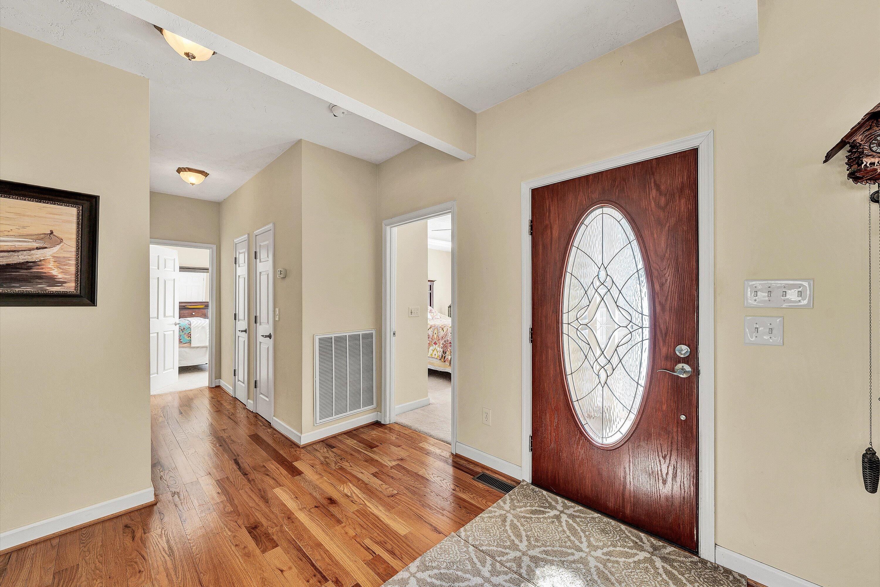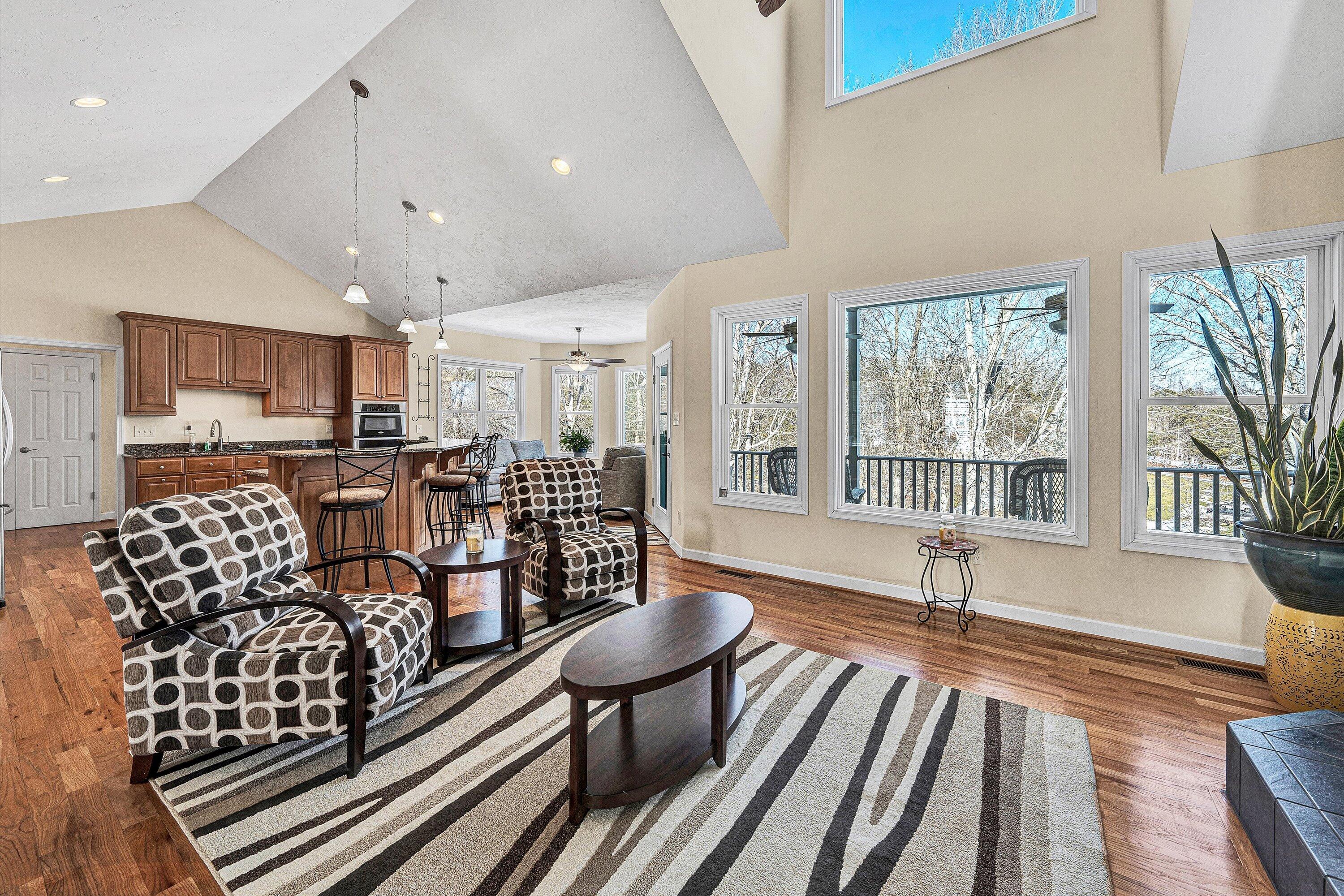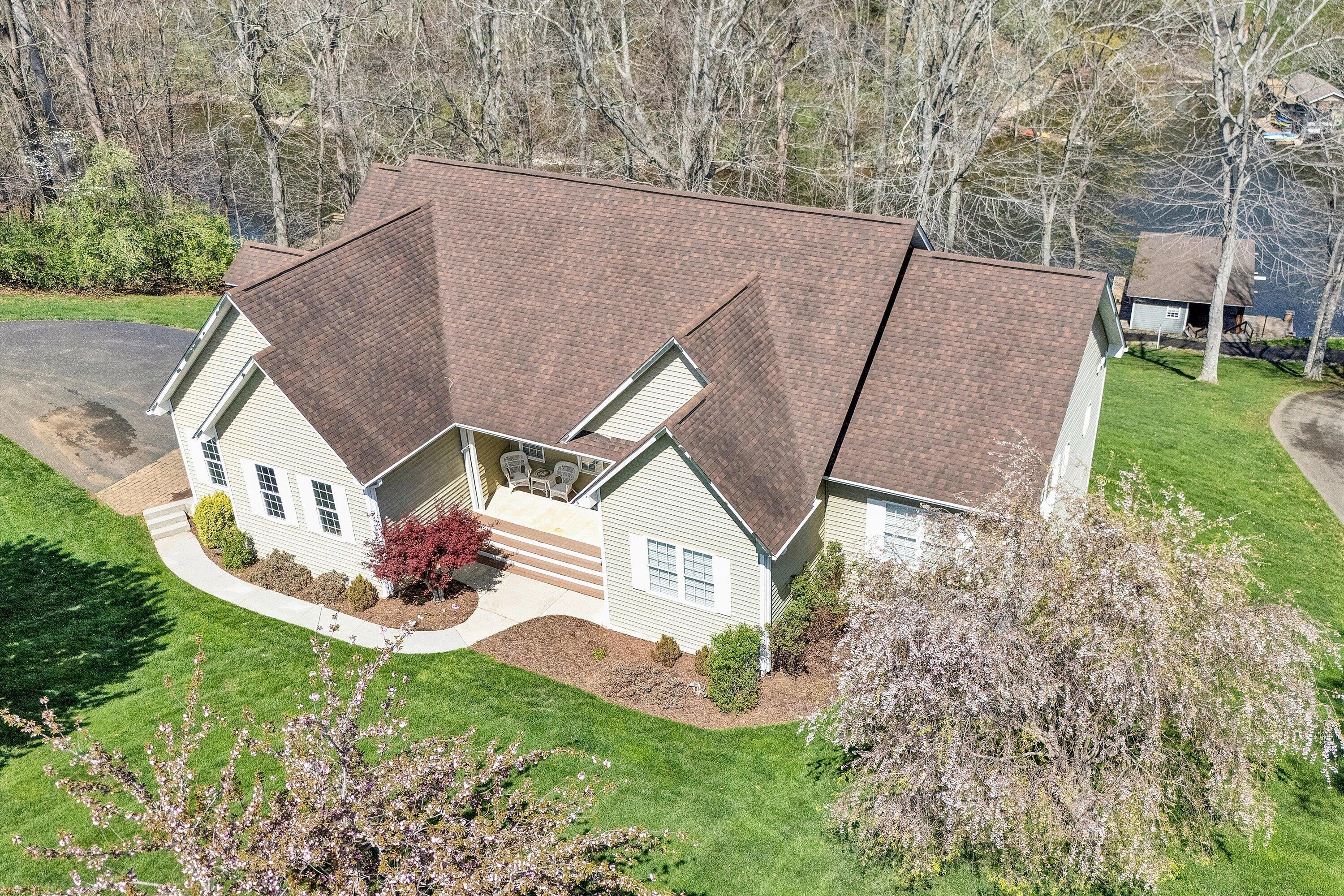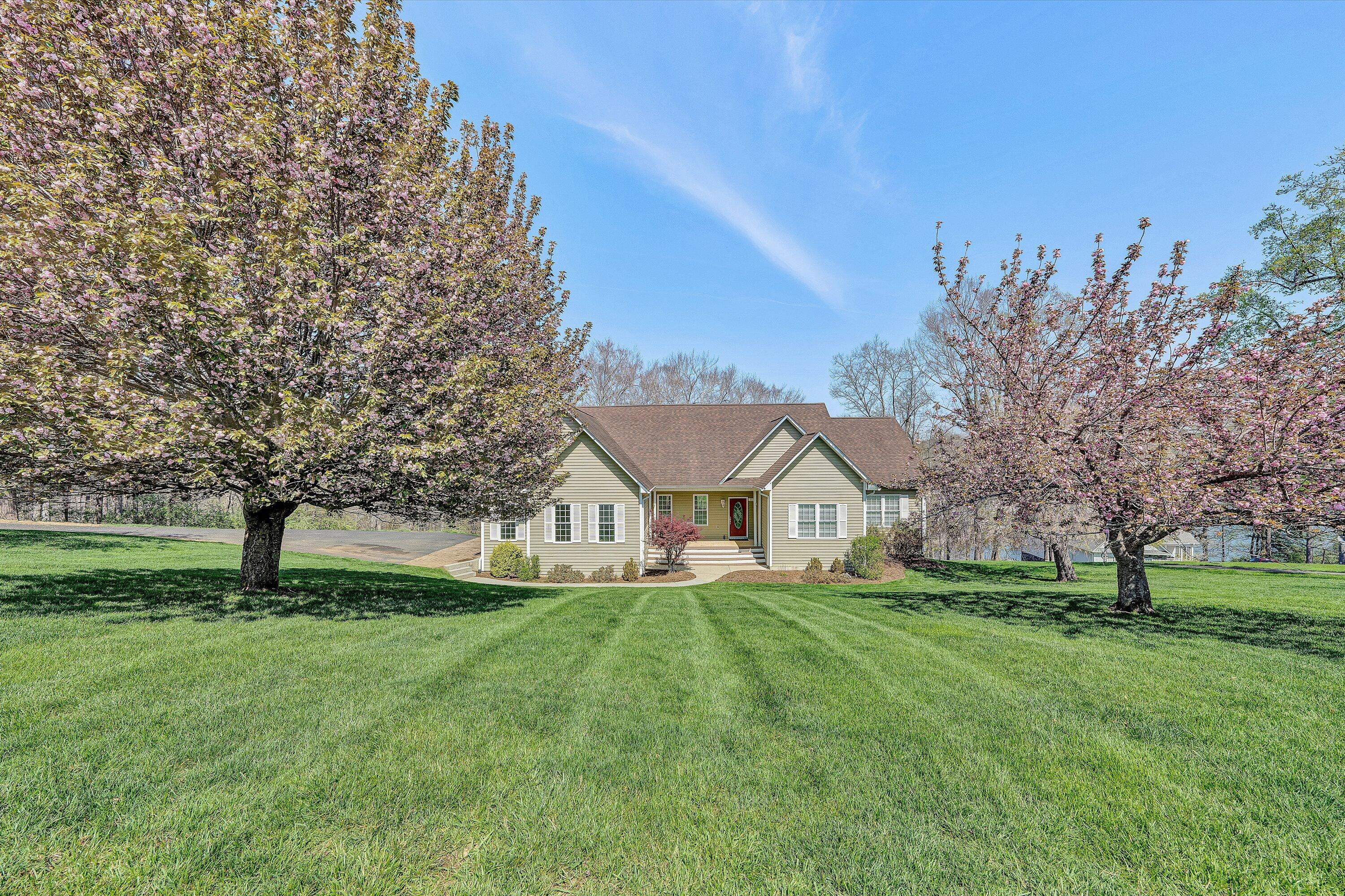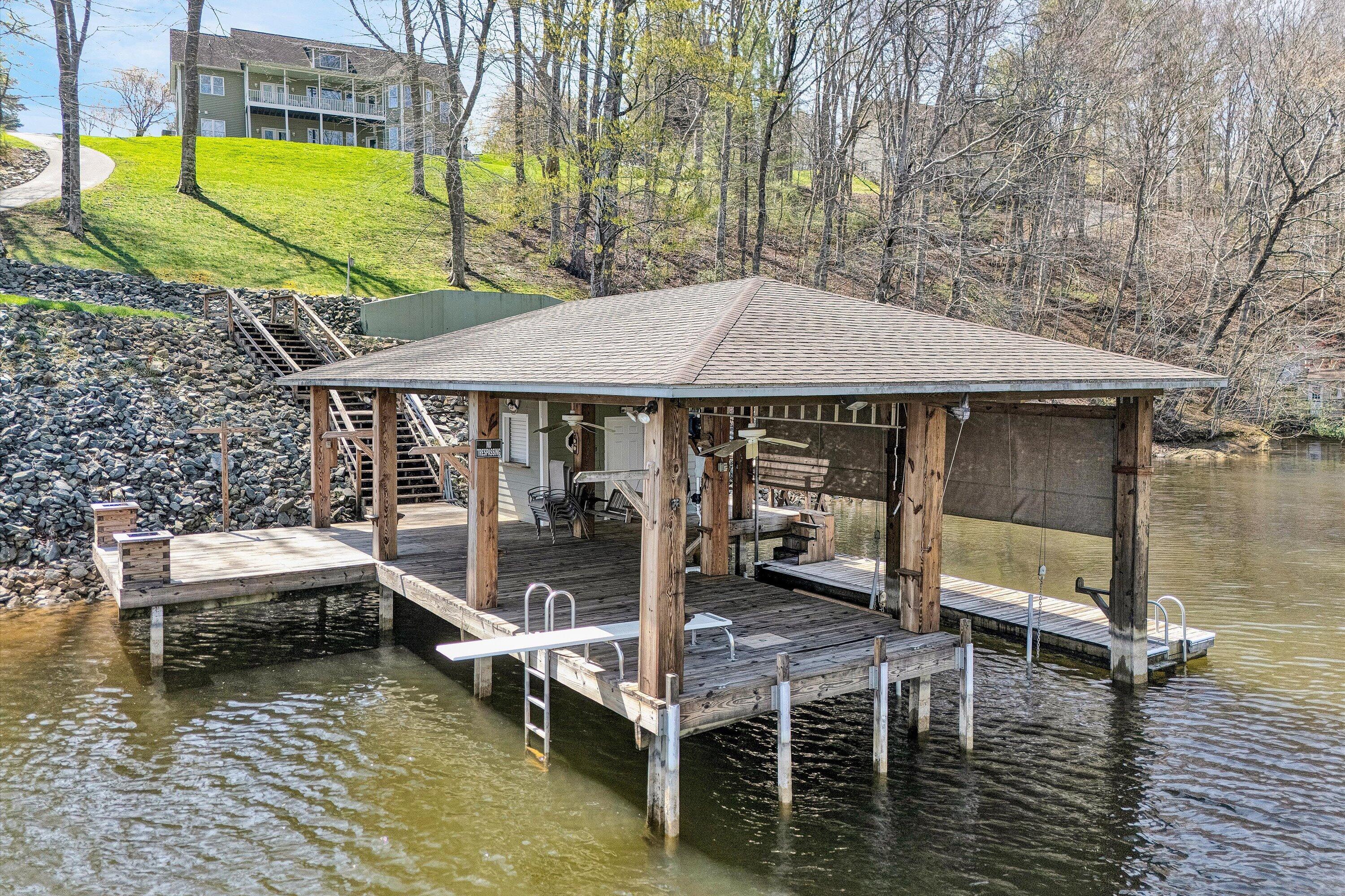 Custom built and thoughtfully designed, this home offers a highly functional floorplan with three bedrooms and two full baths on the entry level. From the moment you step inside, the home reflects a level of care and condition that truly shows like new. While difficult to fully capture in photographs, the expansive water views are exceptional in person! Mornings begin with breathtaking sunrises over the lake and evenings invite relaxation in a peaceful, private setting. The property continues to impress at the water's edge, featuring a deep water dock (approximately 18' depth) complete with a boathouse and diving board--perfect for swimming, boating, and enjoying some of the area's best fishing. Inside, thoughtful details enhance both comfort and functionality, including a spacious kitchen