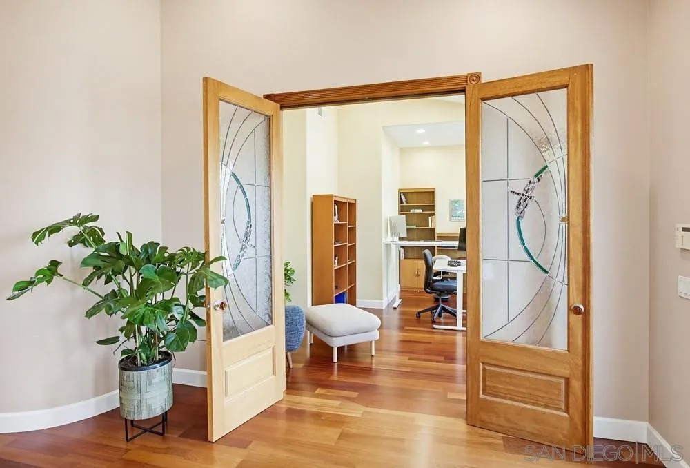 Welcome to 13620 Holly Oak Way, a premier single-level home in Poway, CA, offering luxury upgrades, an attached ADU, and energy-efficient living in one of the most sought-after Poway neighborhoods. This 2,413 sq ft main home features 3 bedrooms, 2.5 bathrooms, and two offices - perfect for remote work or flexible living. Highlights include Brazilian cherry hardwood floors, custom architectural details, and a chef's kitchen with Miele appliances, granite countertops, large island, and walk-in pantry. The primary suite offers a spa-style bath with steam shower, soaking tub, and backyard access. The attached, fully permitted 785 sq ft ADU in Poway includes 1 bedroom, 1 bath, plus office, a full designer kitchen with Aga induction range, white oak floors, vaulted ceilings, smart home features, and indoor-outdoor flow to the pool. Enjoy a saltwater lap pool, built-in BBQ, citrus trees, owned solar, EV charger, and no HOA or Mello-Roos. Located in Poway Unified School District near top-rated schools, parks, and trails - this is a rare Poway real estate opportunity. Welcome to 13620 Holly Oak Way, a rare opportunity to own a single-level luxury home in Poway, CA with a fully permitted attached ADU, located in one of the most desirable neighborhoods in Poway. This exceptional Poway property combines quality construction, high-end upgrades, and flexible living - making it one of the most unique homes for sale in Poway. The main residence offers approximately 2,413 square feet with 3 bedrooms, 2.5 bathrooms, and two dedicated offices - ideal for buyers seeking a home office in Poway or flexible living space. Interior features include Brazilian cherry hardwood floors, custom architectural details, plantation shutters, LED lighting, and a spacious living room with fireplace and built-in surround sound. The chef's kitchen is designed for both everyday living and entertaining, featuring premium Miele appliances, granite countertops, travertine backsplash, a large center island, and a walk-in pantry - highly desirable features for buyers searching for upgraded homes in Poway. The primary suite offers a private retreat with backyard access and a spa-style bathroom, including a steam shower, soaking tub, dual vanities, and walk-in closet - highlighting the luxury lifestyle found in top Poway CA homes for sale. A standout feature is the attached, fully permitted 785 sq ft ADU in Poway (built 2023) with private entrance and independent systems. This Poway ADU home includes 1 bedroom, 1 bathroom, plus office/optional bedroom, vaulted ceilings, skylights, smart home features, white oak flooring, and a designer kitchen with Aga Elise 48" induction range, quartzite surfaces, and premium appliances. The living space opens to the backyard through a Western multi-slide door, creating seamless indoor-outdoor living. The outdoor space is designed for the Southern California lifestyle buyers expect in Poway luxury homes, featuring a saltwater lap pool with Wi-Fi controls, pool heat pump, built-in BBQ island, exterior speakers, citrus trees, raised garden beds, and low-maintenance landscaping. Additional features include owned solar systems sized for both the main home and ADU, EV charger, 200-amp electrical panel, 2x6 construction, central vacuum, 2-car garage, and no HOA or Mello-Roos - key features buyers actively search for in Poway real estate listings. Located within the highly rated Poway Unified School District, and close to parks, trails, and local amenities, this move-in-ready property represents a rare chance to own a turnkey Poway home with ADU in a prime location.