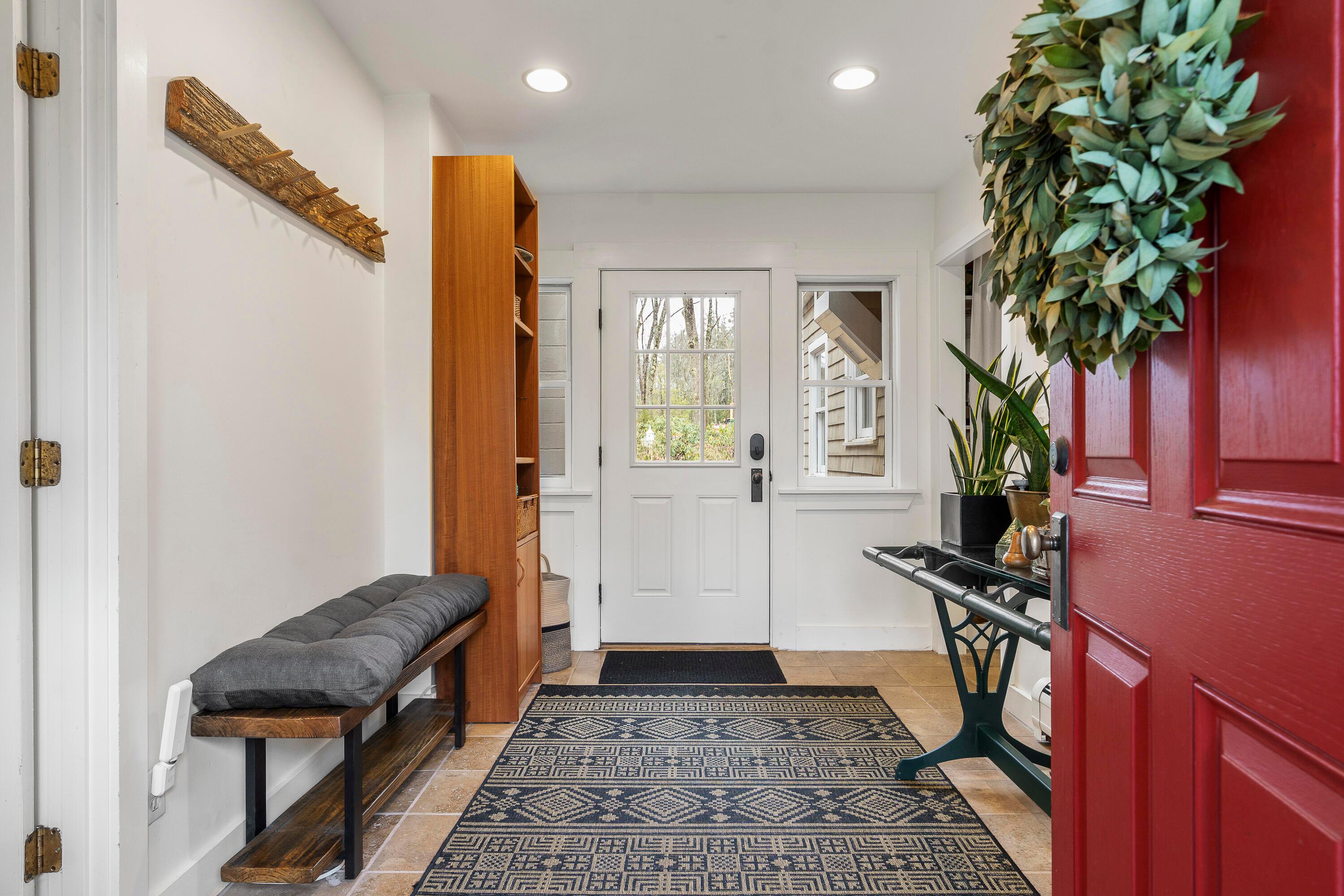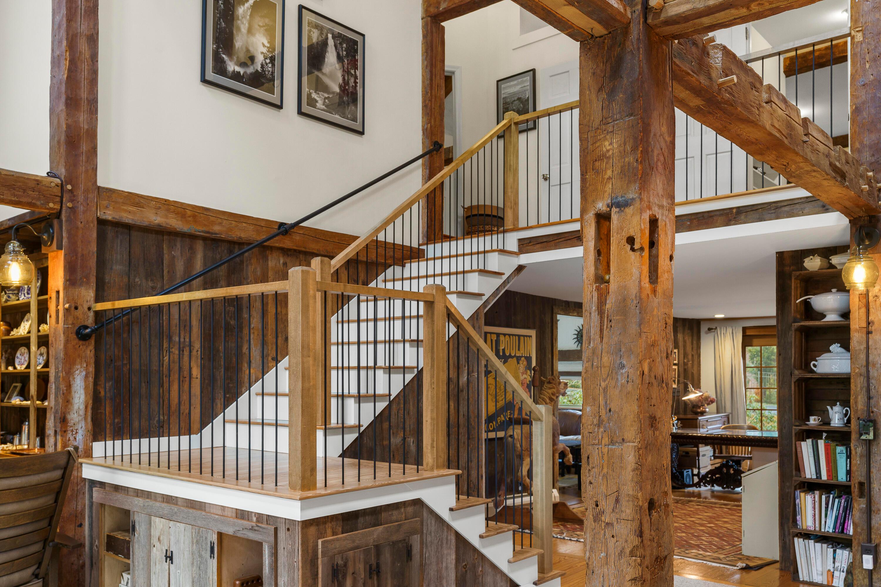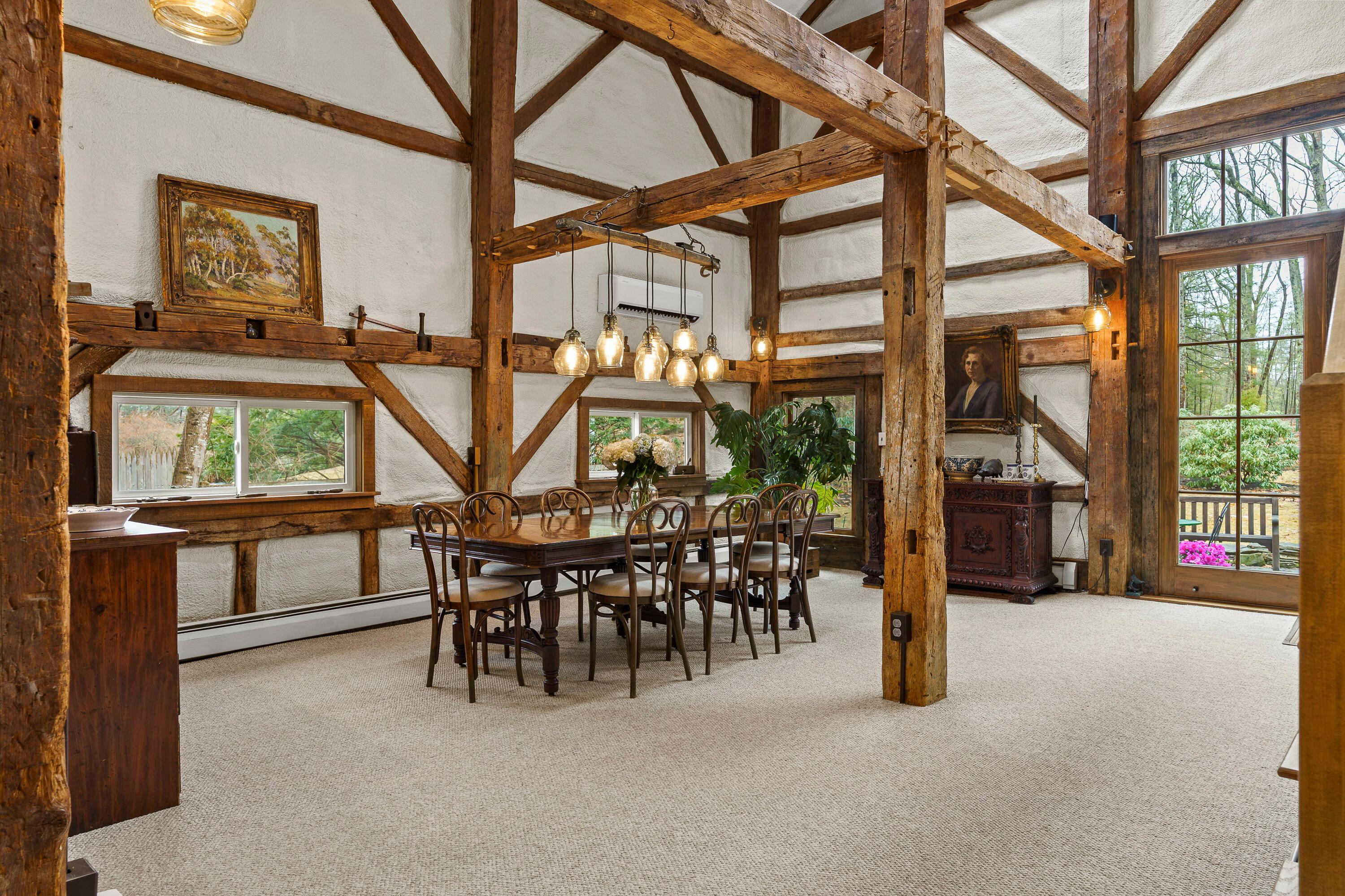 Steeped in history and rich with character, this extraordinary post-and-beam barn home offers a rare opportunity to own a piece of Maine's past--thoughtfully adapted for modern living. Originally constructed in the early 1800s and converted into a residence in the 1970s, the property has been lovingly maintained and enhanced over the years, including the addition of a two-car garage with a one-bedroom apartment in the early 2000s. Ideally situated in highly desirable Cumberland Foreside, the location is as exceptional as the home itself.Inside, the home showcases remarkable historic craftsmanship. Hand-hewn timbers are joined with traditional mortise-and-tenon construction, still bearing the original Roman numeral markings used by builders to align each beam. The dramatic central ceiling soars to 26 feet, creating a cathedral ceiling, while the expansive original barn doorways allow natural light and views of the stone patio and lush grounds. Artistic and period details, including reclaimed barn wood, thoughtfully chosen fixtures, and vintage-style flathead nails, add depth and authenticity throughout.The main residence features 3 bedrooms and 2 full bathrooms, along with an open-concept living area anchored by the stunning ceiling height and architectural elements. The upper loft, currently used as an artist's studio, offers an inspiring and flexible space. The attached apartment provides 1 bedroom, 1 bath, an open living area with kitchen, and a private entrance.Outdoors, the property is a true horticultural haven. Carefully curated gardens and plantings create a vibrant, ever-changing landscape. Spring brings blooming plants and trees surrounding the lawn. A charming kitchen herb garden complements the rustic stone patio, and the grounds attract a wide variety of wildlife, offering a peaceful, nature-filled setting.A home filled with warmth and cherished memories, this unique property is ready to welcome its next chapter.