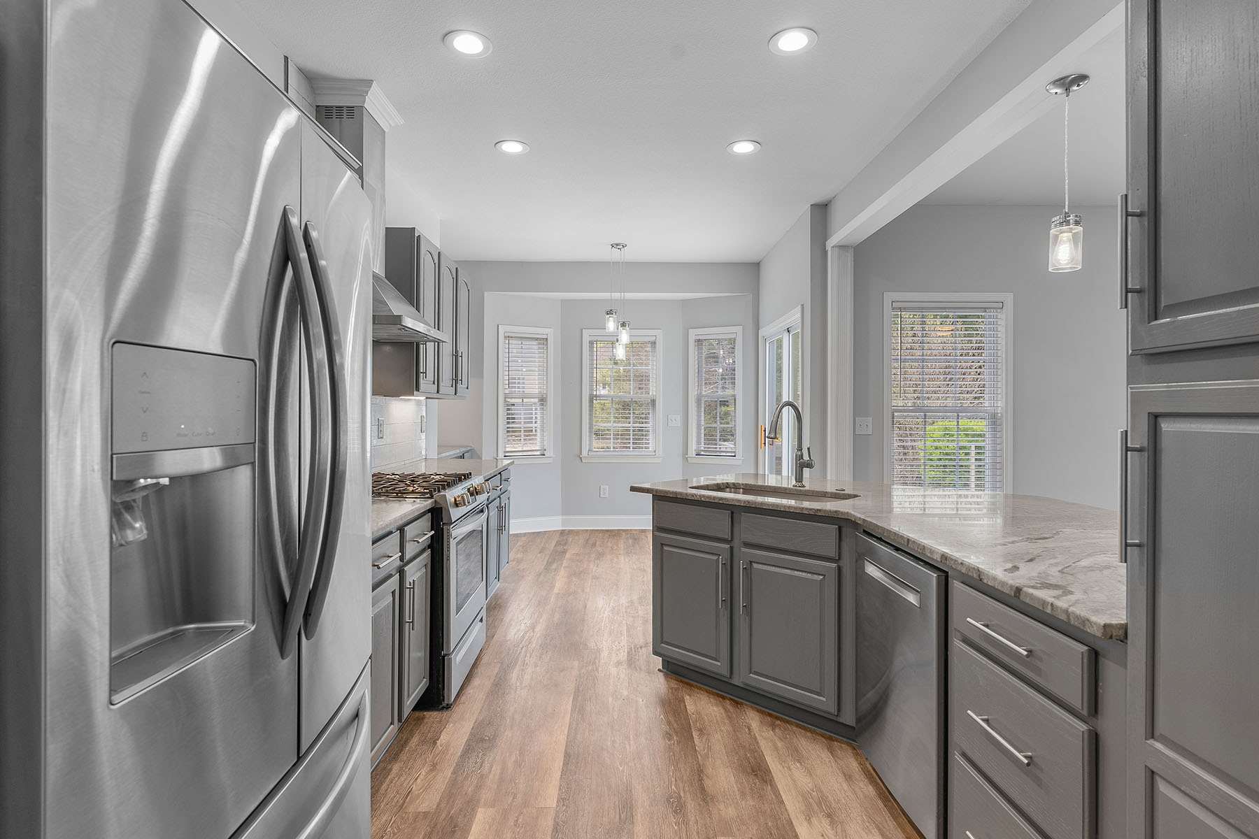 This beautiful residence in Carriage Park offers an exceptional blend of privacy and convenience. Designed with a split floor plan, the 2,075-square-foot interior features a spacious primary ensuite with a magnificently designed bathroom and soaking tub, new carpet, new flooring, and updated lighting. The newly remodeled, gourmet custom kitchen details an overhead range hood, pot filler and ambient under-cabinet lighting, combining elegance with everyday functionality. Outdoor living is elevated with 700 square feet of decking, modern cable railing, fire pit, green space and tranquil pond views, perfect for relaxing or entertaining. The home has also been fitted with a new roof. Carriage Park residents enjoy a clubhouse, indoor pool and scenic walking paths. This property delivers a convenient balance, move-in ready, upgrades, and serene surroundings. Sellers use level back entrance daily. Please reference the feature sheet for more information. A wall and door were added to the DR for a home office. Call me to schedule a tour.
