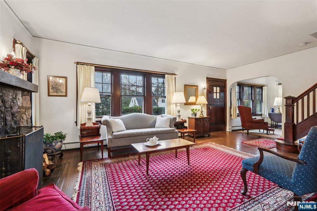 Welcome to the storybook charm of 476 Alpine Terrace! Nestled in an enclave of beautiful homes on a quiet tree-lined street in Ridgewood's premier Willard district, this 3-bedroom, 2-bathroom Tudor Colonial radiates warmth and character from the moment you enter. The entry with a distinctive stained-glass window greets you into a sunny layout with great flow, featuring hardwood floors and beautiful archways throughout. The first level consists of a light-filled living room with a classic stone fireplace, an elegant formal dining room, a kitchen with a breakfast nook/built-in seating, and a versatile den/office. All three bedrooms have sizable closets and are located on the second level with walk-up access to attic storage. The spacious basement provides exceptional flex space for a rec room, including a full bath and laundry. Outside, the property includes a detached 2-car garage, a stone patio, and a backyard framed by mature trees. Located just blocks from Willard Elementary and NJ Transit, this home offers unparalleled convenience. Opportunity awaits!