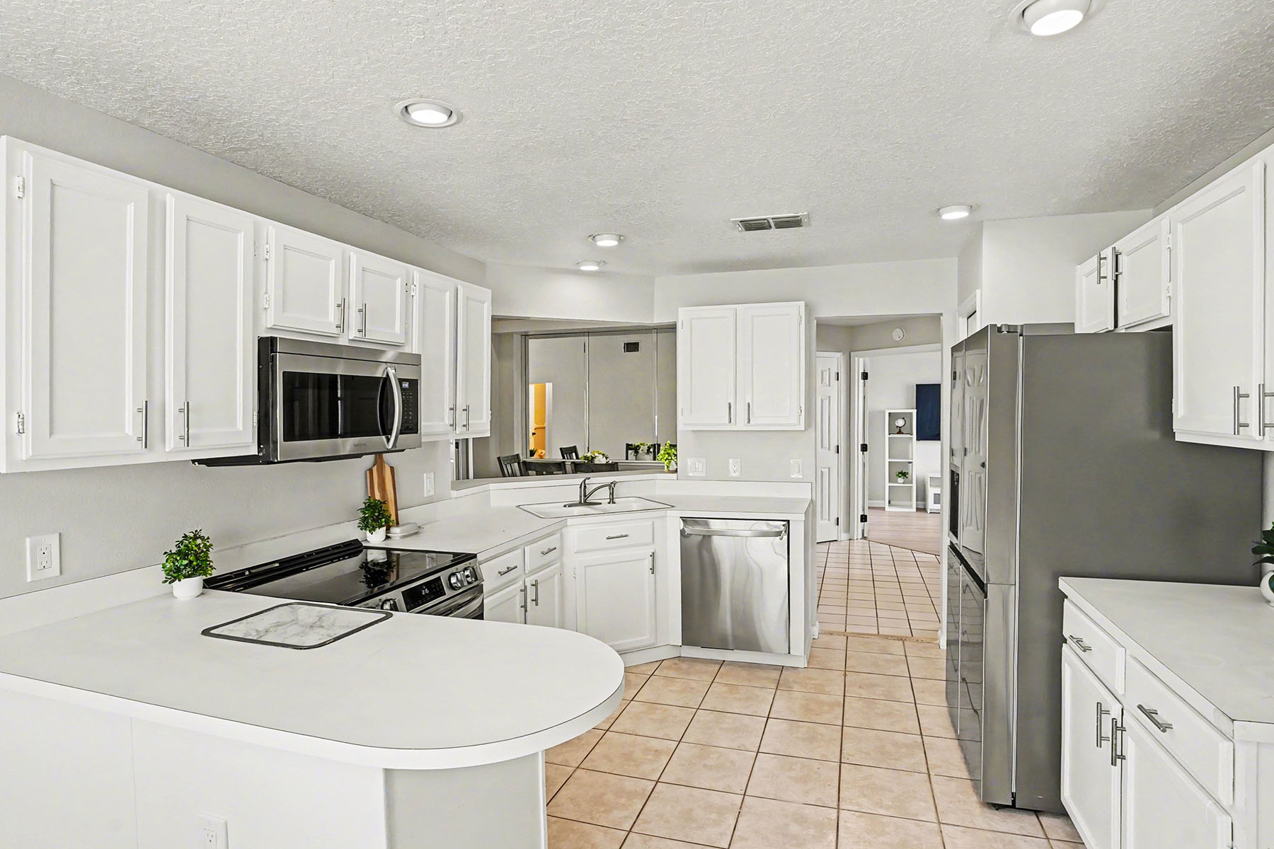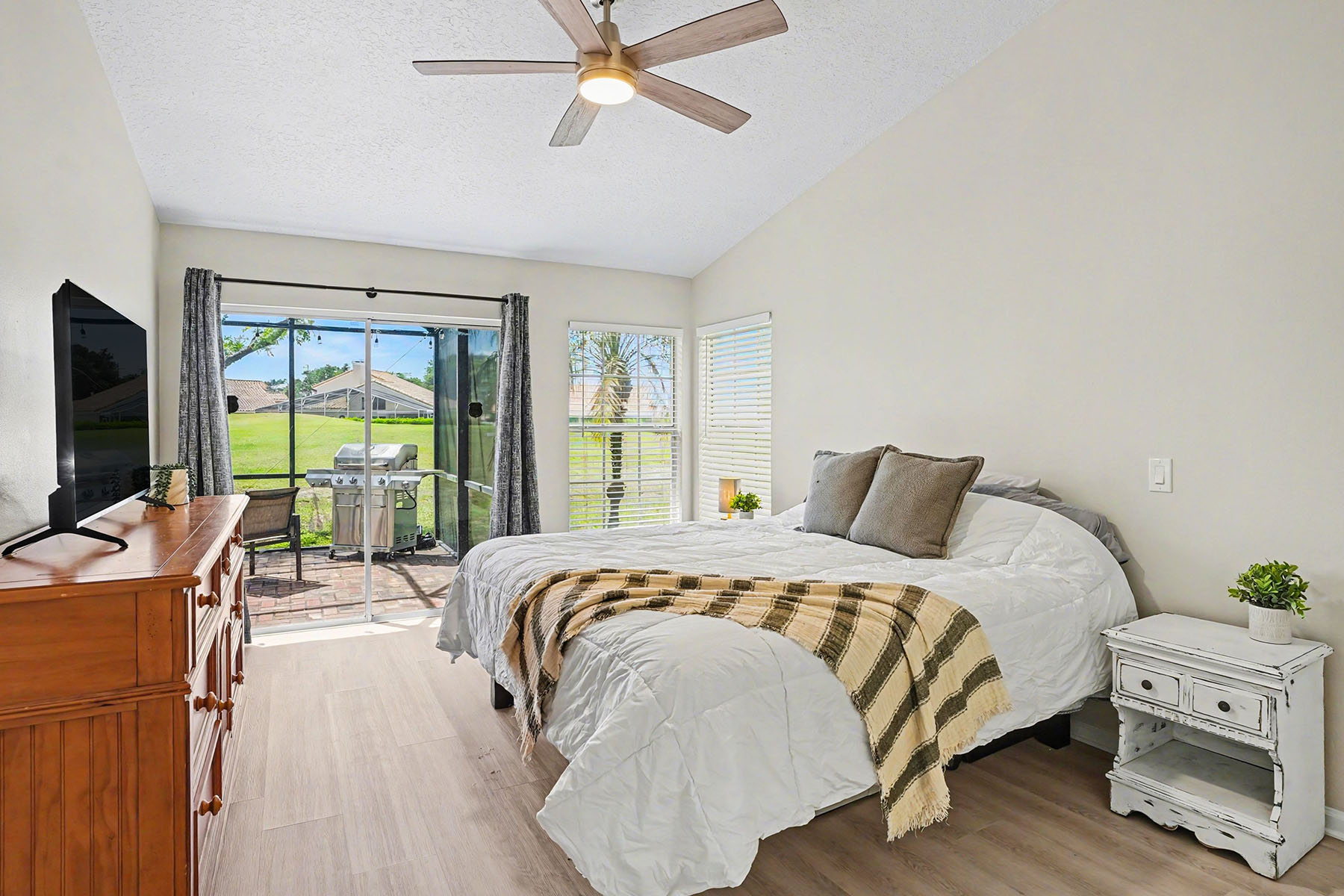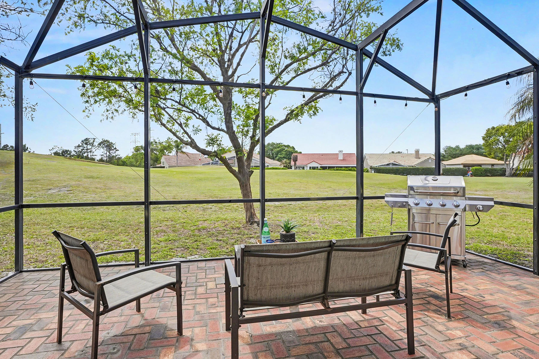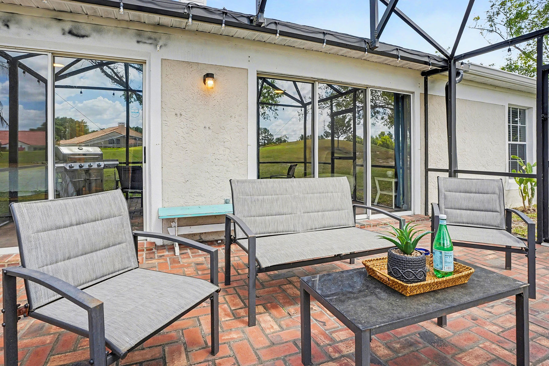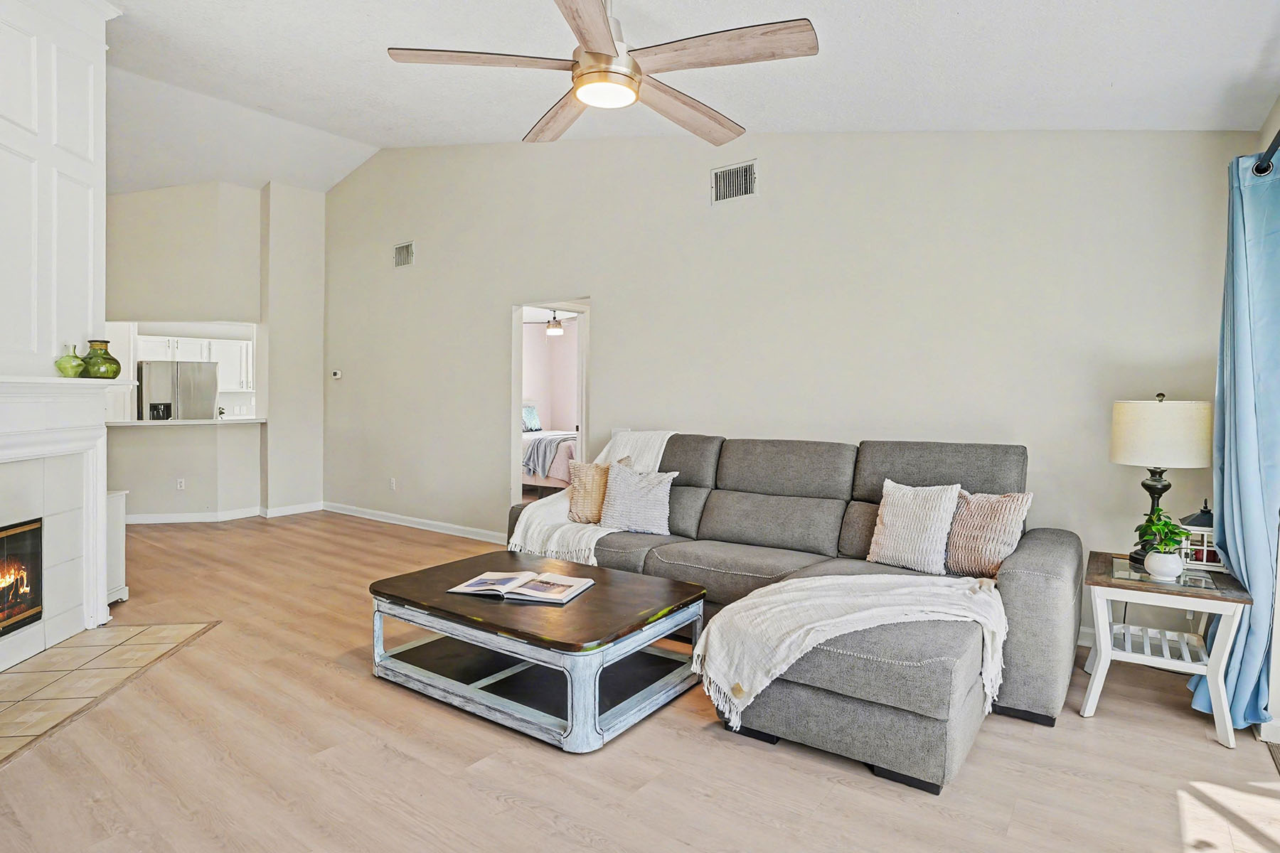 Discover comfort in the heart of the Ventura Country Club with this four-bedroom, two-bath split floor plan home! This residence welcomes you with vaulted ceilings and a cozy fireplace that immediately sets a warm and inviting tone. You can rest easily with a 2025 roof, 2026 water heater and a clean four-point inspection. Plus, the home is in a desirable, guard-gated community known for its beautifully maintained grounds and peaceful golf course setting. Residents enjoy access to exceptional amenities, including an 18-hole golf course, pickleball courts, community pool, recreation center, tennis courts, shuffleboard, community restaurant, playground, fitness center and more. Upon entering the home, you are greeted by an open and airy layout that seamlessly connects the main living spaces. And no carpet here. You have tile flooring in the kitchen and primary bath, and upgraded laminate in the bedrooms and living room, offering durability and a clean, polished aesthetic throughout. To the left of the foyer, the spacious kitchen has stainless steel appliances and a lovely dinette area next to the laundry closet. Access to your two-car garage is through the kitchen. To the right of the foyer is a French door entry into the fourth bedroom. The living room centers around the fireplace, adding character and a grounded focal point. The dining area sits ideally within the open-concept floor plan, making it easy to host family and guests. Go just beyond the main living area to your screened-in back patio, where you can enjoy Florida lifestyle. From here, you'll take in relaxing views of lush greenery along the golf course, offering privacy and a serene backdrop. The outdoor space is ideal for morning coffee, evening relaxation, sunset views over the golf course and entertaining guests year-round. The primary bedroom provides a comfortable retreat. Sliding glass doors and corner windows give you access to your golf-course views. Your en-suite bath boasts vaulted ceilings, double vanities, combination shower and luxurious bathtub, a private water closet and a spacious walk-in closet. Across the home are the additional two guest bedrooms and the guest bath. The guest bedrooms are a great size, and the spare bath has a tiled bathtub/shower. Living in Ventura Country Club means enjoying a lifestyle of convenience and recreation all in one place. You have easy access to the 408 and major highways, and are just minutes from shopping, dining and entertainment options throughout the area. You are only 30 minutes to Walt Disney World, 22 minutes to Universal Studios, 20 minutes to the University of Central Florida, 12 minutes to Orlando International Airport, 18 minutes to downtown Orlando, 20 minutes to Lake Nona Medical City, and an hour to Florida beaches and the Space Coast. Whether you are heading out for a night on the town or running daily errands, everything you need is in reach. This home offers a balance of comfort, location and community living. Schedule your private showing today and experience everything this property has to offer. There is a floor plan, survey and clean four-point inspection available for this property.