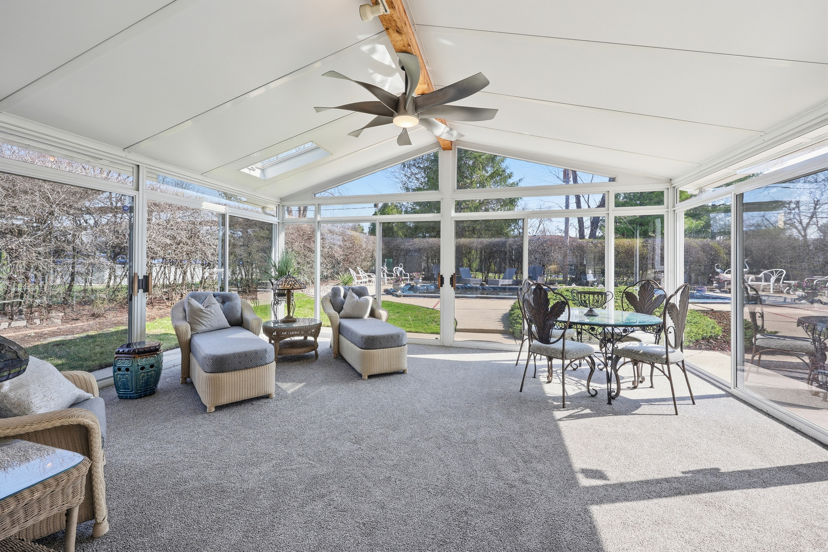 Experience elevated suburban living in this custom built 4-bedroom, 2.1-bathroom split-level residence with sub-basement, perfectly positioned in the beautiful community of Roselle. Thoughtfully designed with sizable living spaces and refined comfort throughout, this home delivers a combination of elegance and functionality. Upon arrival, guests are welcomed into a sun-drenched main/2nd level including a beautifully expansive bay window in the living room, vaulted ceilings, and an open layout. The formal living and dining spaces, with hardwood flooring under the existing carpet, offer an ideal setting for both intimate gatherings and grand entertaining, while the well-appointed kitchen with maple cabinets and granite countertops provide seamless connectivity to the home's central living areas. The 3rd level features four generously sized bedrooms, with hardwood flooring under the existing carpet, including a private primary suite with a full en-suite bathroom and substantial closet space. The bedrooms offer versatility for guest accommodations or home offices, all supported by a beautifully positioned full hall bathroom. The main level introduces a warm and inviting family room with wood-burning fireplace and radiant heat, perfect for casual entertaining, relaxation, or media enjoyment. The partially finished sub-basement adds exceptional versatility with extra storage space, or future custom finishing to suit any buyer's needs. Step into a light-filled sunroom retreat perfectly positioned just out the sliding glass doors in the family room, creating a seamless extension of everyday living. Wrapped in expansive windows that invite abundant natural light and tranquil backyard views, this versatile room offers the perfect setting for morning coffee, quiet reading, or casual gatherings. Outside the sunroom is a private fenced in backyard oasis with a built-in pool, meticulously landscaped grounds, and entertaining areas that create the perfect environment for unforgettable celebrations. Nestled within one of the area's most charming suburbs, this home offers convenient proximity to dining, shopping, parks, commuter access, highly regarded Medinah Country Club, along with top rated School District #12/#108. Roselle's welcoming atmosphere and strong community appeal further elevate this property as a premier opportunity for discerning buyers. Home being sold as-is.