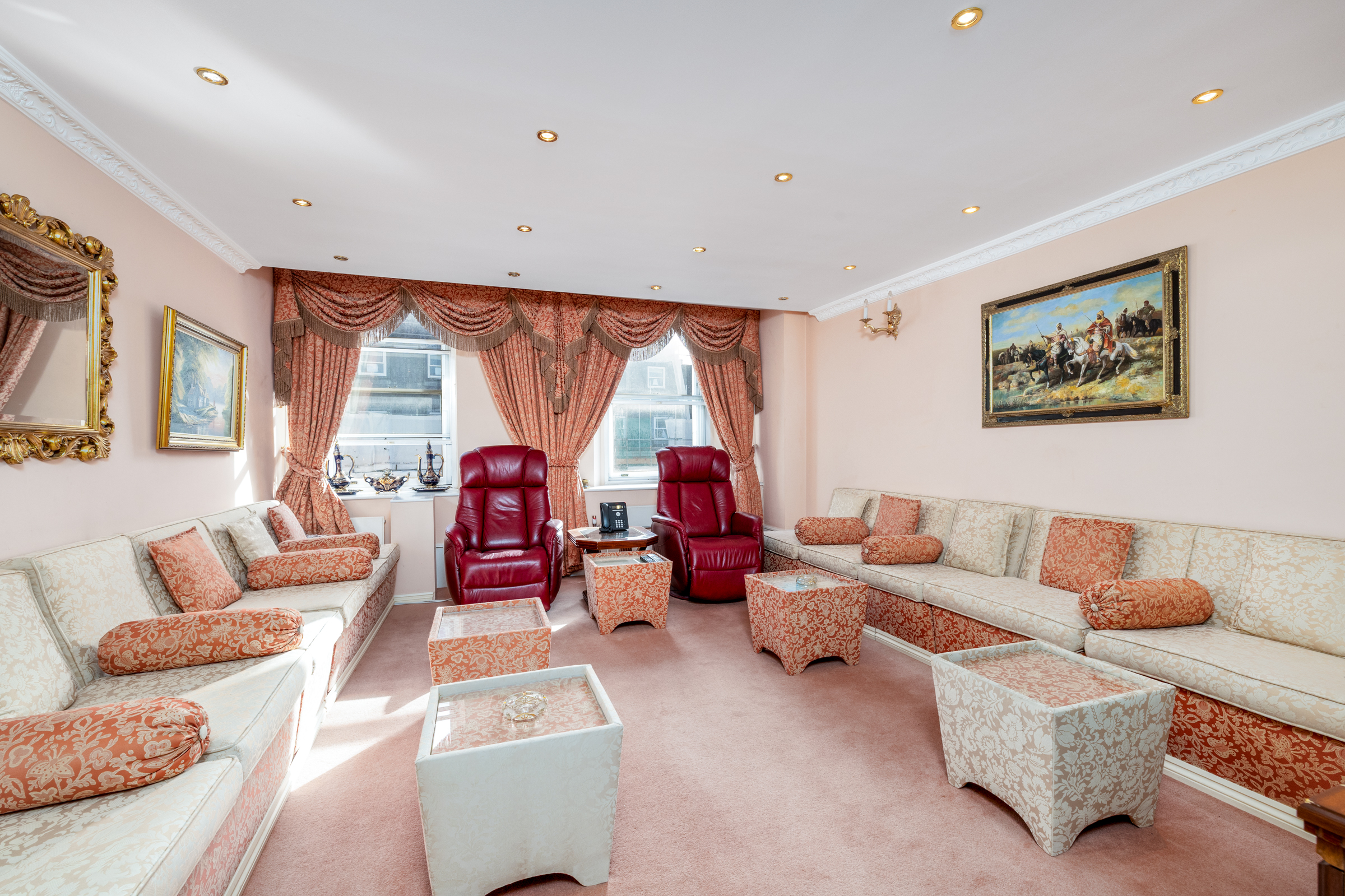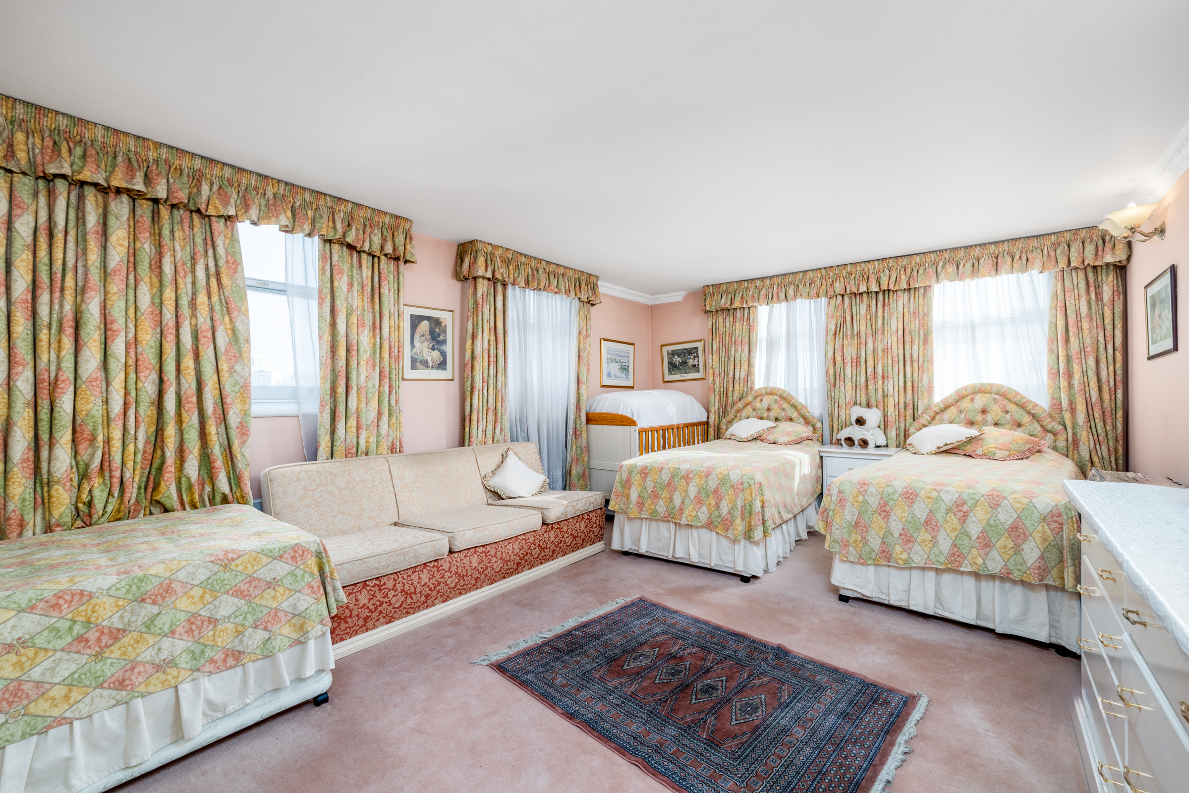 Occupying a high floor within Blenheim Court, a handsome Grade II-listed building on Lancaster Gate, this substantial lateral apartment extends to more than 3,150 sq ft and presents a rare opportunity to acquire a residence of remarkable scale overlooking Hyde Park. Currently arranged as a four to five-bedroom home, it offers impressive proportions throughout and would now benefit from a thoughtful programme of updating.