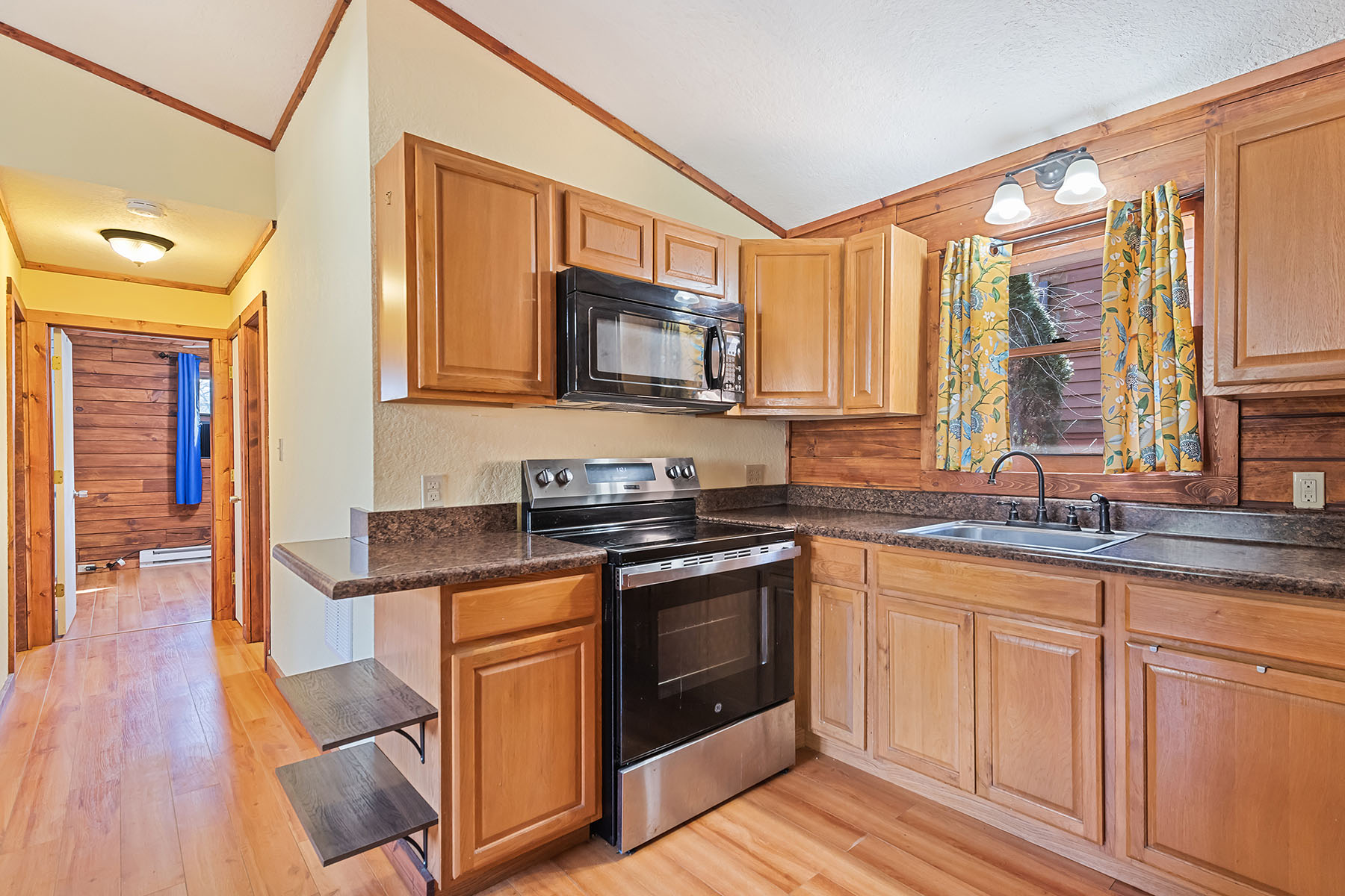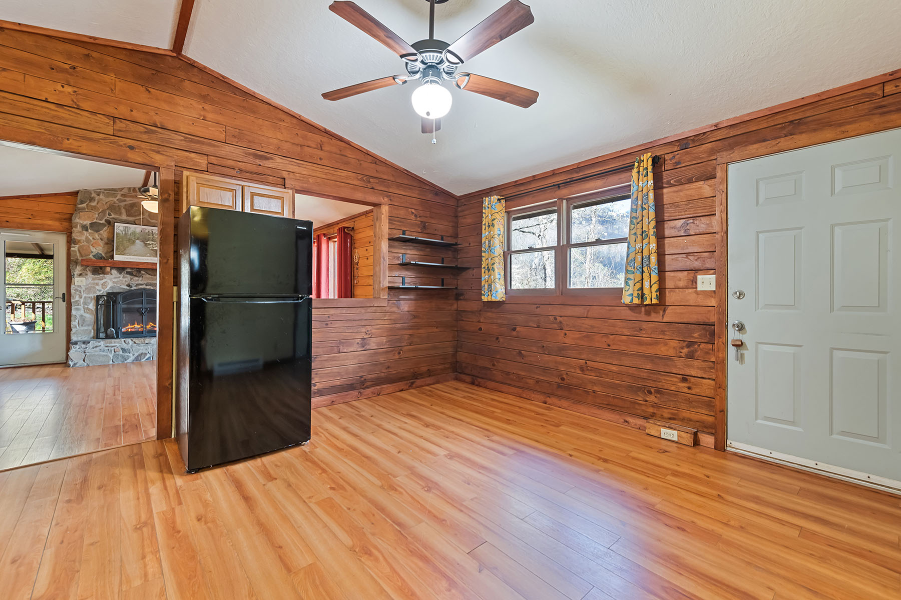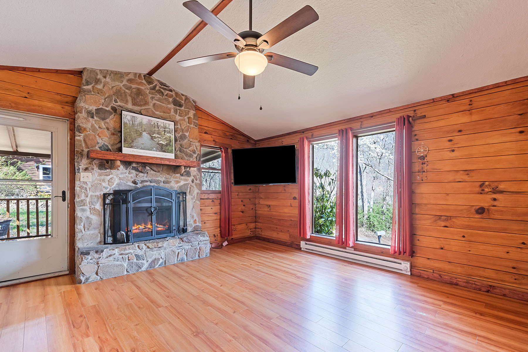 Welcome to 61 Shirdash Drive in Maggie Valley, a two-bedroom, two-bath residence offering 874 square feet of living space and year-round mountain views. Built in 1985, this single-family home presents an opportunity for a second home or short-term rental investment in a well-established mountain destination. The interior includes a living area anchored by a newly installed electric fireplace, providing a defined gathering space. The kitchen has been updated with new appliances, supporting immediate use for personal enjoyment or rental readiness. The layout offers functional separation between bedrooms, accommodating a range of living arrangements. Positioned less than two miles from the Maggie Valley Festival Grounds, approximately seven miles from Cataloochee Ski Area and under five miles from Lake Junaluska, the property provides access to year-round recreational activities. The setting offers mountain views in all seasons while maintaining convenient access and easy parking. This property aligns buyers seeking a manageable mountain residence with proximity to regional attractions and potential for income-producing use.