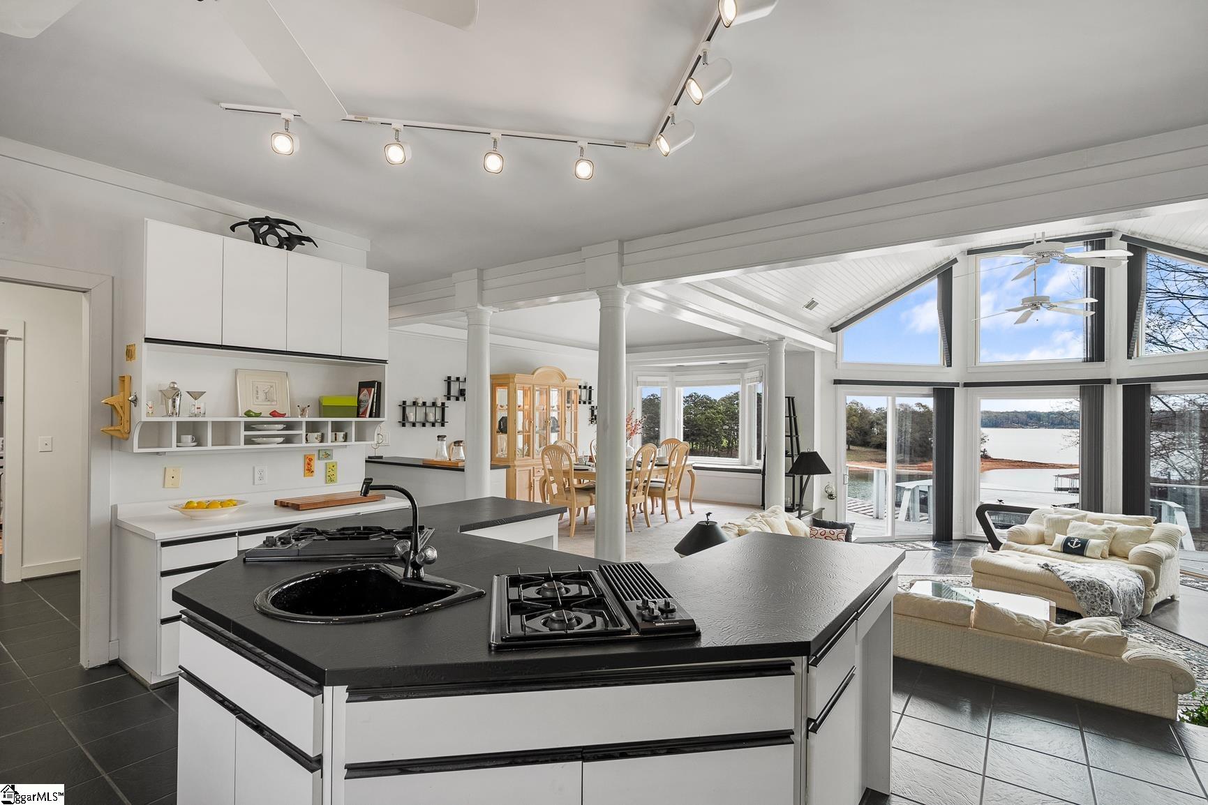Location Location Location! Beautiful waterfront home situated on a double lot with over 200 feet overlooking slips 1-4 at Portman Marina on Lake Hartwell. Enjoy the convenience of being within walking distance to The Galley Restaurant and boat ramp. This exceptional 3 bedroom 3 1/4 bath home has an ideal layout with lake views from almost every room! At the time this home was built, no expense was spared to create a modern, sleek, contemporary, high-end oasis with room to relax and entertain in mind. The home features two levels of living space with a chair lift providing easy access between floors when needed. Both floors come with their own primary bedroom with ensuite, large walk-in closet, full kitchen, laundry and fireplaces with gas logs making it perfect for multi-generational families, guest or flexable use. This property features a spacious two car garage for your vehicles with an additional garage door, perfect for golf cart or boat storage. The workshop area comes with an abundance of storage and is sure to please! The garage is more than just functional; it's designed for entertaining and convenience, currently setup with a rotisserie cooker, refrigerator and drink station with Nutone built in blender. Outdoor features are just as impressive and truly set this property apart: a concrete pad for RV/Boat parking, grand 10 ft tall front door with stain glass inserts on each side and motorized retractable awning, new concrete retaining wall with fence, new pair of deck stairs/post to upper deck, covered patio area with natural stone flooring and built in Dynamic Cooking System's gas grill, outdoor shades and upper deck spanning the entire length of house with tempered glass for unobstructive lake views. Your pet(s) will enjoy having their own automatic doggy door access. Upon entering downstairs, The bar/kitchen set up may just be your favorite part of the house and most used by family and friends! The large walk in pantry with pass through to garage is a unexpected surprise. A striking fireplace made with river rock with anchor fire dogs and gas logs will grab your attention as will the floor to ceiling built in bookcase. You won't be lacking in room or closet space in this generous size bedroom with ensuite. Once upstairs, you will step into elegance with a open concept layout, showcased by large windows to let in all the natural light! This levels HVAC features 3 zone climate control for enhanced comfort. Notice the sunken living room,16 foot ceiling with mirrored wall fireplace, gas logs, built in lighted cabintry to display treasured items and stereo system with bose speakers. Main level kitchen features a commercial refrigerator and name brand appliances to include JennAir. Split level placement of the 2 bedrooms and bathrooms offers privacy while the primary suite feels like a vacation get away with having its own hot tub and access to the upper deck. This home offers a contemporary feel with unique features throughout. Quality built home where the major conponents are in place with updates in the last year to include electrical and plumbing. Being able to obtain this location in such close proximity to Portman Marina is truly rare! Conveniently located near I-85 if communting to Greenville. Come experience life in The Shoals community of Lake Hartwell in Anderson!