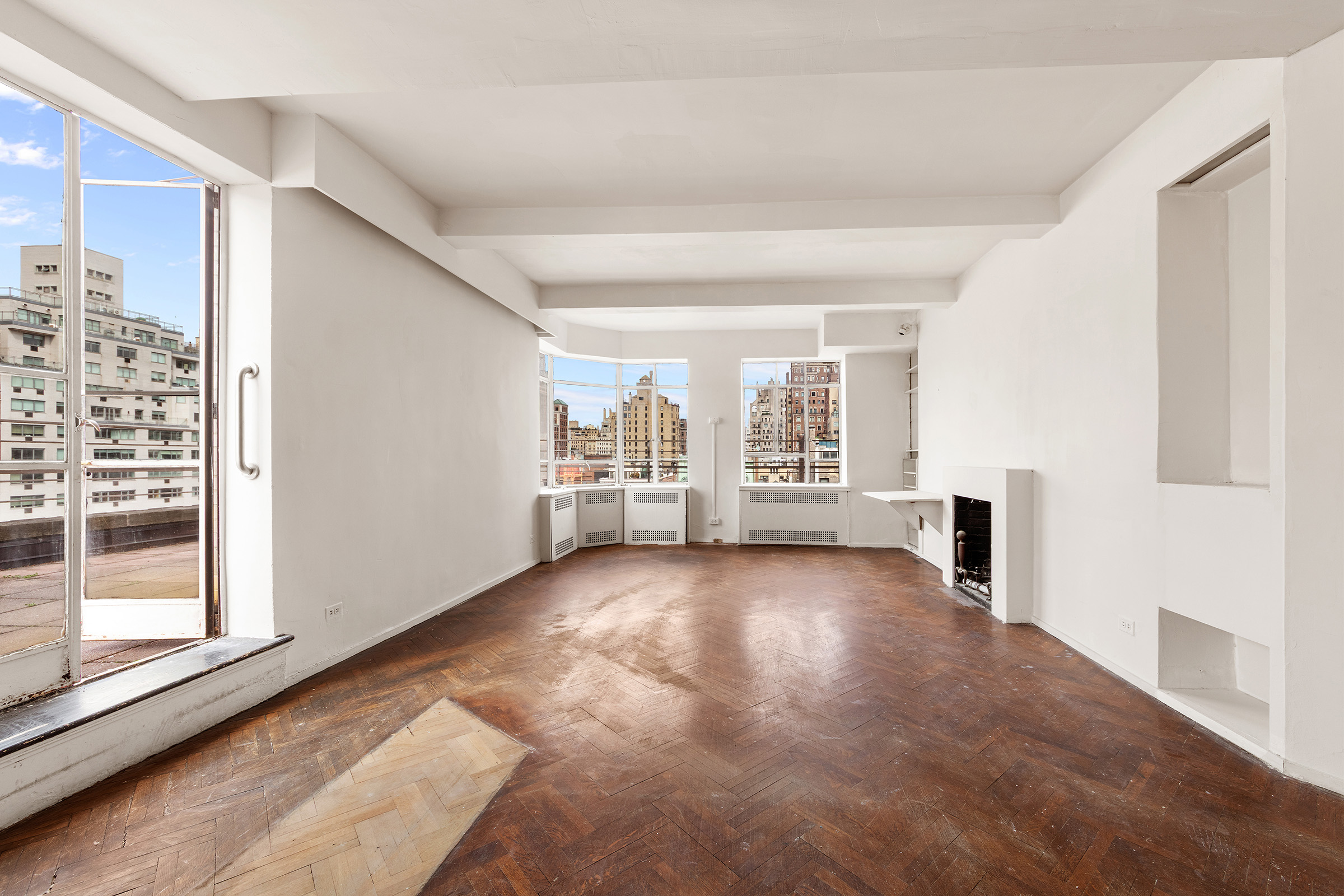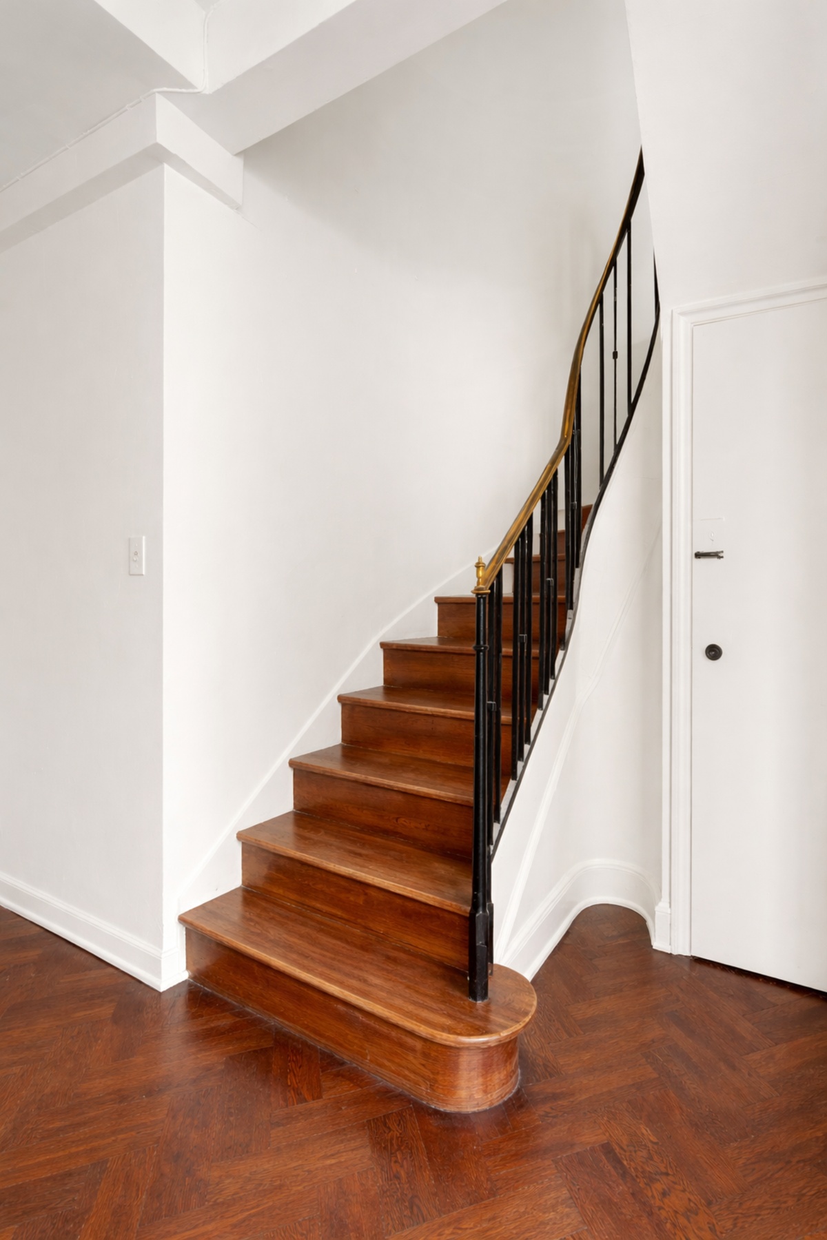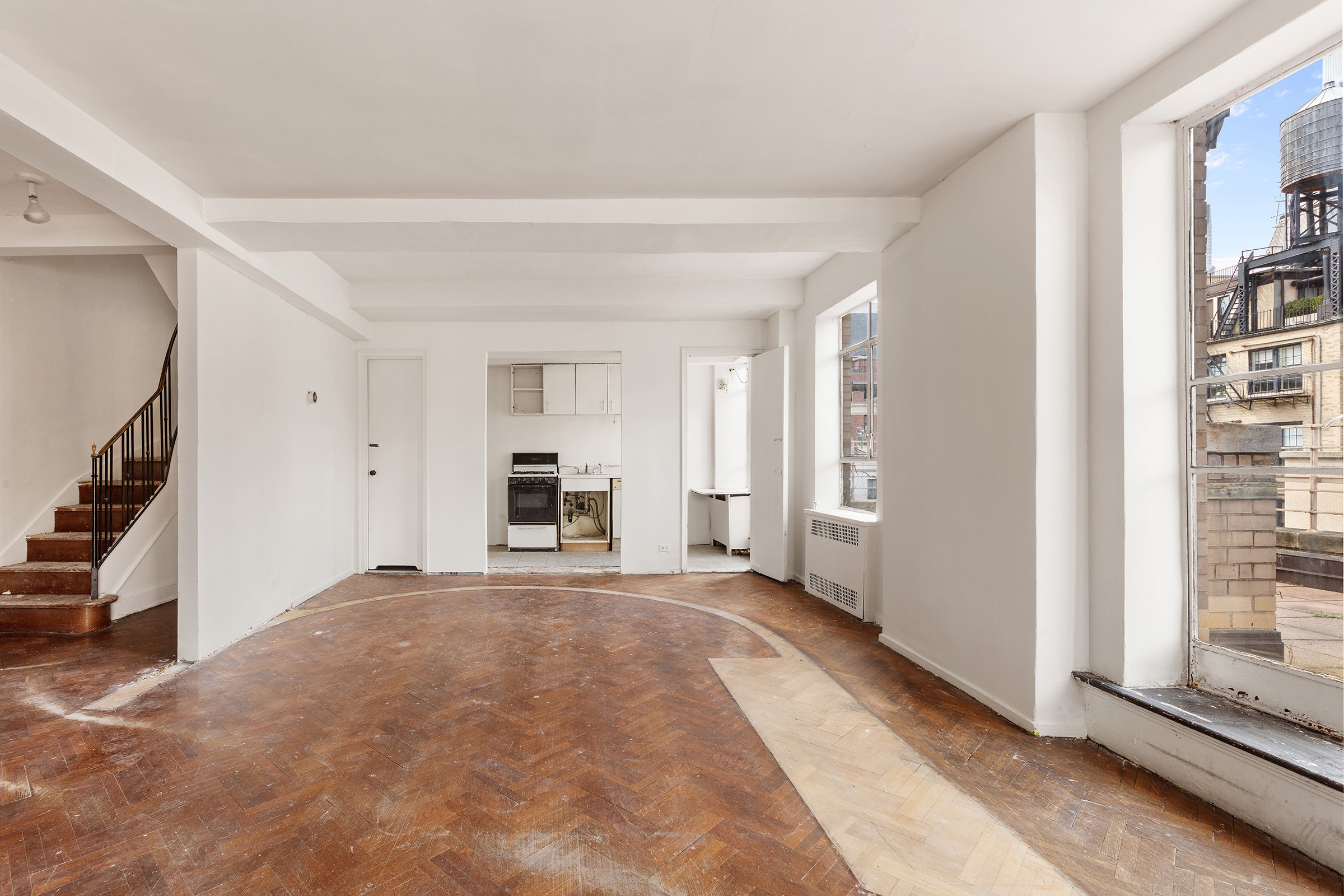 TERRACED DUPLEX CONDO WITH ENDLESS VIEWS A rare opportunity to create a truly exceptional residence in an esteemed Rosario Candela–designed condominium, ideally positioned on a prime townhouse block between Madison and Park Avenues. This 2 bedroom, 2.5 bath duplex features a wood-burning fireplace, a signature Candela spiral staircase, and glass doors which open onto a spacious terrace—the epitome of luxury indoor-outdoor living. Flooded with natural light, the home enjoys sweeping western views to Central Park and open southern vistas across the Manhattan skyline. Currently requiring a full renovation, this is a unique chance to design and customize every detail, transforming an already remarkable space into a bespoke showplace. 44 East 67th Street is a highly desired boutique condominium offering a full-time doorman, a live-in superintendent and a private resident courtyard. Flexible ownership is permitted, including trusts, LLCs, corporations, guarantors, and international buyers. Pets are welcome. Some photos have been virtually staged.