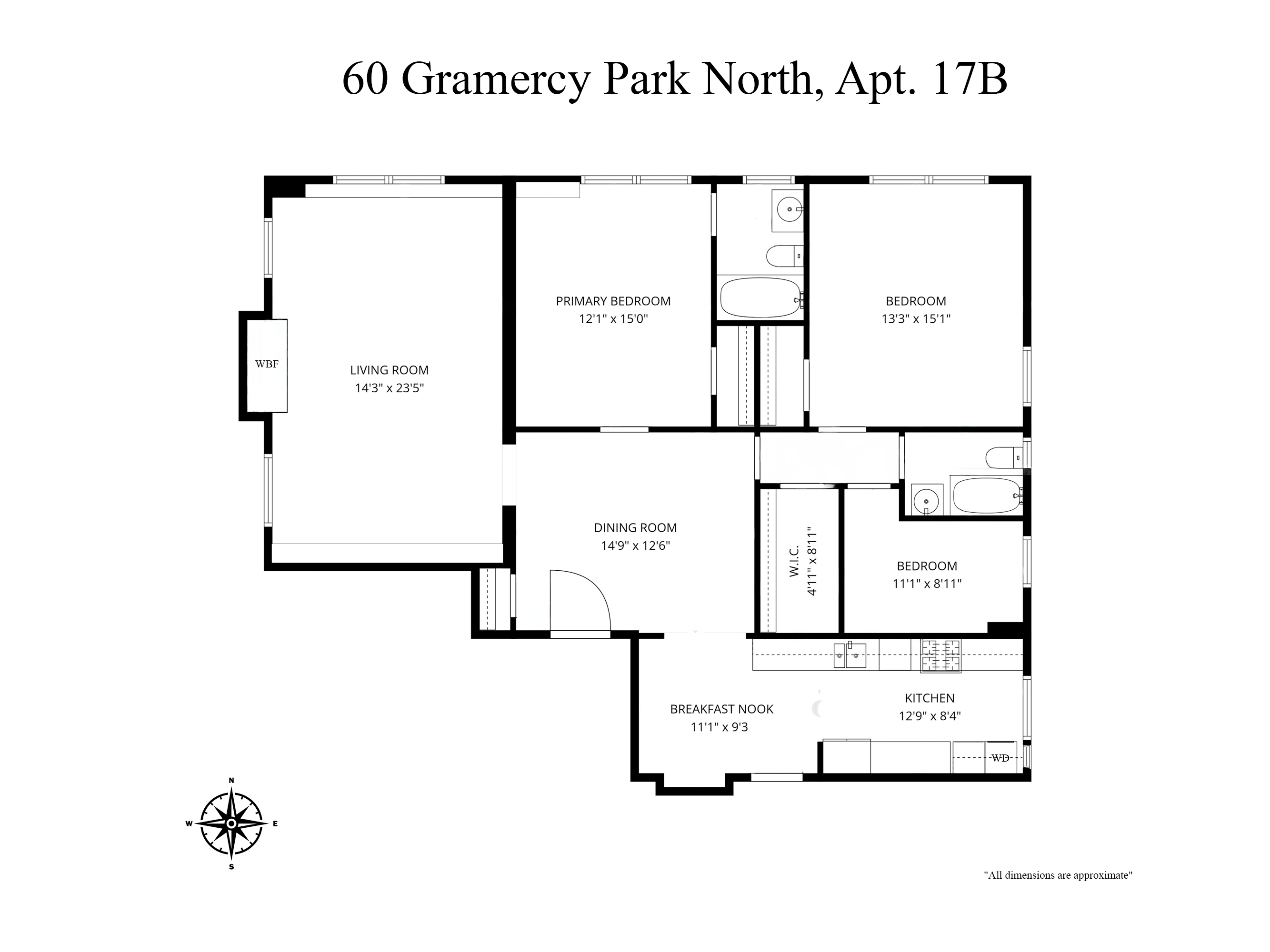 Key to Gramercy Park. Stunning, fully renovated prewar, high floor, 3 bedroom at 60 Gramercy Park North the premier building on Gramercy Park. An apartment with a gracious flow, enter into an expansive foyer which serves at an ideal dining room before heading through the arch to the bright, corner living room with woodburning fireplace and open views to the west; perfect for entertaining or for a quiet, cozy evening by the fire with a book from the custom millwork creating an elegant wall of books. There are only five apartments with this coveted layout in the building apartment 17B being the highest floor. The large windowed eat-in chef's kitchen has Subzero, Wolf and Miele appliances. Side by side washer/dryer with work area above. Abundant storage. Two large bedrooms with two renovated windowed marble baths a large walk-in closet and a smaller 3rd bedroom complete this perfect apartment. Original hardwood floors and custom cabinetry throughout. The apartment has additional storage in the building. Originally designed by Emery Roth in 1928, 60 Gramercy Park North features a full-time door person, live-in resident manager, gym, storage, bike room, laundry and a charming, landscaped courtyard located off the lobby. Residents are provided keys to bucolic Gramercy Park, Manhattan's only private park encircled by elegant townhomes, tree-lined streets and landmarks such as the National Arts Club and the Player's Club. This serene neighborhood is perfectly positioned and incredibly convenient. Transportation (4, 5, 6, N, R, W and L subway at Union Square), the Farmer's Market, Madison Square Park, and a plethora of shopping, dining and cultural offerings are moments away. Pied a terre and pet friendly with board approval.