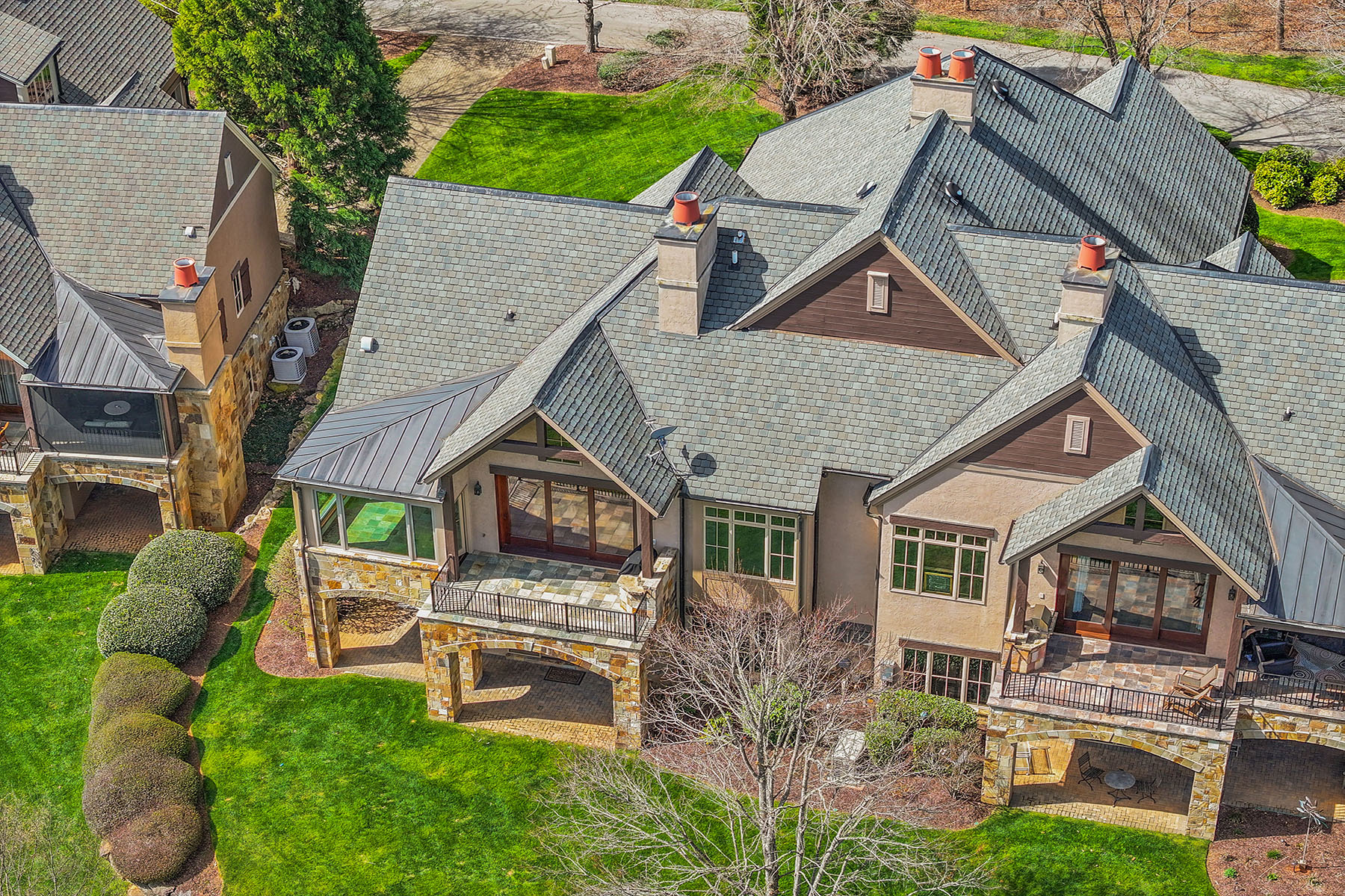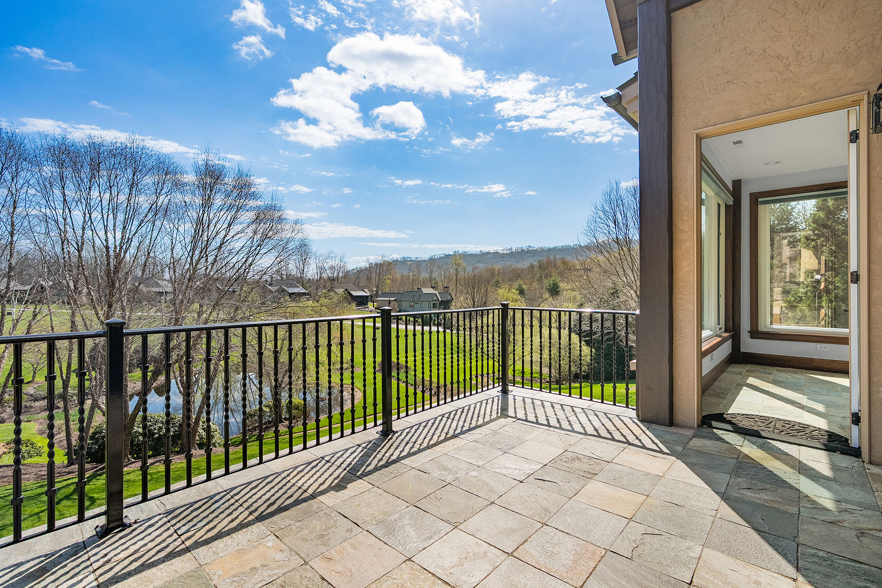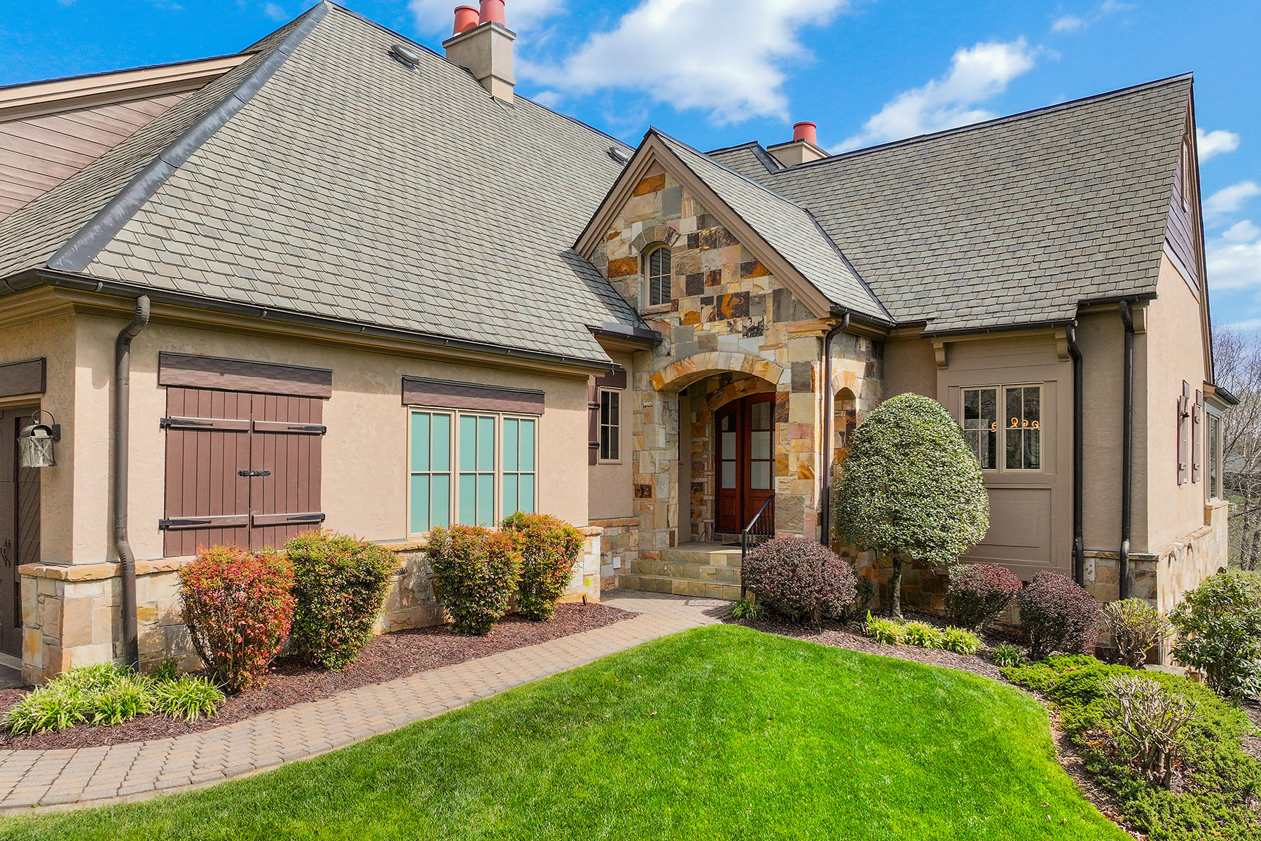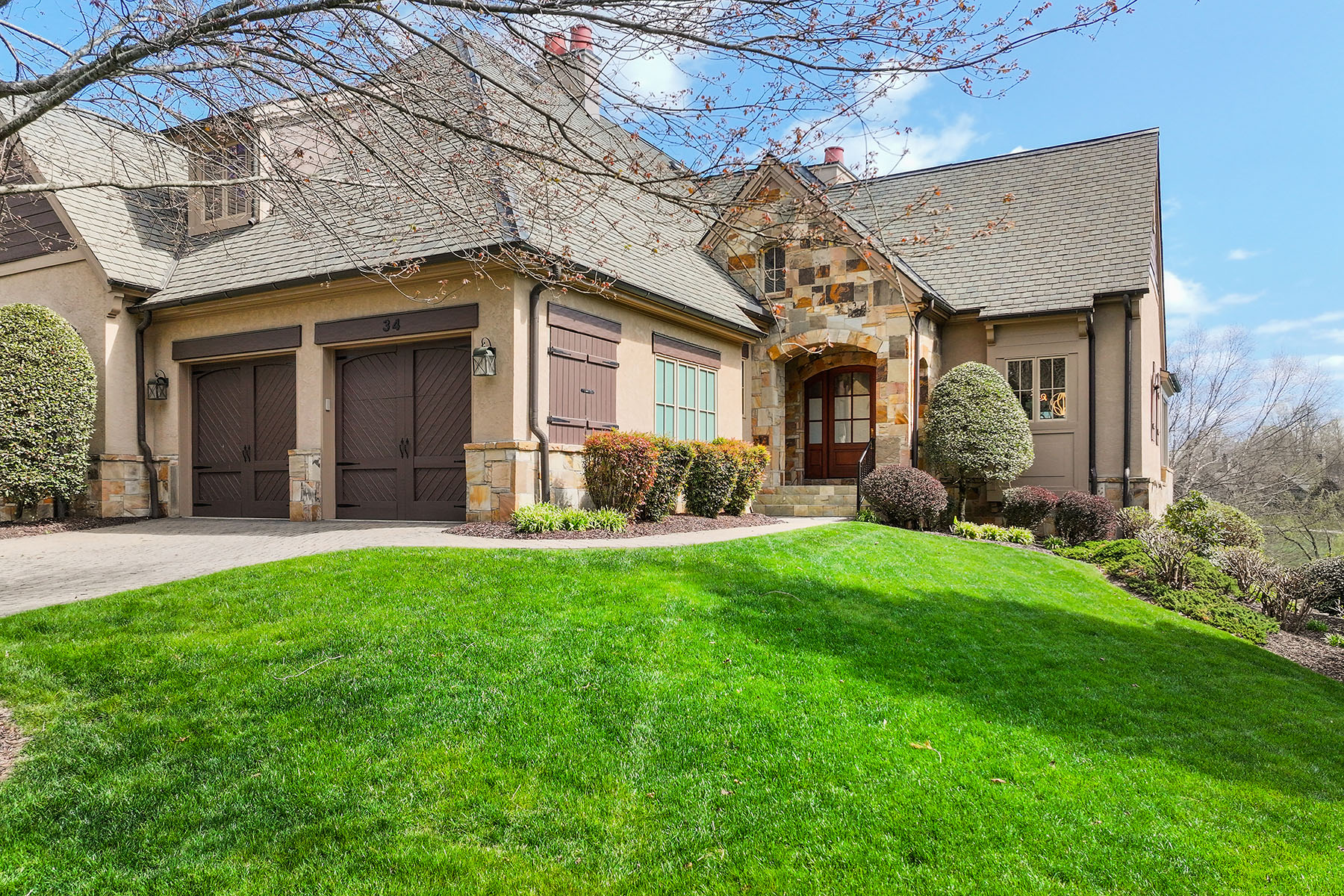 Set within The Meadow at The Cliffs at Walnut Cove, this exquisitely landscaped enclave of townhomes and single-family residences is a serene tapestry of glistening water features, lush vegetation and artfully curated accent lighting. Here, a rare harmony of luxury and tranquility unfolds. This exceptional townhome is designed for refined living, where soaring ceilings and expansive windows invite an abundance of natural light, creating an airy, elegant ambiance throughout. The main living area seamlessly extends to the outdoors through retractable doors, offering an effortless indoor-outdoor lifestyle ideal for quiet moments and sophisticated entertaining. An all-season sunroom provides a peaceful retreat, framing captivating views of the picturesque surroundings in every season. At the heart of the home, the kitchen is a statement of craftsmanship and modernity, adorned with rich solid mahogany details, illuminated by sleek LED lighting, and anchored by an impressive oversized island that invites gathering and connection. The lower level enhances the home's versatility, featuring a generous bonus room, two beautifully appointed guest suites and inviting outdoor living spaces that echo the natural beauty beyond. Graceful yet comfortable, this residence embodies elevated mountain living in one of the region's sought-after communities.