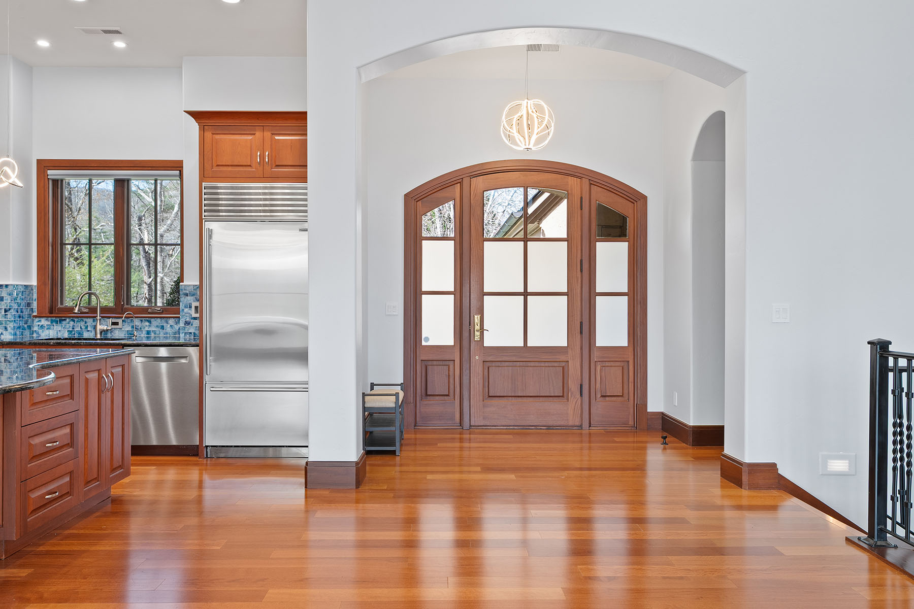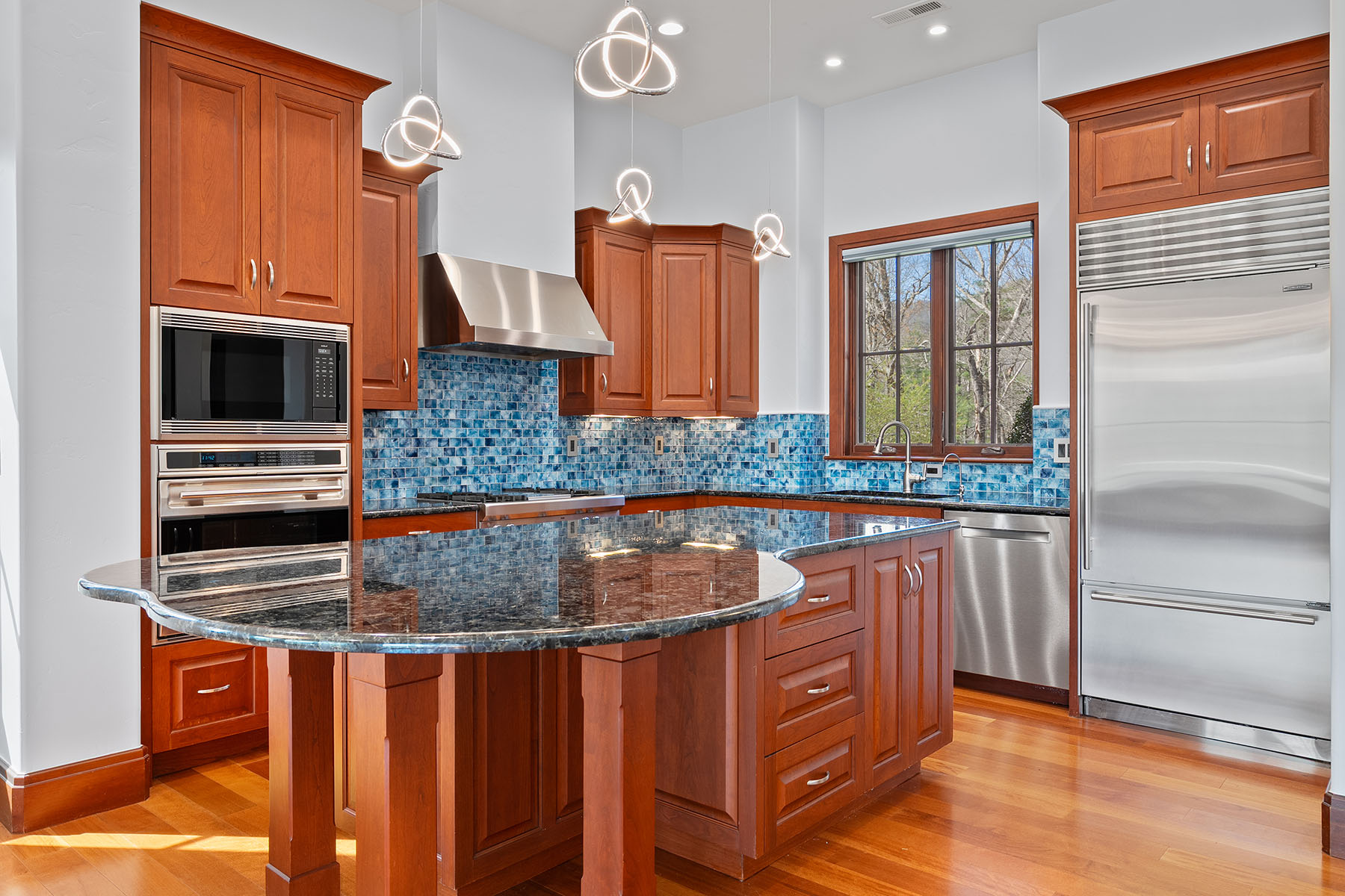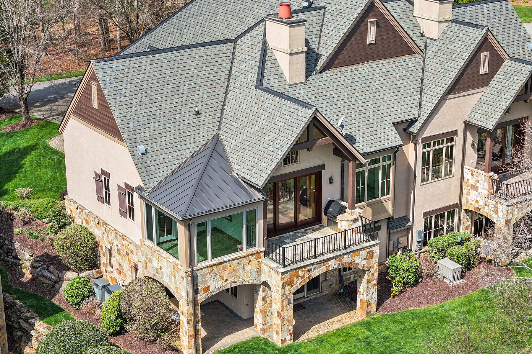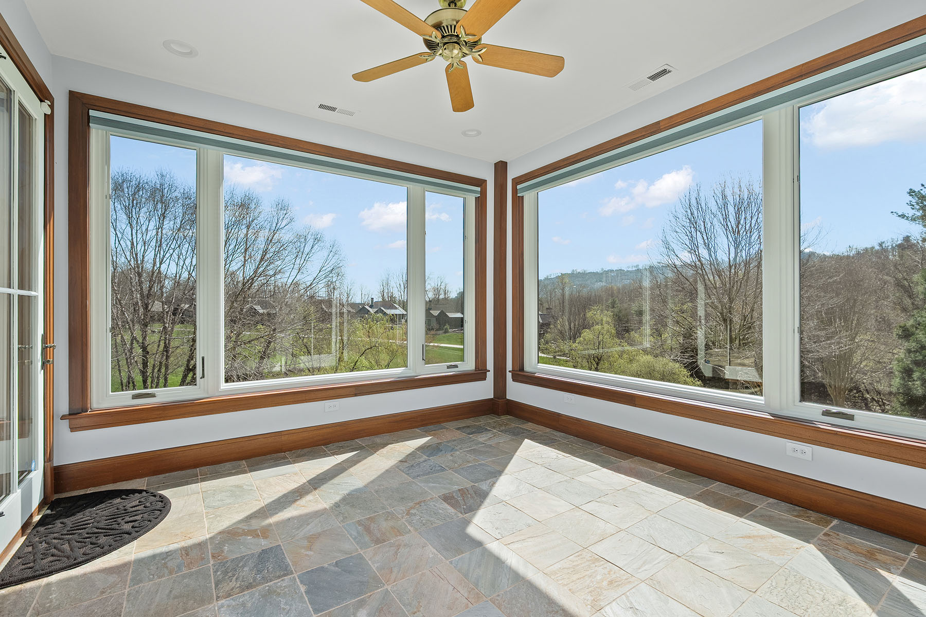 Set within The Meadow at The Cliffs at Walnut Cove, this exquisitely landscaped enclave of townhomes and single-family residences is a serene tapestry of glistening water features, lush vegetation and artfully curated accent lighting. Here, a rare harmony of luxury and tranquility unfolds. This exceptional townhome is designed for refined living, where soaring ceilings and expansive windows invite an abundance of natural light, creating an airy, elegant ambiance throughout. The main living area seamlessly extends to the outdoors through retractable doors, offering an effortless indoor-outdoor lifestyle ideal for quiet moments and sophisticated entertaining. An all-season sunroom provides a peaceful retreat, framing captivating views of the picturesque surroundings in every season. At the heart of the home, the kitchen is a statement of craftsmanship and modernity, adorned with rich solid mahogany details, illuminated by sleek LED lighting, and anchored by an impressive oversized island that invites gathering and connection. The lower level enhances the home's versatility, featuring a generous bonus room, two beautifully appointed guest suites and inviting outdoor living spaces that echo the natural beauty beyond. Graceful yet comfortable, this residence embodies elevated mountain living in one of the region's sought-after communities.