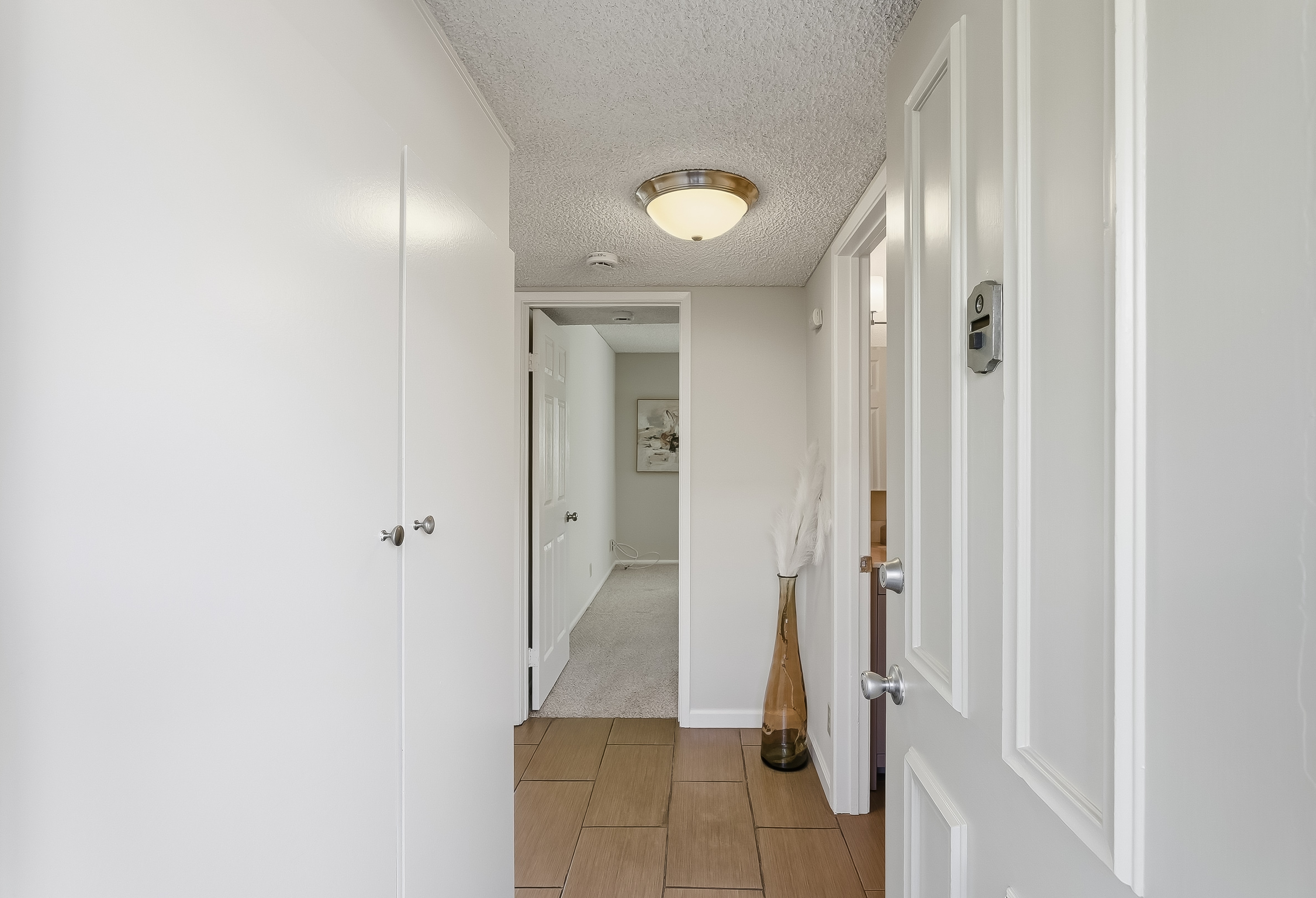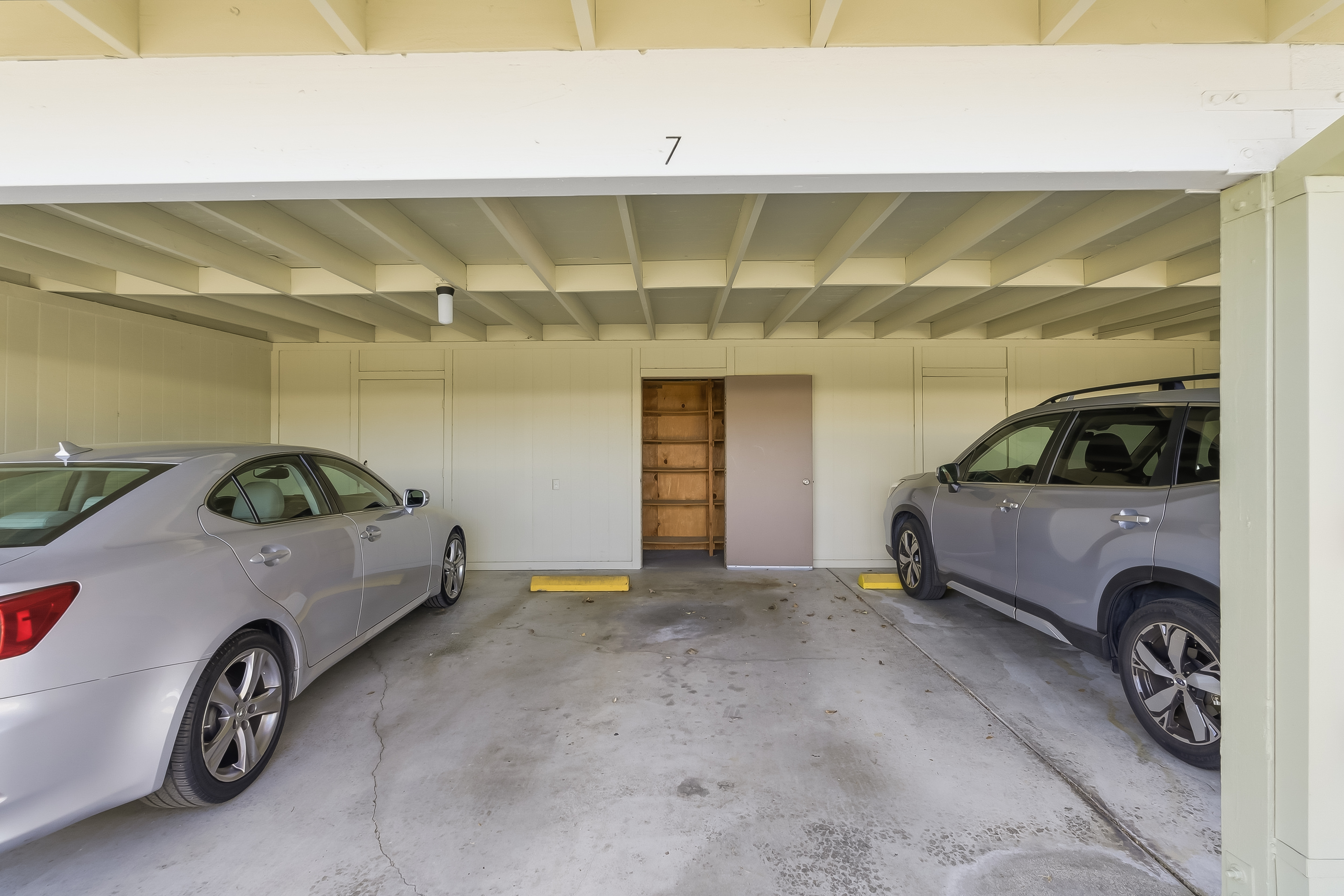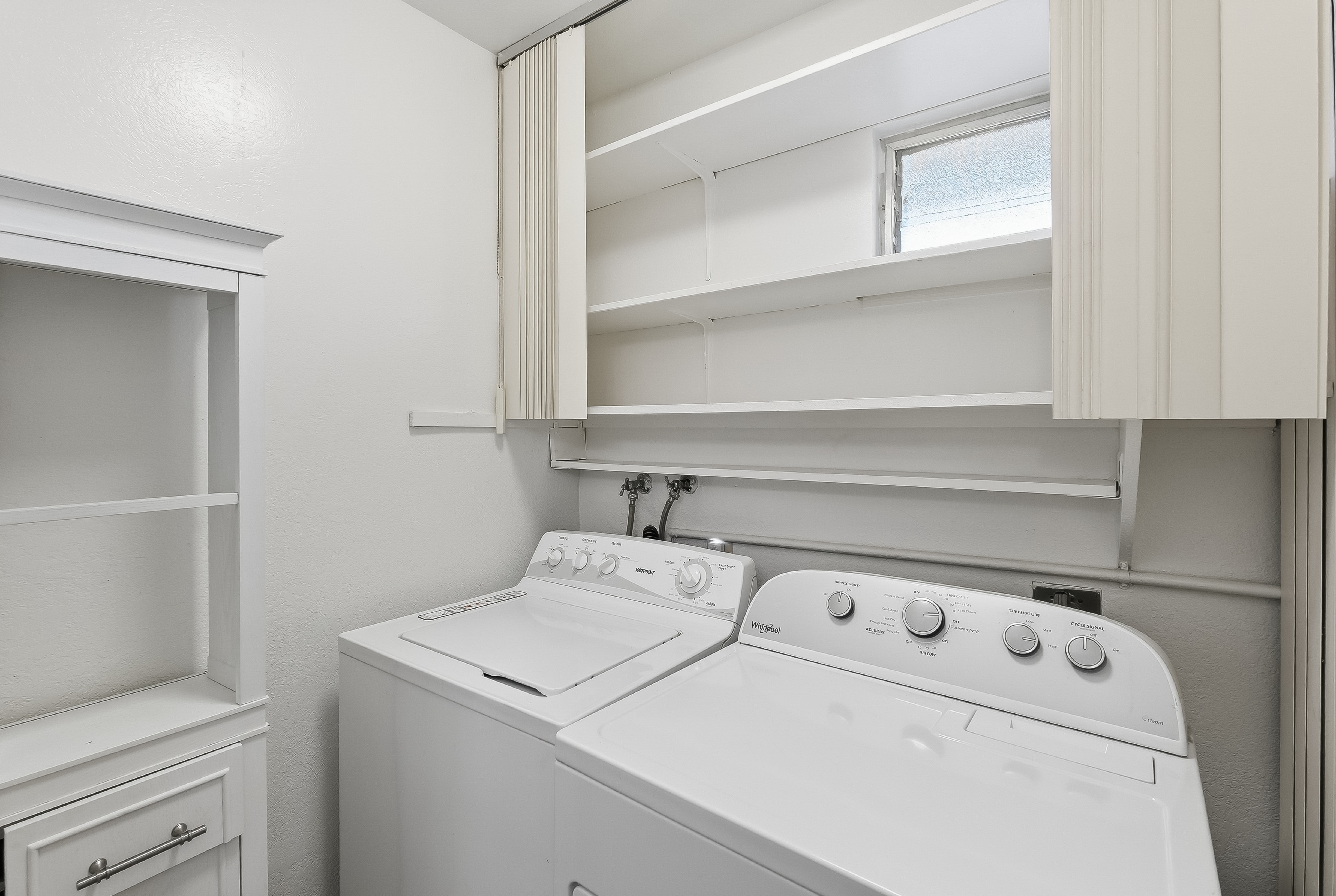 This light and bright ground-floor Cypress model condominium (not a co-op) offers an inviting blend of comfort, privacy, and thoughtful updates. Fresh interior paint, dual-pane windows, central air conditioning, plantation shutters, and top-down/bottom-up cellular shades create a clean, modern feel throughout. Bay windows and a sliding glass door fill the spacious living and dining area with natural light. The recently remodeled bathroom features a generous walk-in shower with grab bars, dual shower heads with a handheld option, a new vanity, updated lighting, modern hardware, and a separate laundry room with a side-by-side washer and dryer. The updated kitchen includes maple cabinetry, extensive granite countertops with bar seating, and stainless steel appliances, including a refrigerator. The inviting outdoor patio offers peaceful views and is surprisingly quiet thanks to its elevated lot. Additional conveniences include mailboxes smartly relocated near the front door, carport #7 with extra storage, and ample guest parking. Rossmoor is a premier 55+ gated community best known for its resort-style amenities, active social scene with over 200 clubs, and scenic 1,800-acre location. Residents enjoy 27 holes of golf, five clubhouses, multiple pools, fitness centers, and maintenance-free living.