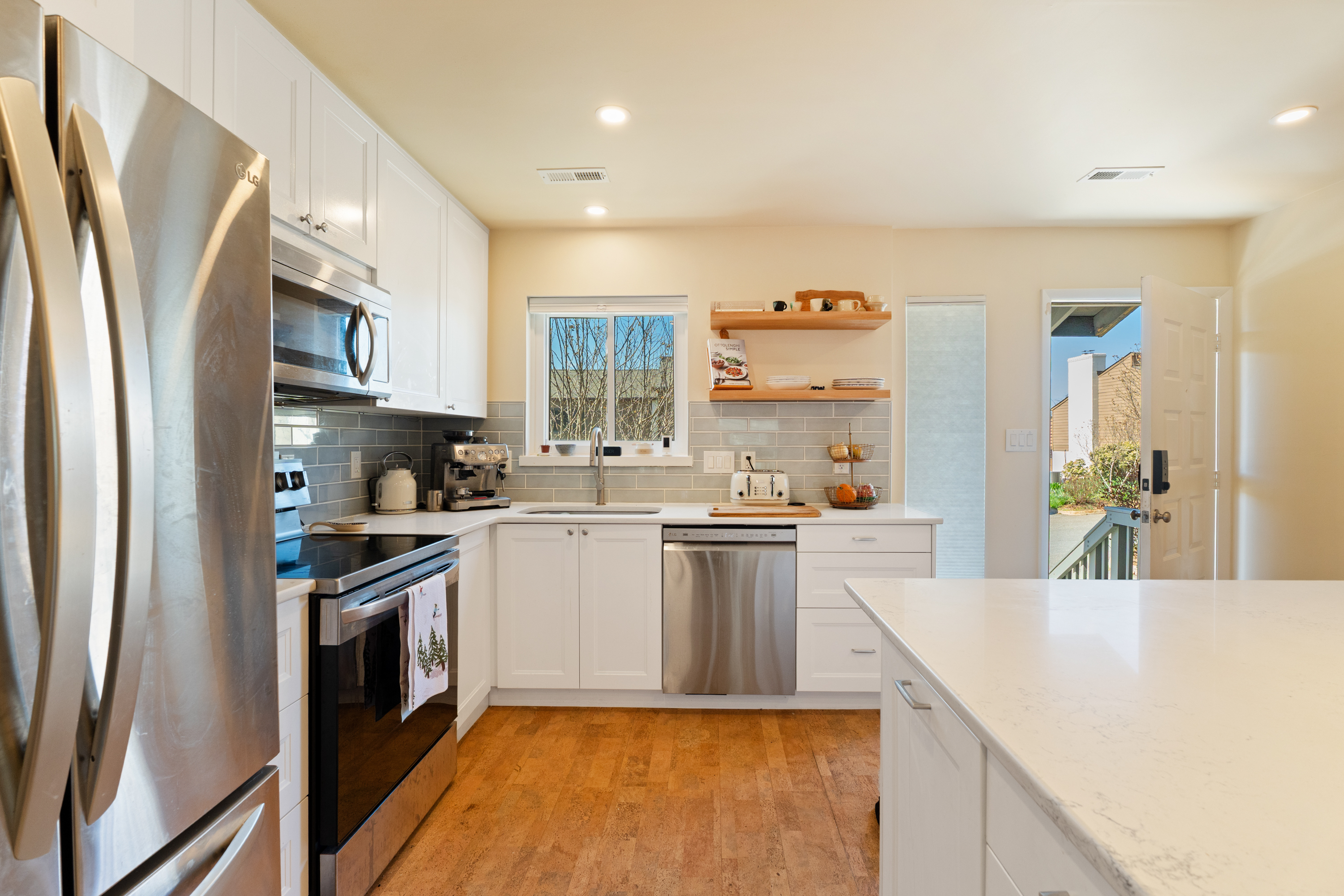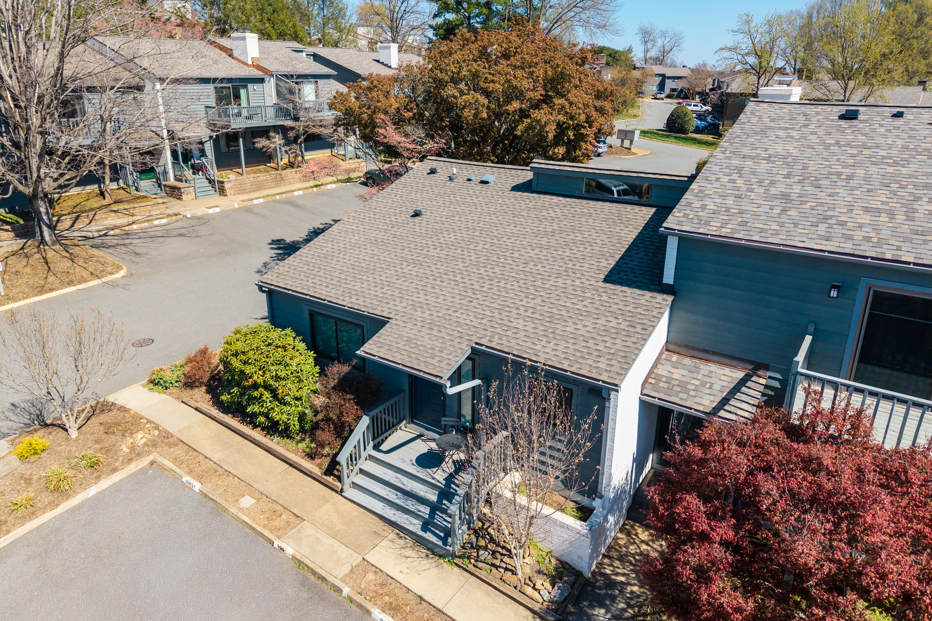 Beautifully renovated and move-in ready, this one-level 2BR/2BA end-unit condo in sought-after Huntington Village offers turnkey comfort and convenience. Enjoy a bright, open layout with 16’ cathedral ceilings and a stunning kitchen featuring quartz countertops, an oversized island, custom tile backsplash, and stainless-steel appliances. Recent upgrades include new windows and exterior doors, anew HVAC system, water heater, enhanced insulation, updated flooring, and additional attic storage. The spacious primary suite features a well-appointed en-suite bath and an impressive walk-in closet. Step outside to a private rear patio—perfect for grilling, gardening, or relaxing—with convenient access to additional parking. The home includes two reserved parking spaces, an EV charger, and an exterior storage shed. Residents enjoy low-maintenance living in a well-maintained, amenity-rich community with a pool, all just minutes from UVA Grounds, including the Law School, Darden, the hospital, and athletic facilities. HOA includes: Pool, Common area maintenance, landscaping, snow removal, trash and cardboard recycling. Maintenance of siding. Roof is only 4 Years old.