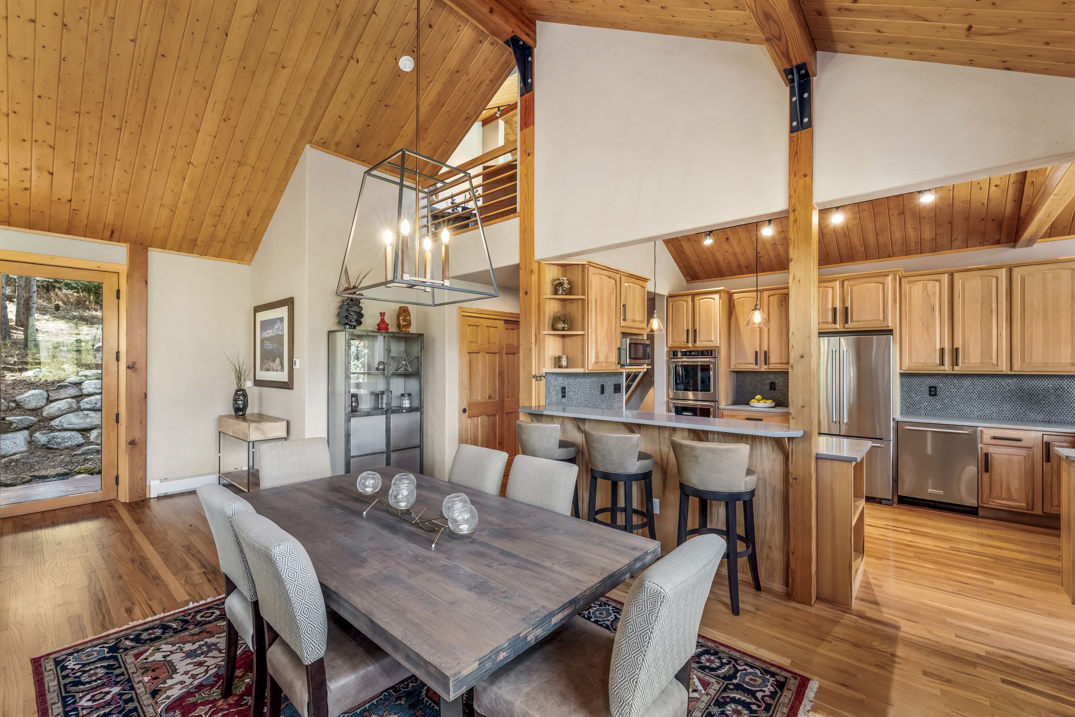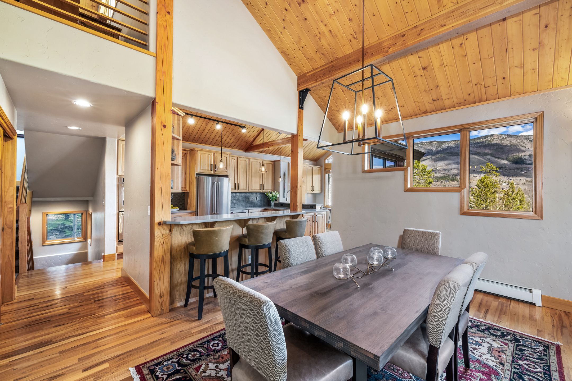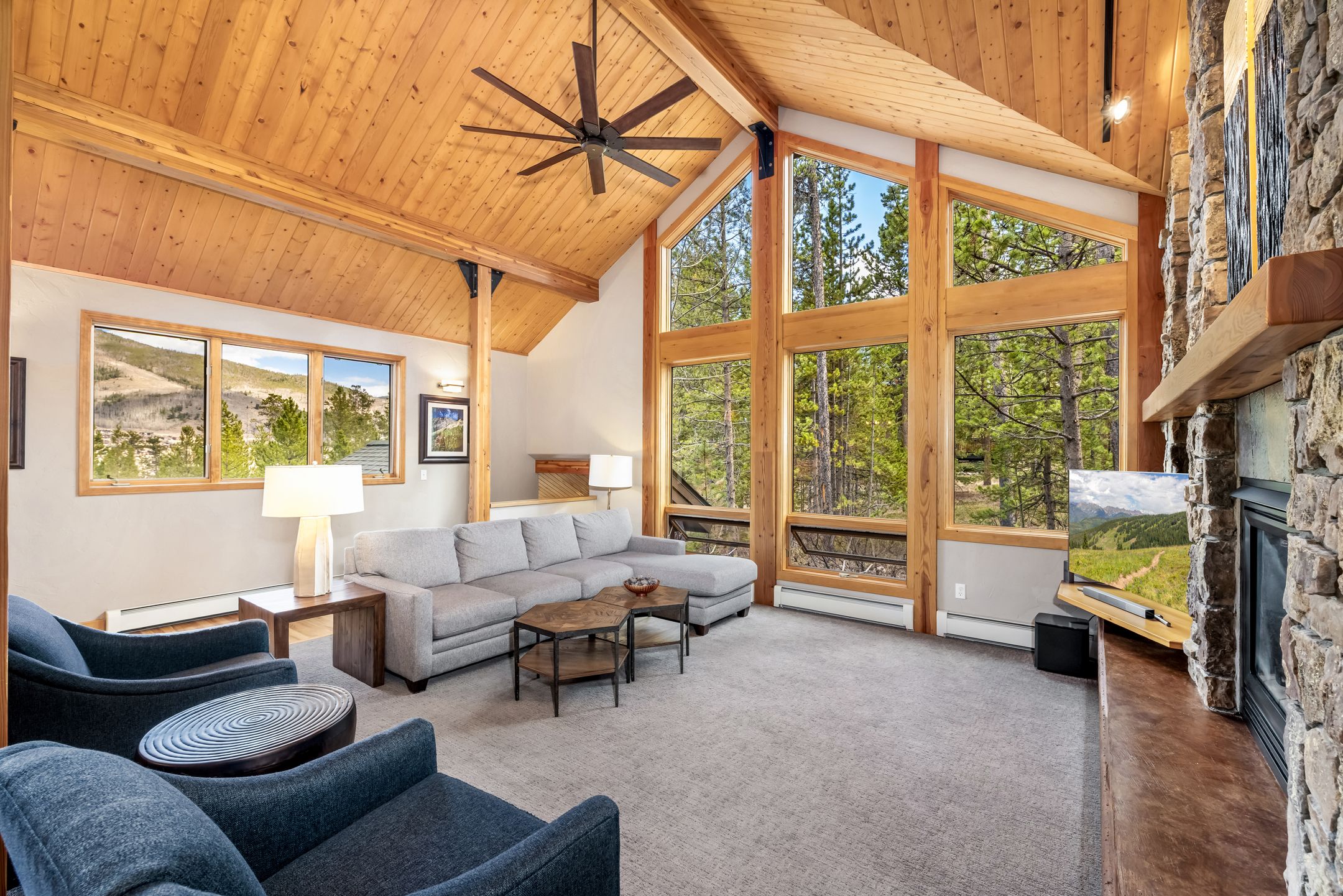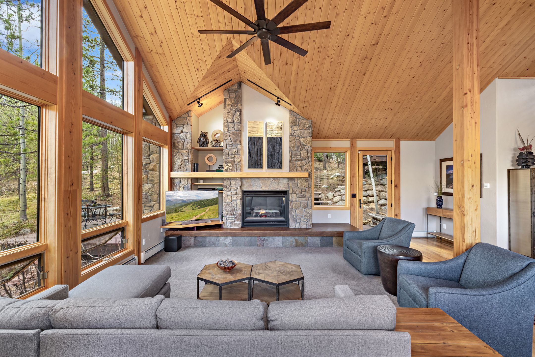Beautifully updated 4-bedroom Eagles Nest home situated on a peaceful wooded lot with serene mountain views to the east. Relax and enjoy the private outdoor living spaces. Inside, the vaulted ceilings, floor-to-ceiling windows, exposed beams, stone fireplace, and strong natural light add to the allure of the open living area. The fireplace with a heated hearth creates a distinct focal point, designed for year-round use and comfort. The great room connects to the dining area, kitchen, and breakfast nook. Enjoy updated finishes throughout, including quartz countertops. Use the loft, currently a dedicated office, as your office, extra living space, or workout area. The four bedrooms include two gracious primary suites. The garage walks into a well-appointed room for storing outdoor equipment. Newer water heater, boiler, and exterior paint. This home is located within the Raven Golf Club community at Eagles Nest, with easy access to not only golf, but also hiking trails. Silverthorne amenities are nearby, as well as the five world-class ski areas. Only 2.5 miles to the Dillon Reservoir and I-70.