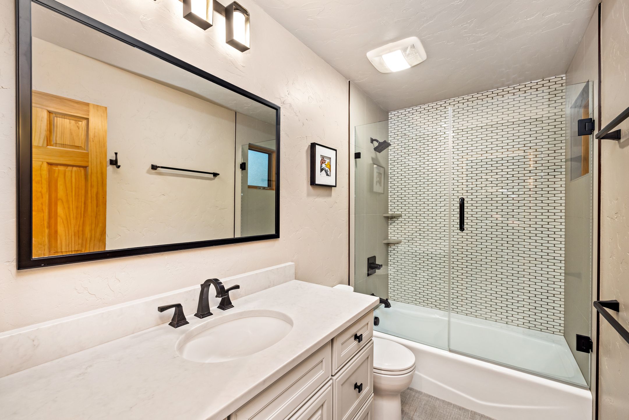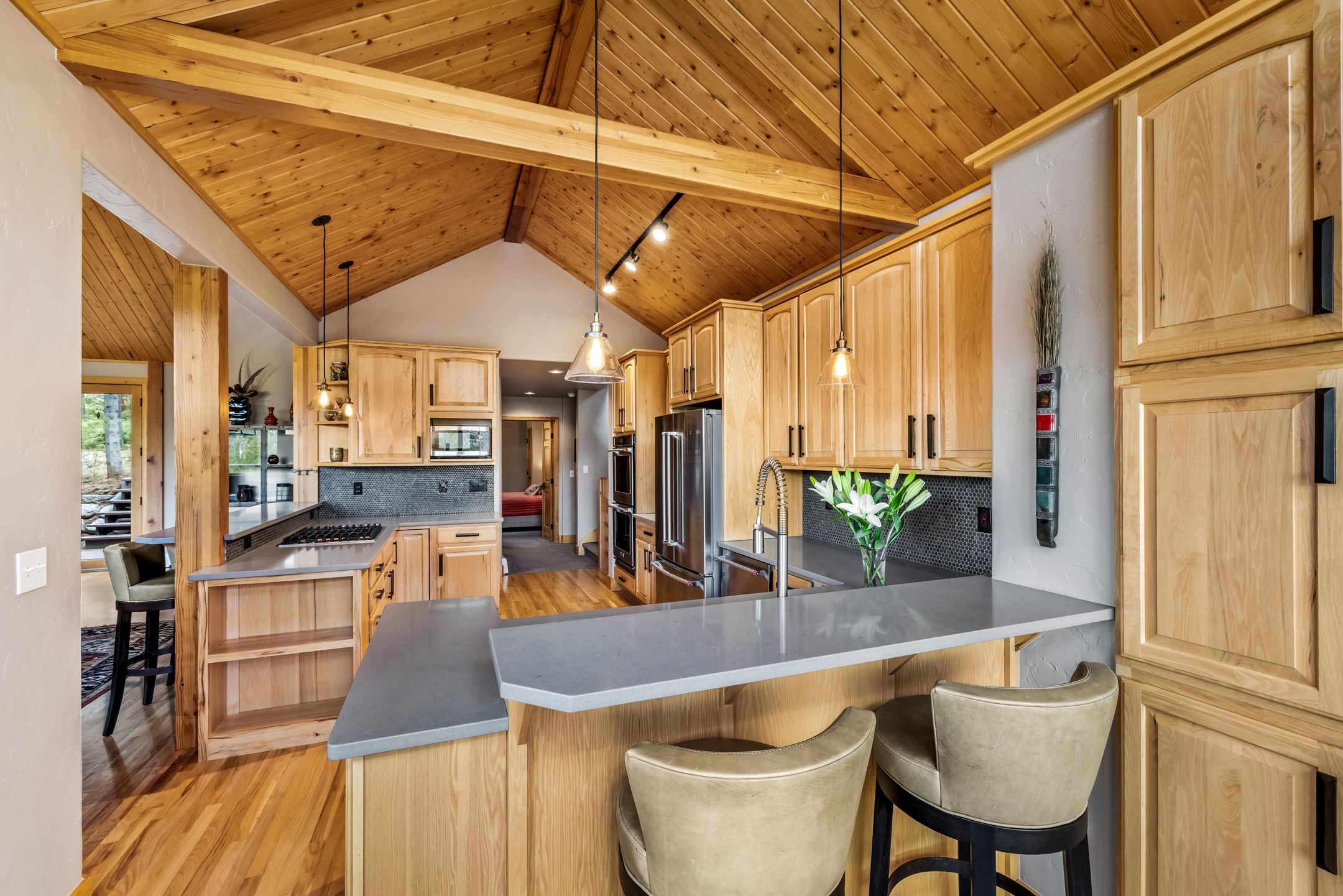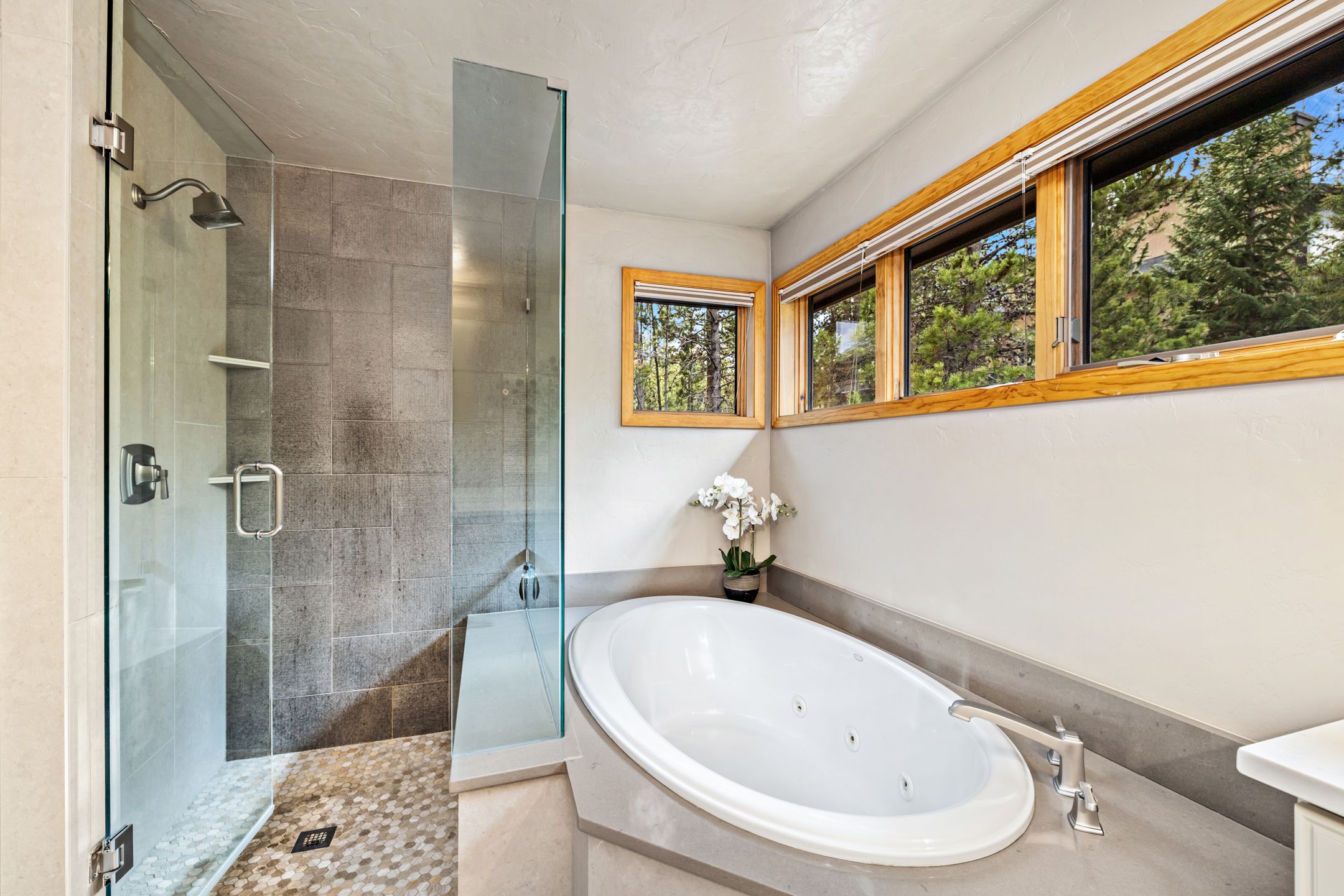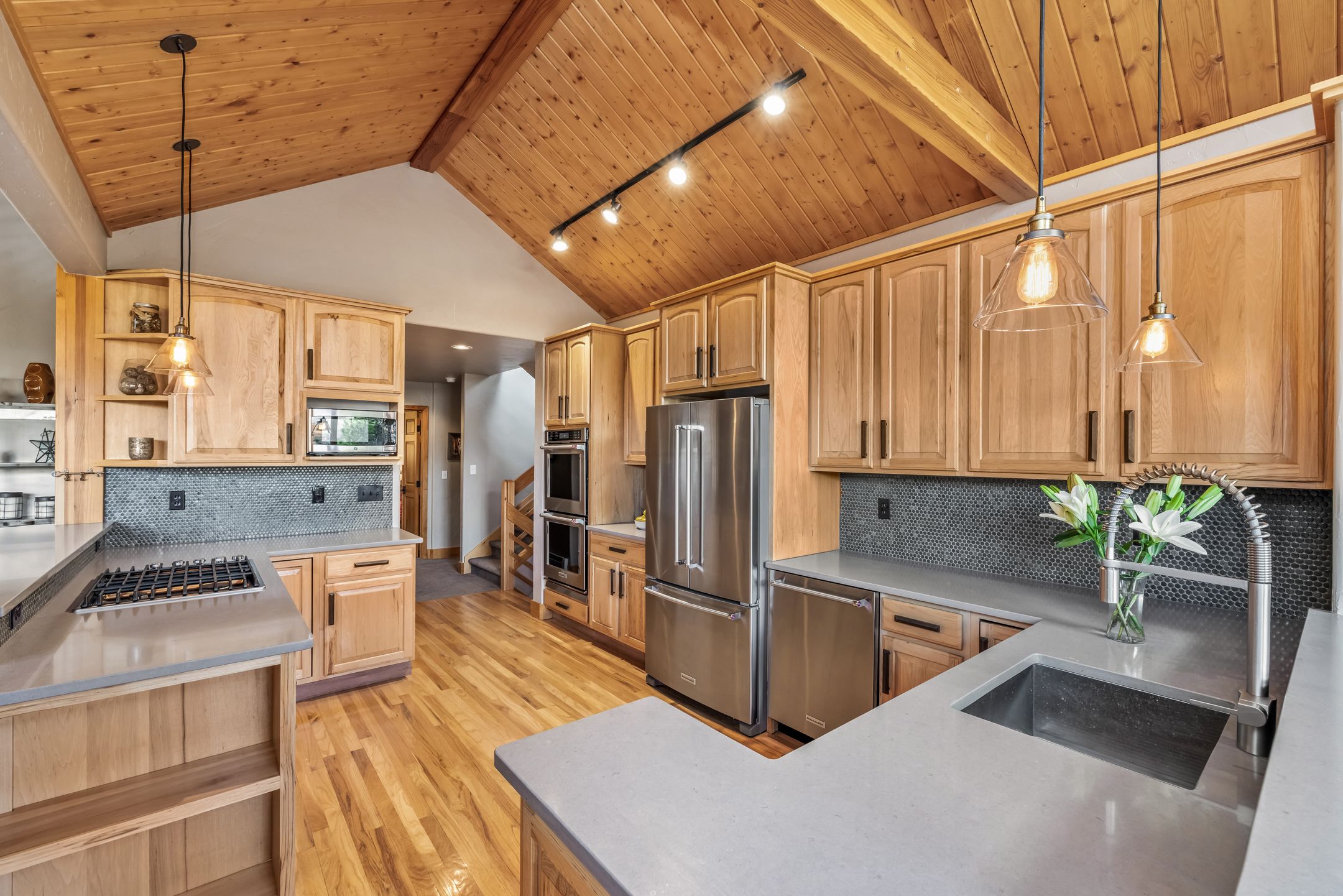 Beautifully updated 4-bedroom Eagles Nest home situated on a peaceful wooded lot with serene mountain views to the east. Relax and enjoy the private outdoor living spaces. Inside, the vaulted ceilings, floor-to-ceiling windows, exposed beams, stone fireplace, and strong natural light add to the allure of the open living area. The fireplace with a heated hearth creates a distinct focal point, designed for year-round use and comfort. The great room connects to the dining area, kitchen, and breakfast nook. Enjoy updated finishes throughout, including quartz countertops. Use the loft, currently a dedicated office, as your office, extra living space, or workout area. The four bedrooms include two gracious primary suites. The garage walks into a well-appointed room for storing outdoor equipment. Newer water heater, boiler, and exterior paint. This home is located within the Raven Golf Club community at Eagles Nest, with easy access to not only golf, but also hiking trails. Silverthorne amenities are nearby, as well as the five world-class ski areas. Only 2.5 miles to the Dillon Reservoir and I-70.