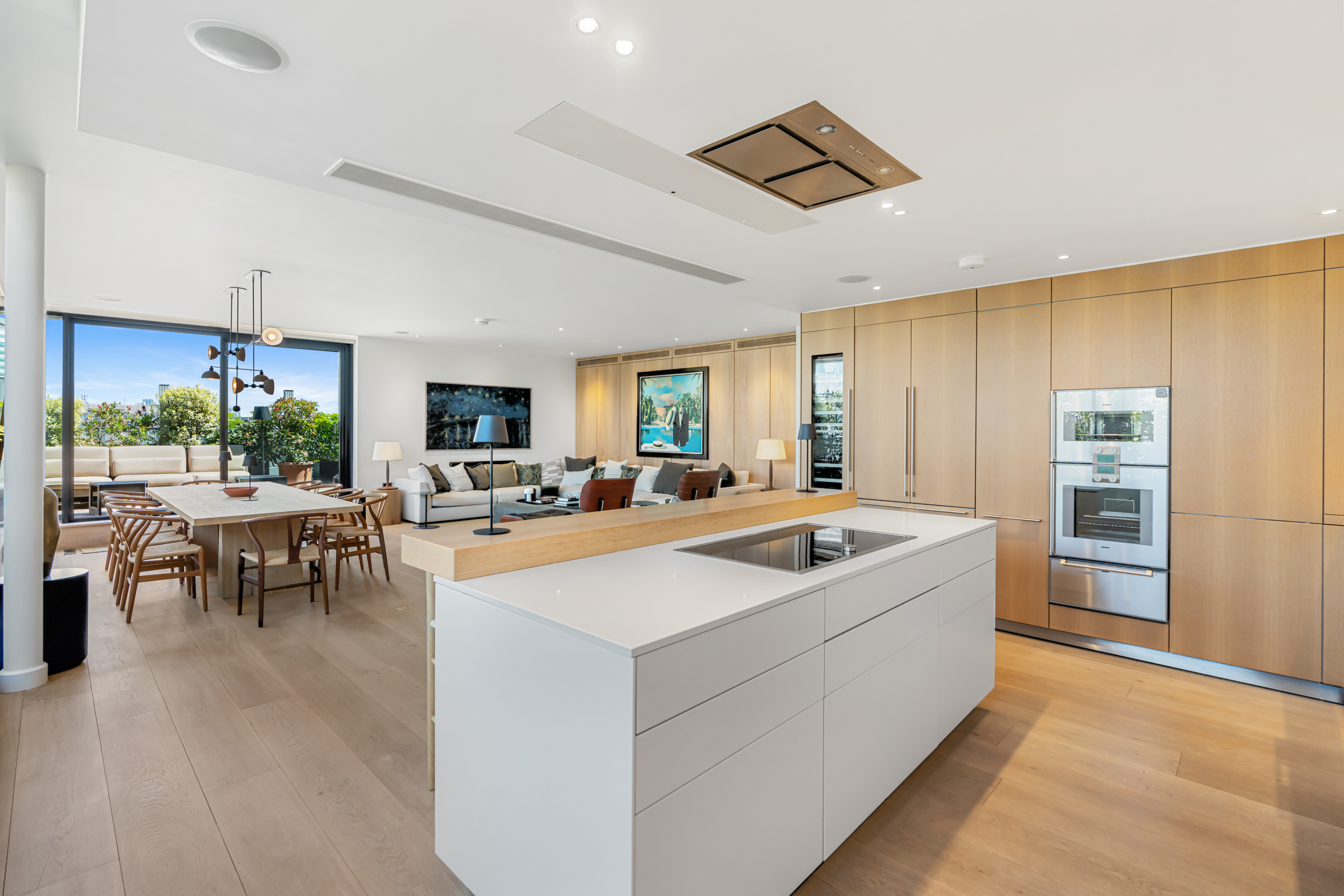 Inside, a spacious open-plan kitchen, dining, and reception area provides the perfect setting for entertaining, seamlessly extending onto the terraces for a stunning indoor-outdoor living experience. Additional benefits include air conditioning, a private lift, and secure underground parking for two cars.