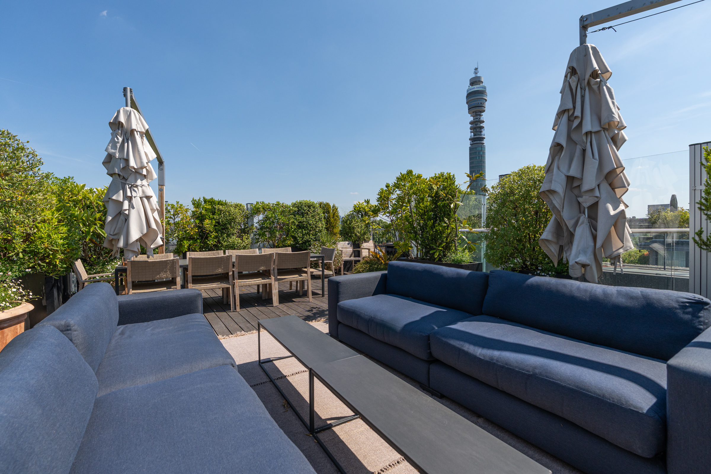 The standout feature of this property is its extraordinary outside space: two substantial terraces measuring over 1,600 sq ft in total, including a breathtaking 1,100 sq ft roof terrace offering 360-degree views over Central London and Regent’s Park, an incredibly rare feature in this location.