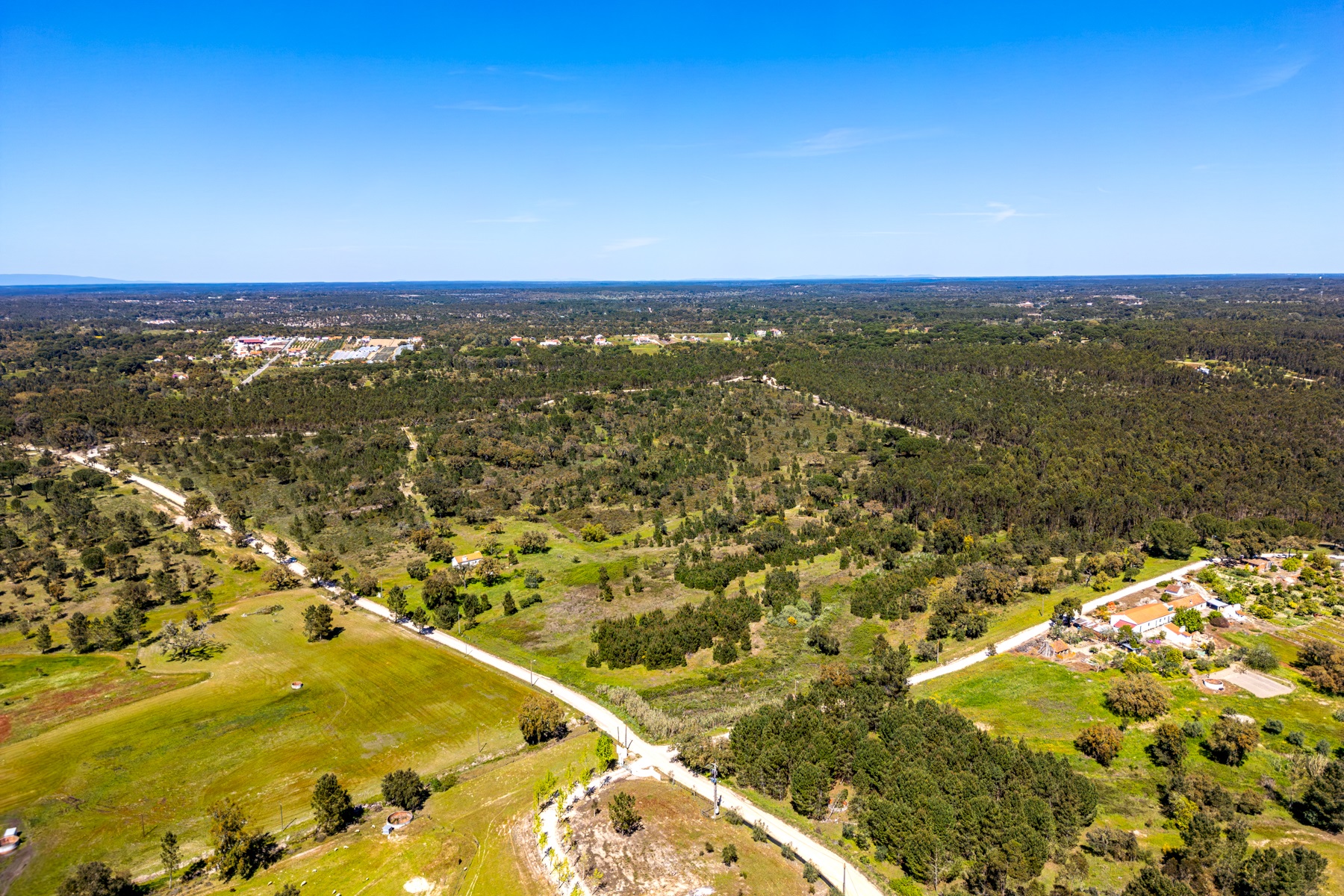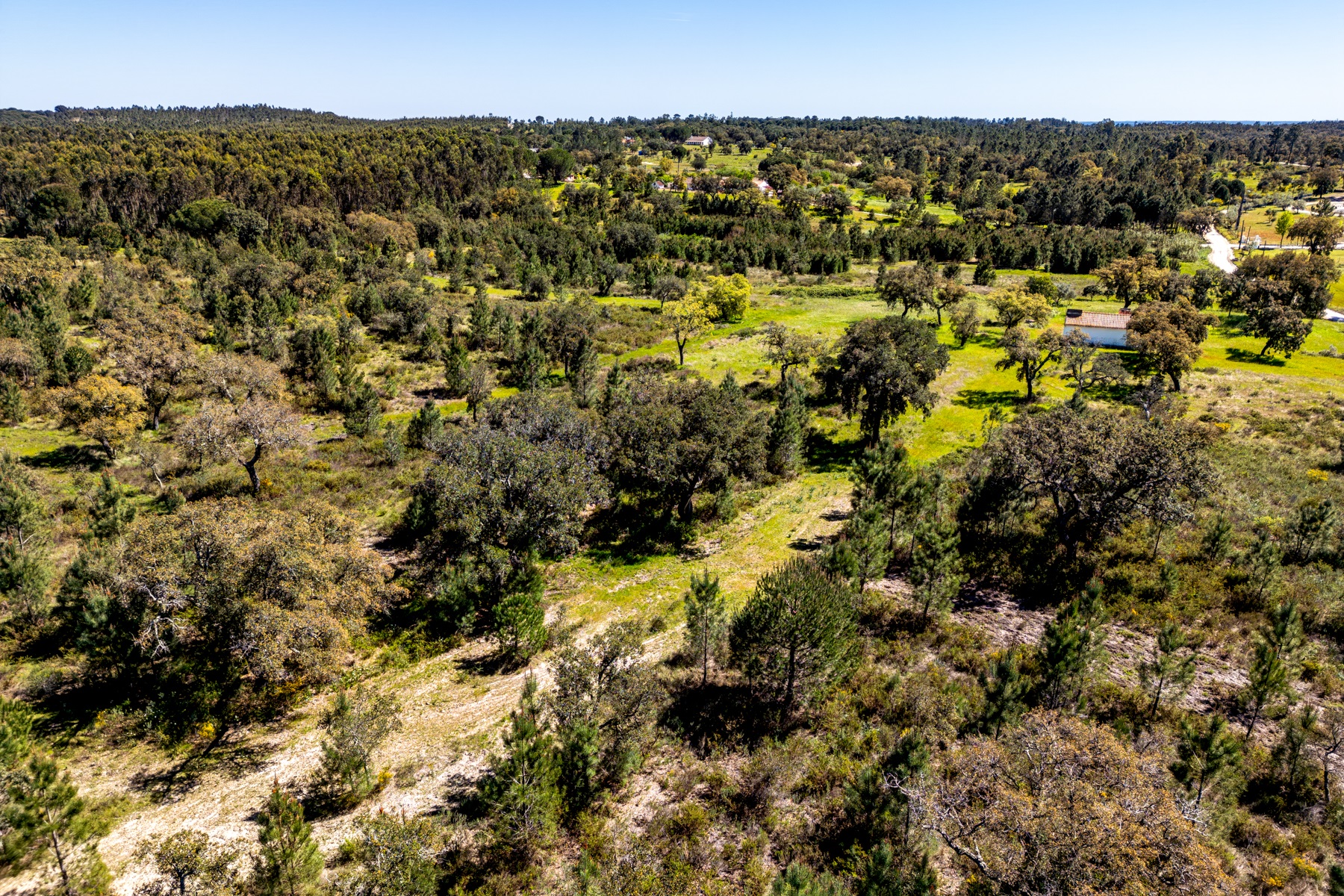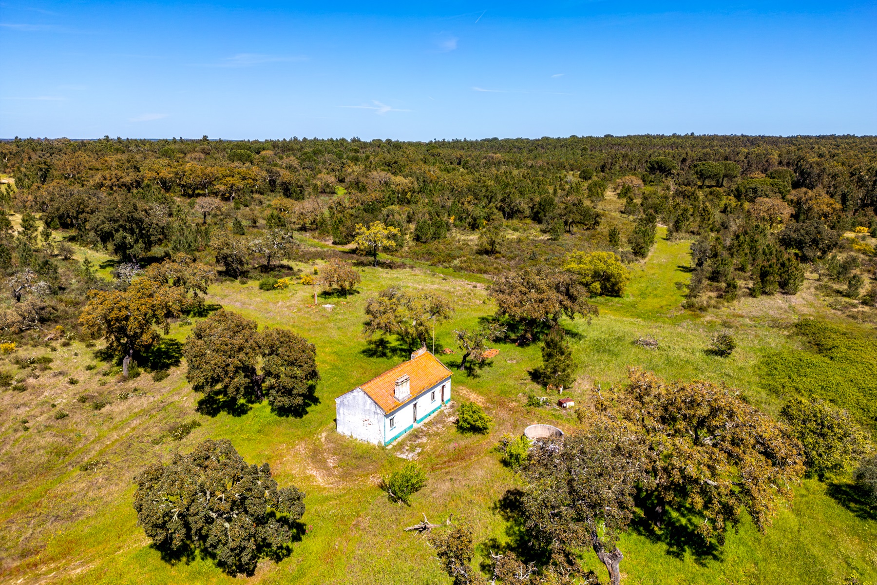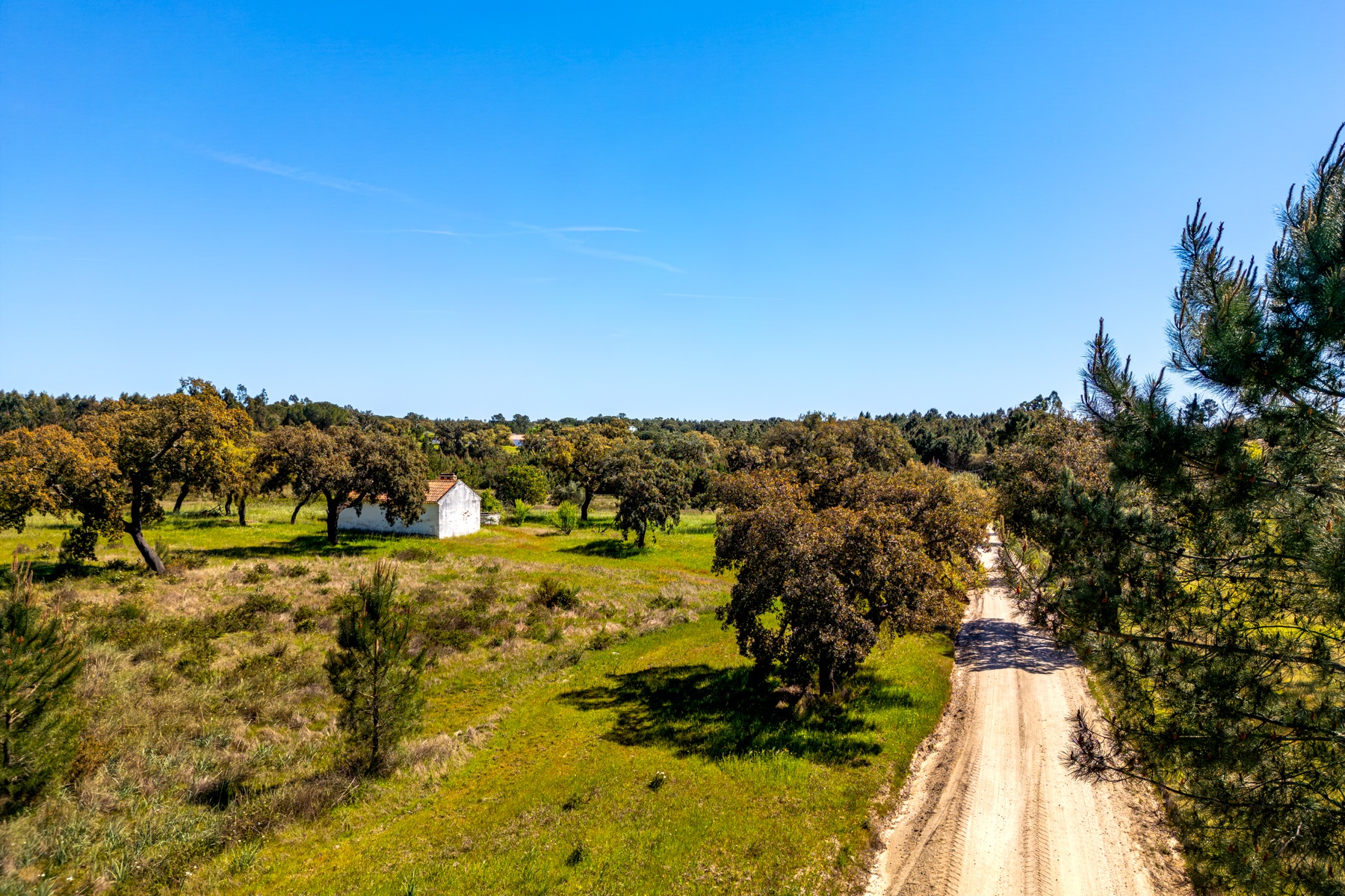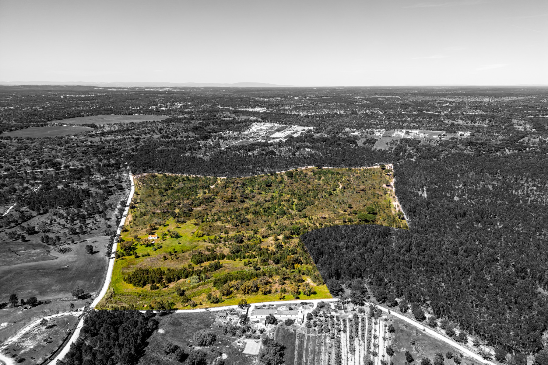 Located in a region known for its extensive rural estates and preserved natural surroundings, this approximately 20-hectare property offers a rare combination of woodland, agricultural land, and defined development potential. The property benefits from connections to public water and electricity networks, complemented by a well and a former pond situated along a watercourse, with potential for restoration. Access is straightforward, ensuring efficient connections to Santarém (approximately 30 minutes), the beaches of Montargil, and Lisbon, located about 90 km away. The surrounding area is characterized by a structured rural community, with a nearby village and well-managed estates, providing a stable and well-maintained environment. The forest component includes cork production, with significant potential for value growth, supported by a large number of young cork oak trees. In planning terms, the property allows for a building footprint of up to 800 sqm, enabling the development of residential structures with attic space. There is also an existing building of approximately 50 sqm, intended as a caretaker’s house, requiring renovation. Additionally, there is an approved architectural project designed by a reputable studio for a 244 sqm residence (including attic and mezzanines), based on advanced energy efficiency principles aligned with the passivhaus concept. An opportunity for residential development or a private project, set within a rural context yet within reach of key urban centres.