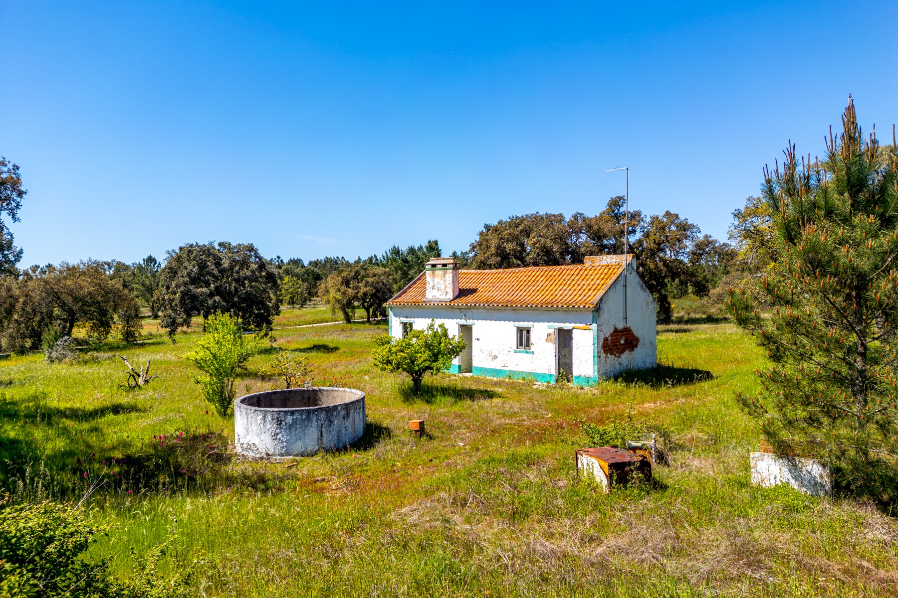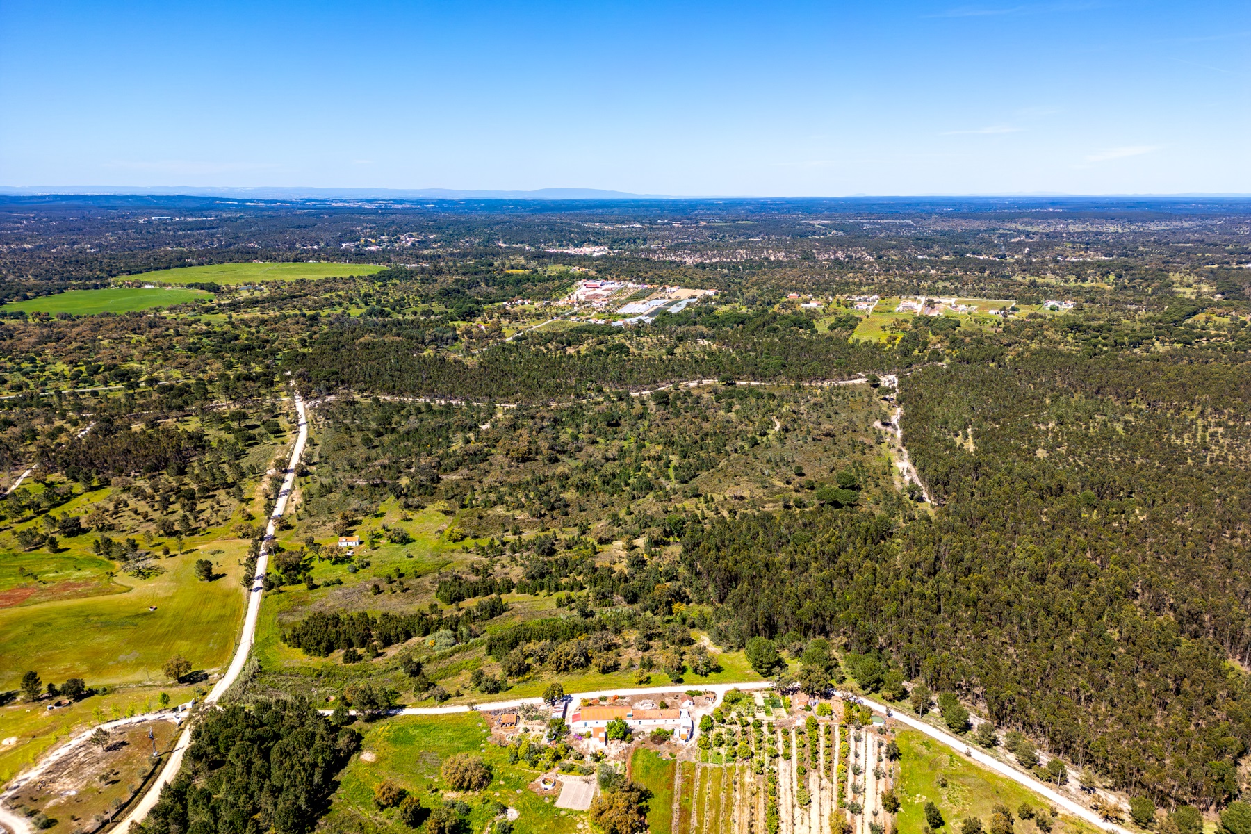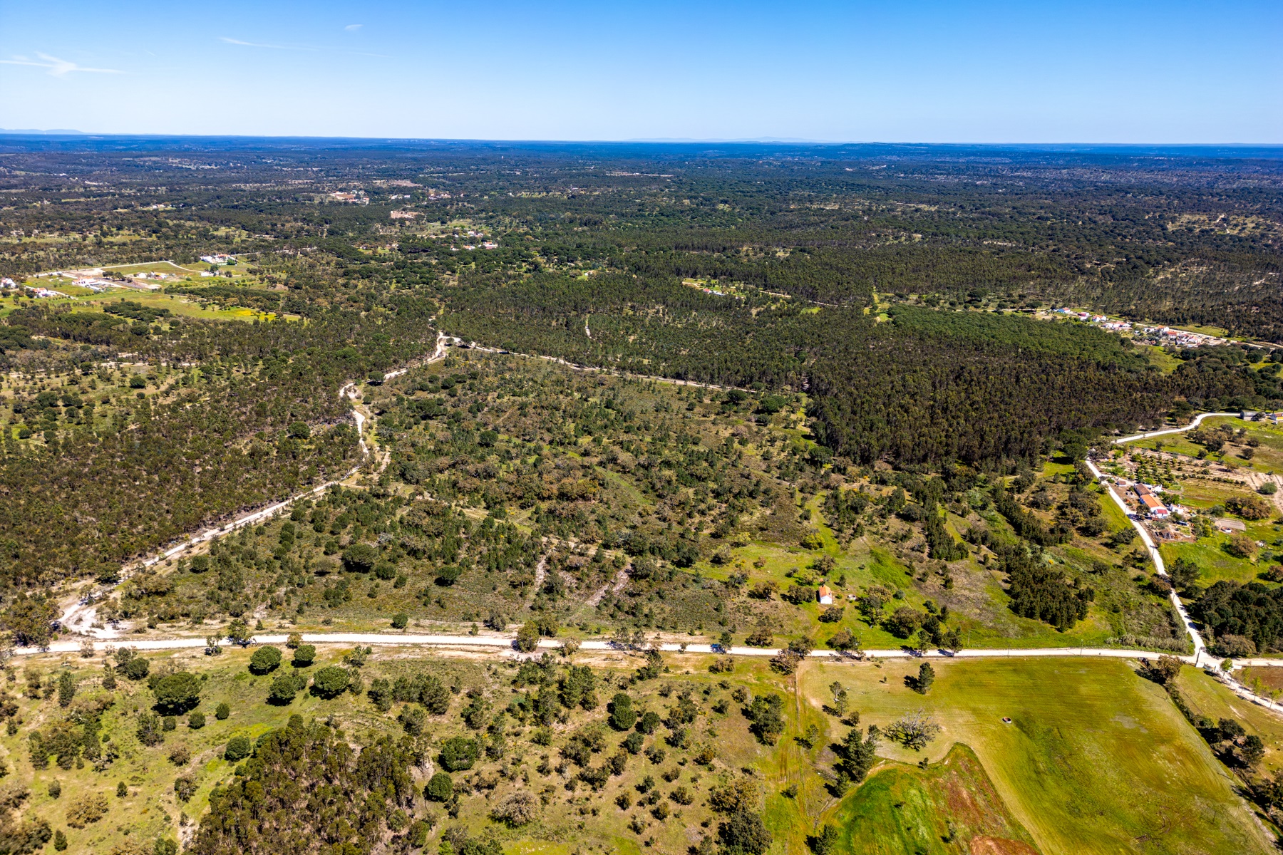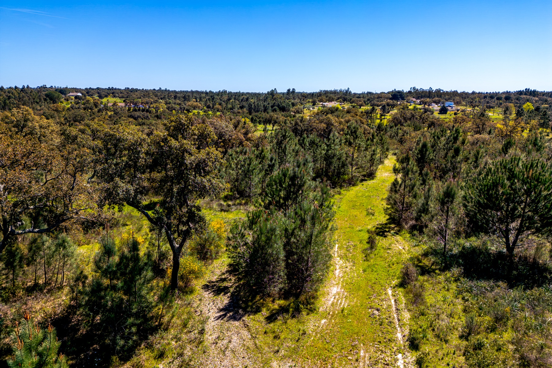 Located in a region known for its extensive rural estates and preserved natural surroundings, this approximately 20-hectare property offers a rare combination of woodland, agricultural land, and defined development potential. The property benefits from connections to public water and electricity networks, complemented by a well and a former pond situated along a watercourse, with potential for restoration. Access is straightforward, ensuring efficient connections to Santarém (approximately 30 minutes), the beaches of Montargil, and Lisbon, located about 90 km away. The surrounding area is characterized by a structured rural community, with a nearby village and well-managed estates, providing a stable and well-maintained environment. The forest component includes cork production, with significant potential for value growth, supported by a large number of young cork oak trees. In planning terms, the property allows for a building footprint of up to 800 sqm, enabling the development of residential structures with attic space. There is also an existing building of approximately 50 sqm, intended as a caretaker’s house, requiring renovation. Additionally, there is an approved architectural project designed by a reputable studio for a 244 sqm residence (including attic and mezzanines), based on advanced energy efficiency principles aligned with the passivhaus concept. An opportunity for residential development or a private project, set within a rural context yet within reach of key urban centres.
