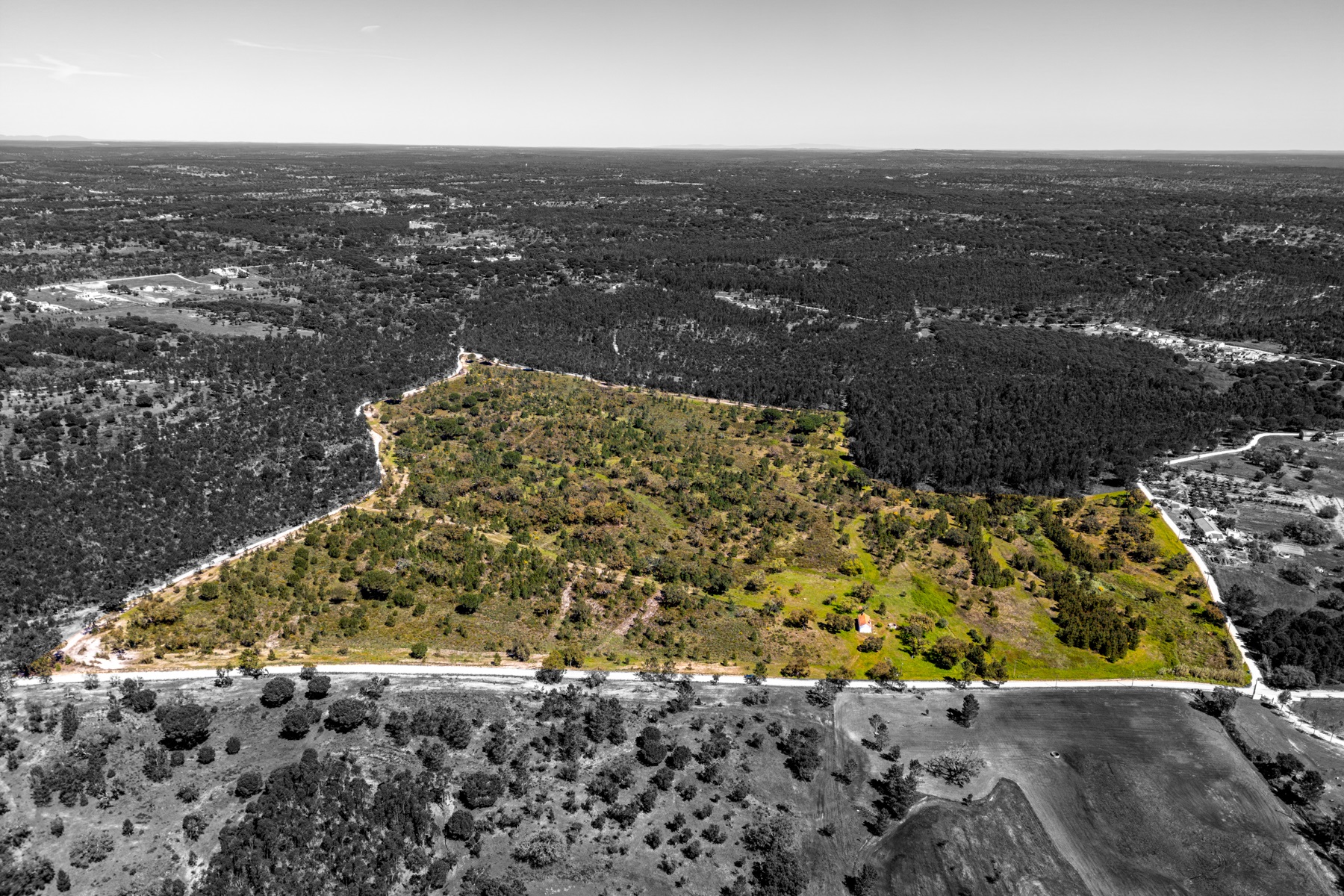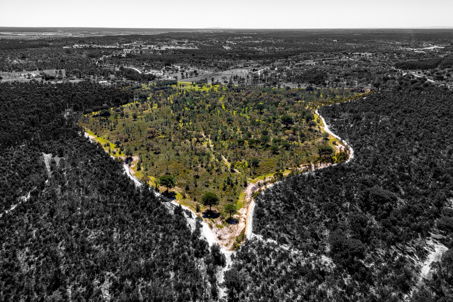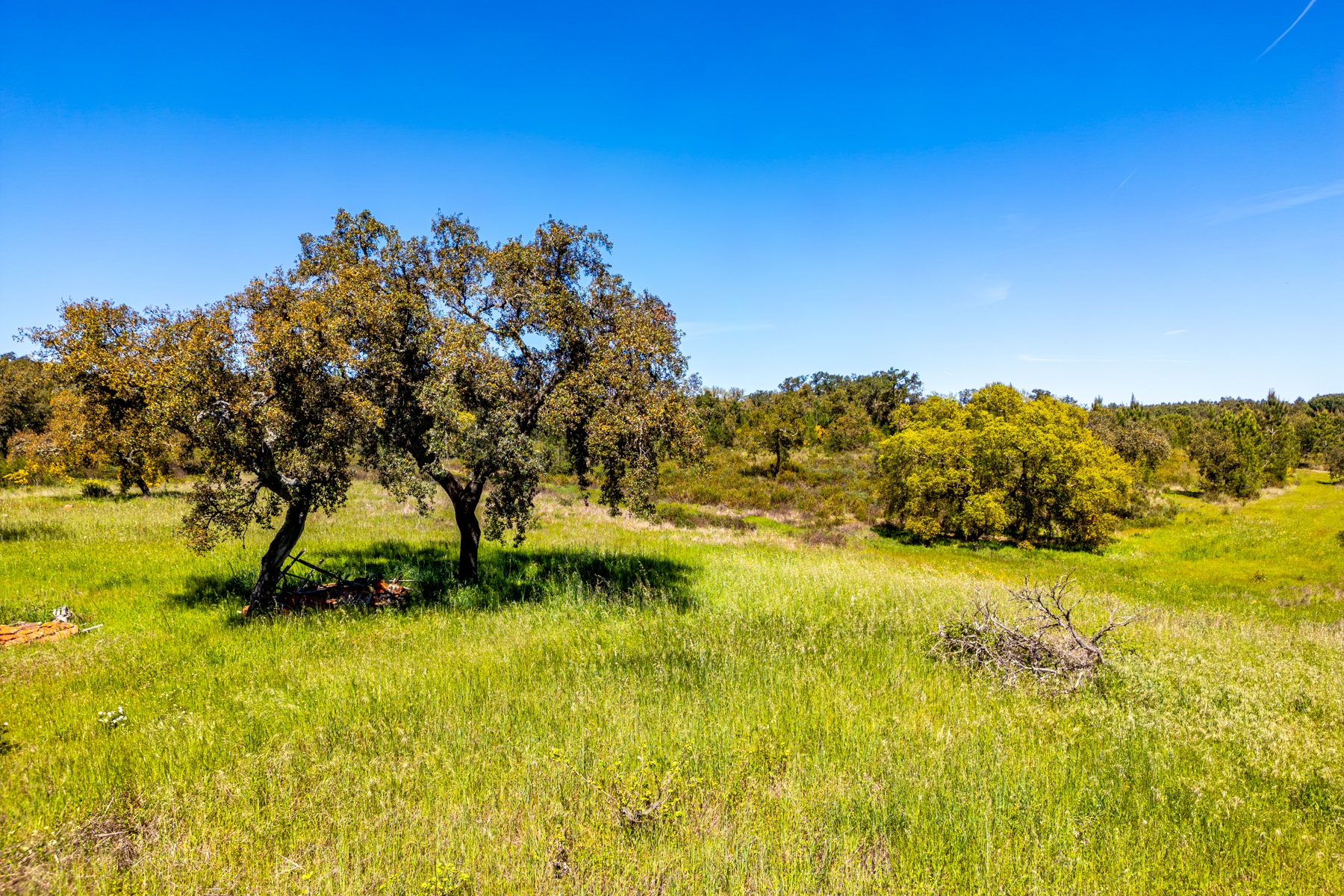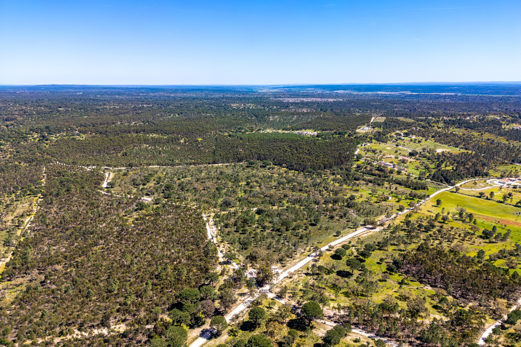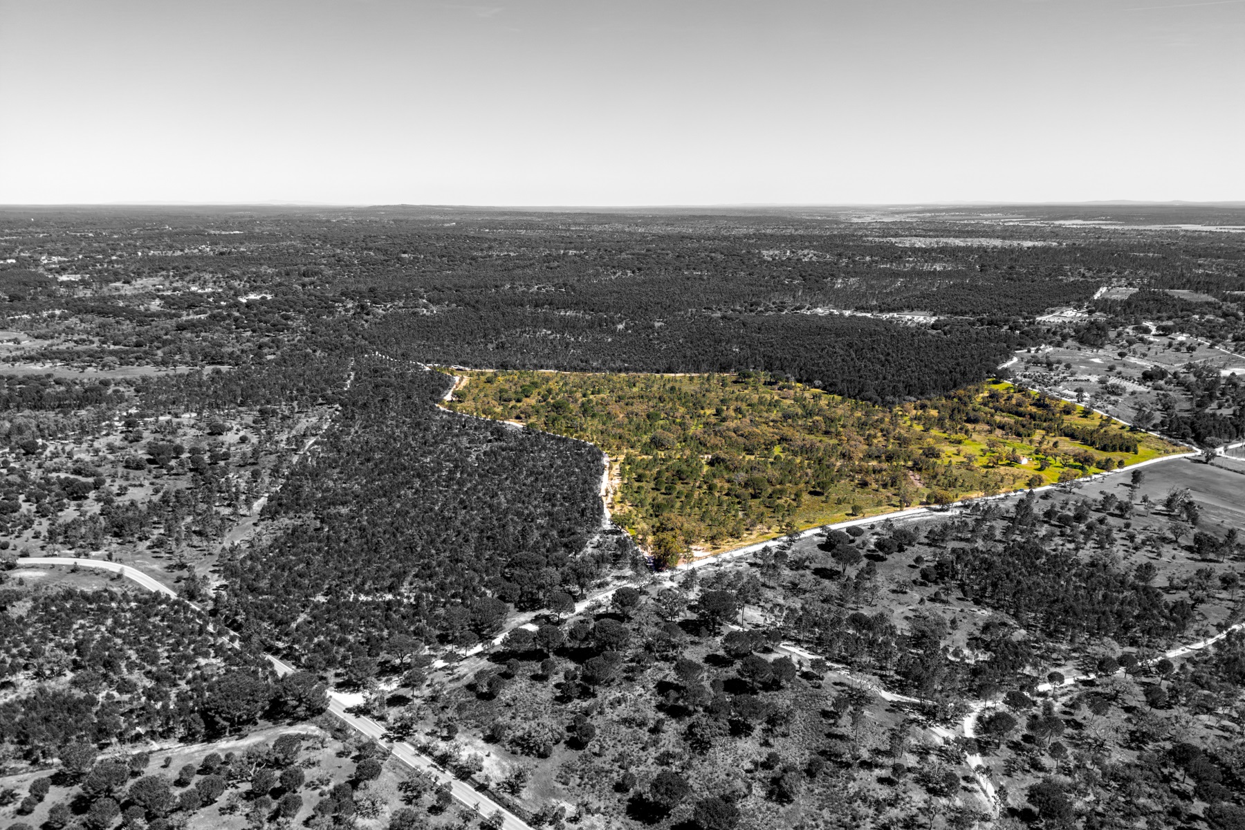 Located in a region known for its extensive rural estates and preserved natural surroundings, this approximately 20-hectare property offers a rare combination of woodland, agricultural land, and defined development potential. The property benefits from connections to public water and electricity networks, complemented by a well and a former pond situated along a watercourse, with potential for restoration. Access is straightforward, ensuring efficient connections to Santarém (approximately 30 minutes), the beaches of Montargil, and Lisbon, located about 90 km away. The surrounding area is characterized by a structured rural community, with a nearby village and well-managed estates, providing a stable and well-maintained environment. The forest component includes cork production, with significant potential for value growth, supported by a large number of young cork oak trees. In planning terms, the property allows for a building footprint of up to 800 sqm, enabling the development of residential structures with attic space. There is also an existing building of approximately 50 sqm, intended as a caretaker’s house, requiring renovation. Additionally, there is an approved architectural project designed by a reputable studio for a 244 sqm residence (including attic and mezzanines), based on advanced energy efficiency principles aligned with the passivhaus concept. An opportunity for residential development or a private project, set within a rural context yet within reach of key urban centres.