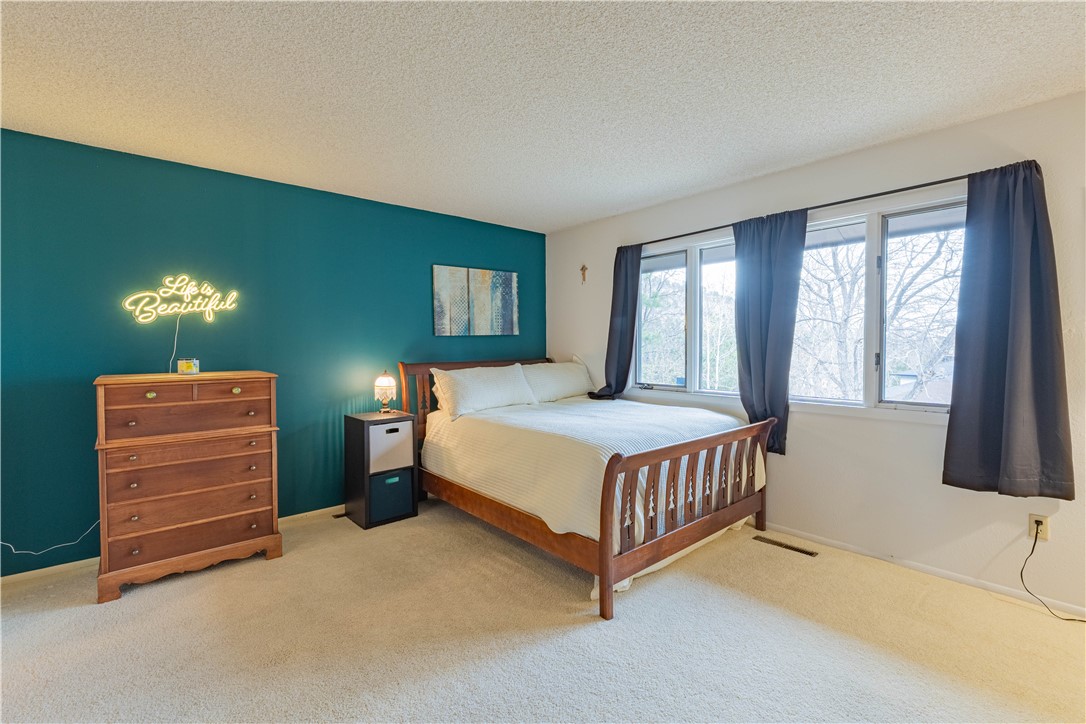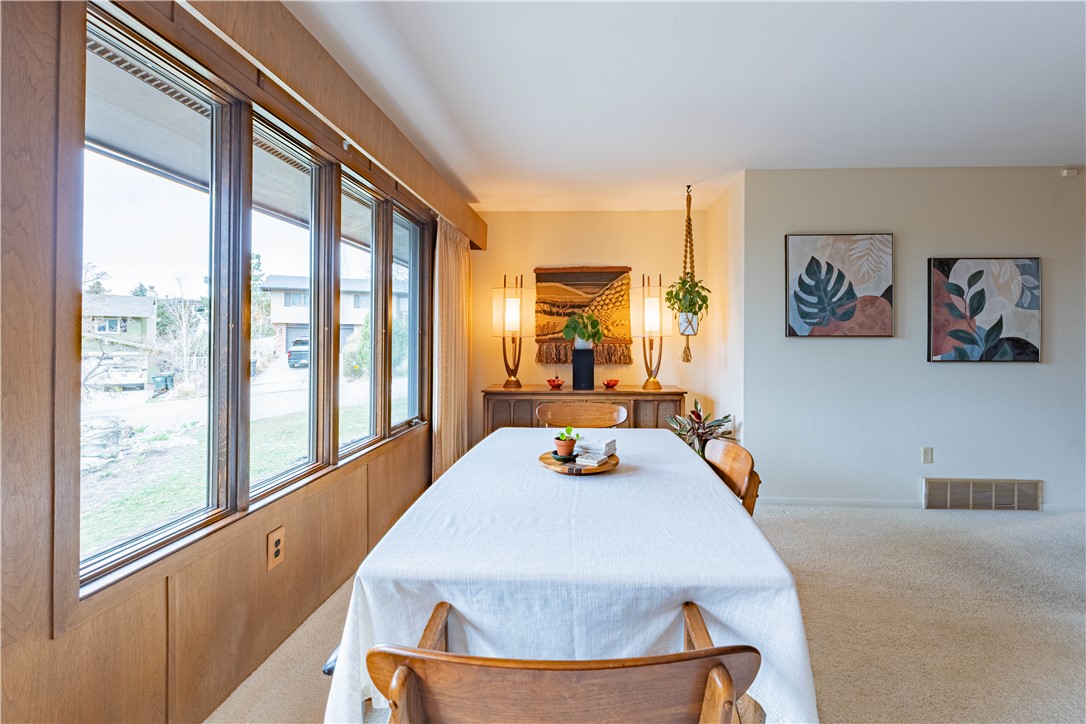 Partially updated 4-bed, 2-bath home in a desirable west-end location just 10 minutes to downtown. Features include new flooring on the lower levels, along with fresh trim and paint throughout. The primary bedroom offers a connecting bath with new flooring and paint, plus a shared shower/tub with the guest bedroom. Upper level includes a dedicated office space with updated finishes and great views. The spacious family room features large windows that bring in abundant natural light and showcase the surrounding scenery. Enjoy the new back deck, perfect for relaxing or entertaining, along with generous front and backyard space offering great landscaping potential.