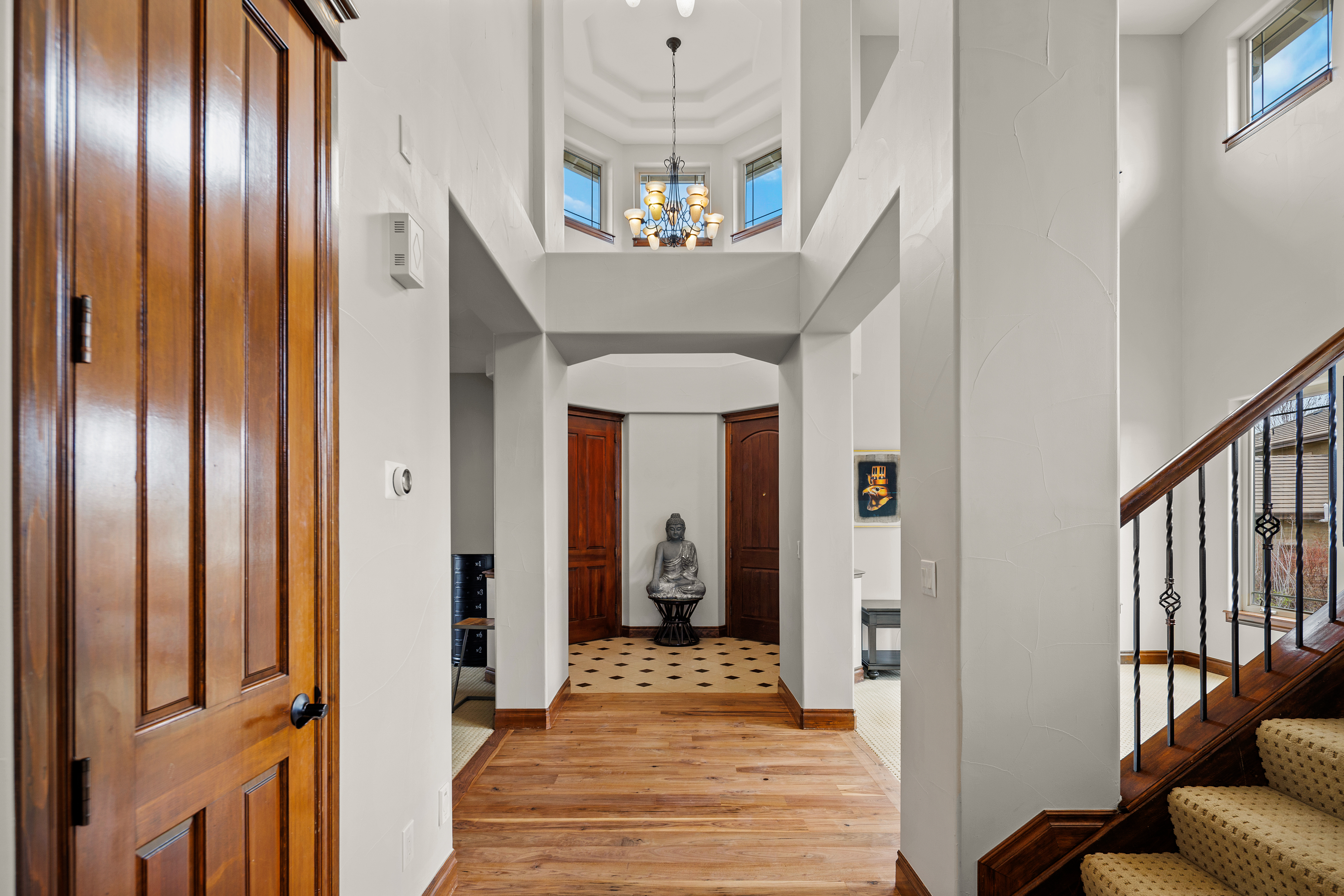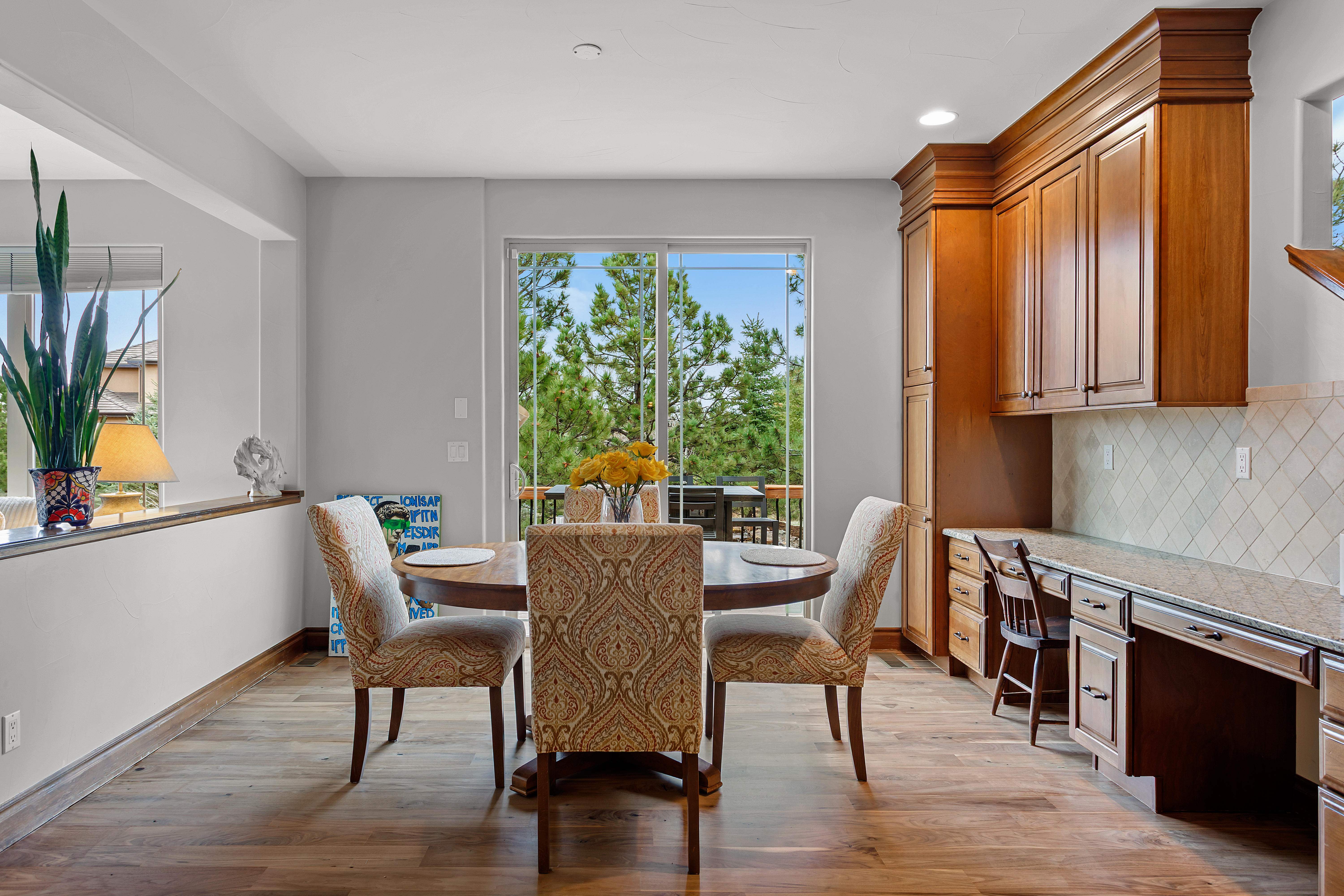 Welcome to your dream home in the heart of Castle Rock! Nestled on a quiet cul-de-sac with mountain views and surrounded by mature trees, this exceptional two-story residence offers a private, tranquil setting perfect for everyday living and entertaining. Located in the highly sought-after Diamond Ridge neighborhood, known for its spacious lots, custom homes, and beautifully maintained landscaping, this property provides both luxury and room to breathe. With 6 bedrooms and 5 bathrooms, the home is thoughtfully designed with quality craftsmanship and generous living spaces throughout. Step inside the foyer to soaring ceilings, rich wood flooring, and elegant finishes. The main level features a formal dining room, adjacent to the living room and read nook with fireplace. The chef’s kitchen is equipped with premium appliances, bar seating, a butler’s pantry, dining area off the deck and abundant cabinet, generous family room w/fireplace and an office. Upstairs, a spacious loft, a functional hub between bedrooms. The luxurious primary suite offers a fireplace, 5 piece bathroom, walk-in closet, and the rare convenience of a private staircase in addition to the main access. Additional bedrooms include a private ensuite and a Jack-and-Jill layout, ideal for family or guests. The garden-level basement is filled with natural light and features tall ceilings, a large recreation room with wet bar and fireplace, a steam/sauna shower bathroom, two additional bedrooms, a dedicated movie theater, and ample storage space.Outside, the expansive backyard is an entertainer’s paradise with a large deck, stamped concrete patio, custom stone water feature, lush lawn, sport court, and a designated hot tub area. Completing the home are two separate two-car garages, offering plenty of room for vehicles, hobbies, and storage.This remarkable property blends luxury, comfort, and functionality in one of Castle Rock’s most desirable communities.