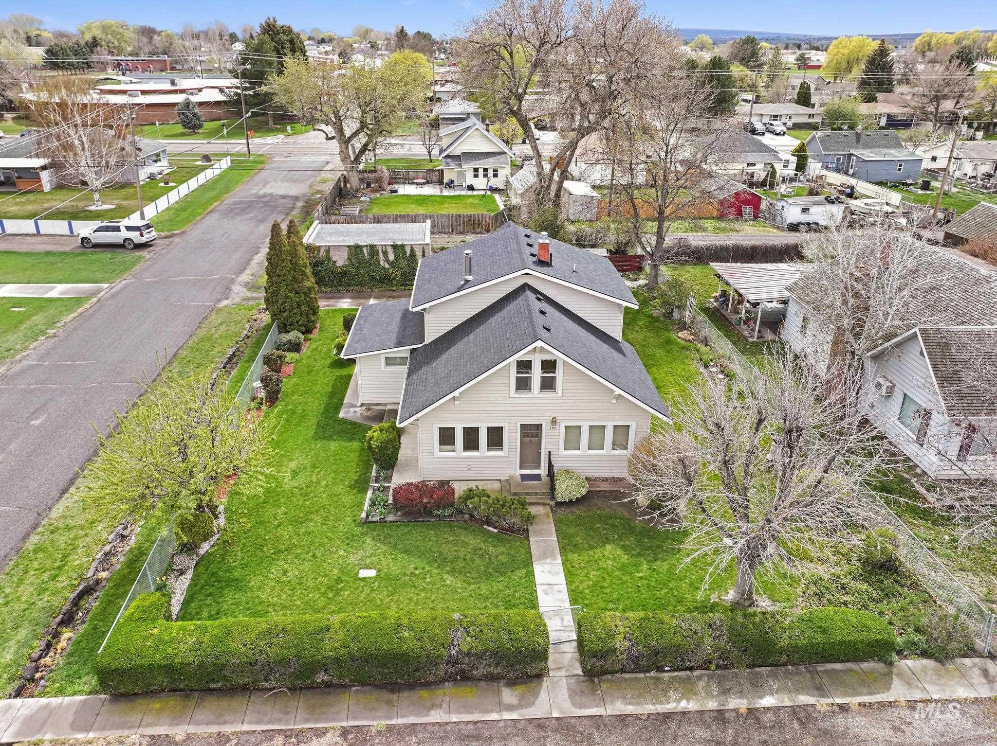 If you appreciate homes with character, this one is hard to replicate. From the moment you walk in, it has a distinct vintage feel that brings a sense of warmth and personality you don't often see anymore. The main level offers a traditional layout with a formal living and dining space, two bedrooms, a full bathroom, and a classic kitchen that fits the era of the home. There's also a spacious mudroom and laundry area, along with an additional living space featuring a cozy carousel fireplace and built-in bar that gives the home a relaxed, lived-in feel. Upstairs adds even more versatility with a second family room, three additional bedrooms, and another bathroom. Some of the bedrooms include their own sinks, a unique feature that adds both charm and function. Outside, the home makes a great first impression with strong curb appeal, updated metal siding and windows, and a brand-new roof. A detached garage, fully fenced yard, sprinkler system, and corner lot round out the property and give you usable space both inside and out.