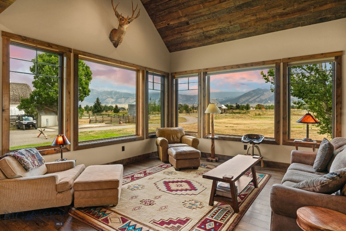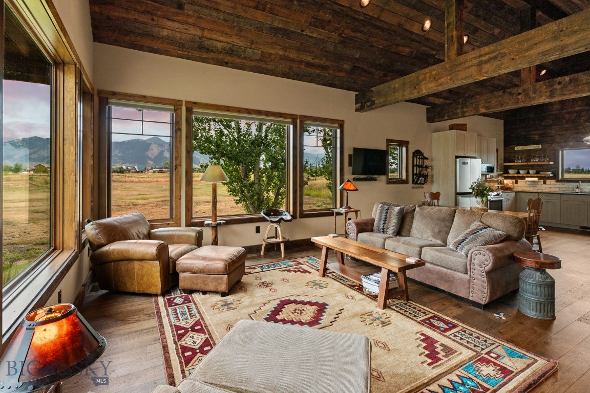 The unique Star M estate is set on 33 acres and offers breathtaking views of the Bridger Mountains and Ross Peak, with Bostwick Creek flowing through the property seasonally. Located just 8 miles from Bozeman and 10 minutes from BZN/Yellowstone International Airport, it provides the perfect balance of rural tranquility and convenience to all that Bozeman and the Gallatin Valley have to offer. The property features multiple residences, each blending comfort with Montana elegance. The main guest house (2022, 1,788 sqft) blends timeless rustic character with refined, high-end finishes. Its open-concept layout flows from a well-appointed kitchen into dining and living areas anchored by a wood-burning stove, with expansive windows framing incredible views. Two bedrooms and two baths are on the main level, with a non-egress bedroom, office, and utility space below. The renovated farmhouse blends original charm with modern updates, including refinished hardwood floors, and an updated kitchen. Offering 4 bedrooms and 2 baths across two levels with a basement, the layout provides generous spaces and comfortable living. A newly completed (2024) one-bedroom, one-bath guest cabin (650 sqft) is designed with reclaimed lumber and modern finishes, and offers ideal guest accommodations or a turnkey VRBO/Airbnb opportunity. Breathtaking views are captured from every direction. The landmark barn is a masterpiece of rustic charm and historic significance. Thoughtfully designed lighting and a new propane fire-pit make it an exceptional space for gatherings, personal use, or events. Currently, the space serves as a seasonal wedding venue. For agricultural or equestrian use, the property offers a corral area, small smokehouse, and two squeeze chutes. Additional amenities include a heated, insulated 40x60 shop (2021), a renovated shed office, and RV pad with full hookups. With all-new 800-amp electrical service, four wells, and three new septic systems - two allowing additional structures - the property is primed for expansion or development. Two 10-acre pastures to the north and south of the main homestead remain undeveloped and leased for farming, but offer opportunity for subdivision. This extraordinary Montana property offers a blend of history, luxury, and limitless possibilities. Whether envisioned as a private retreat, multigenerational property, wedding venue or legacy holding, the Star M estate is truly one of a kind. Schedule your private tour today.