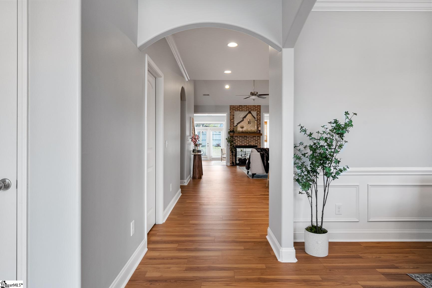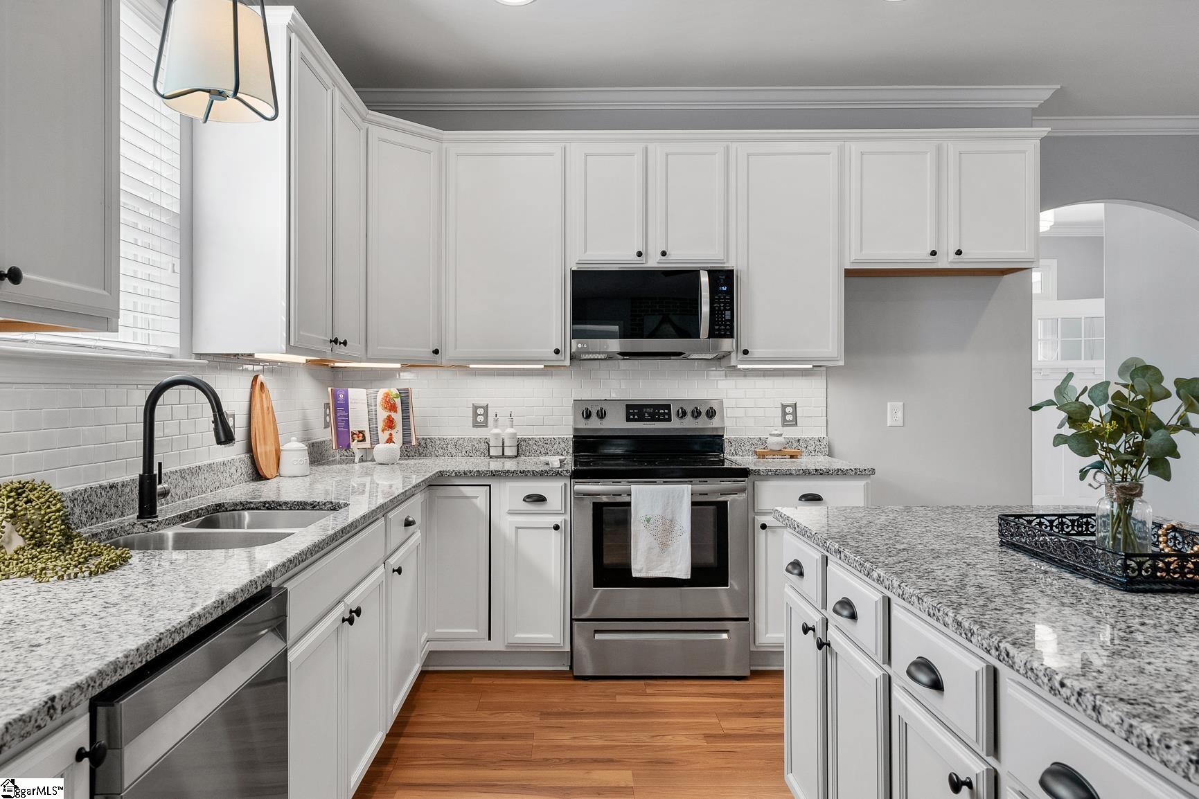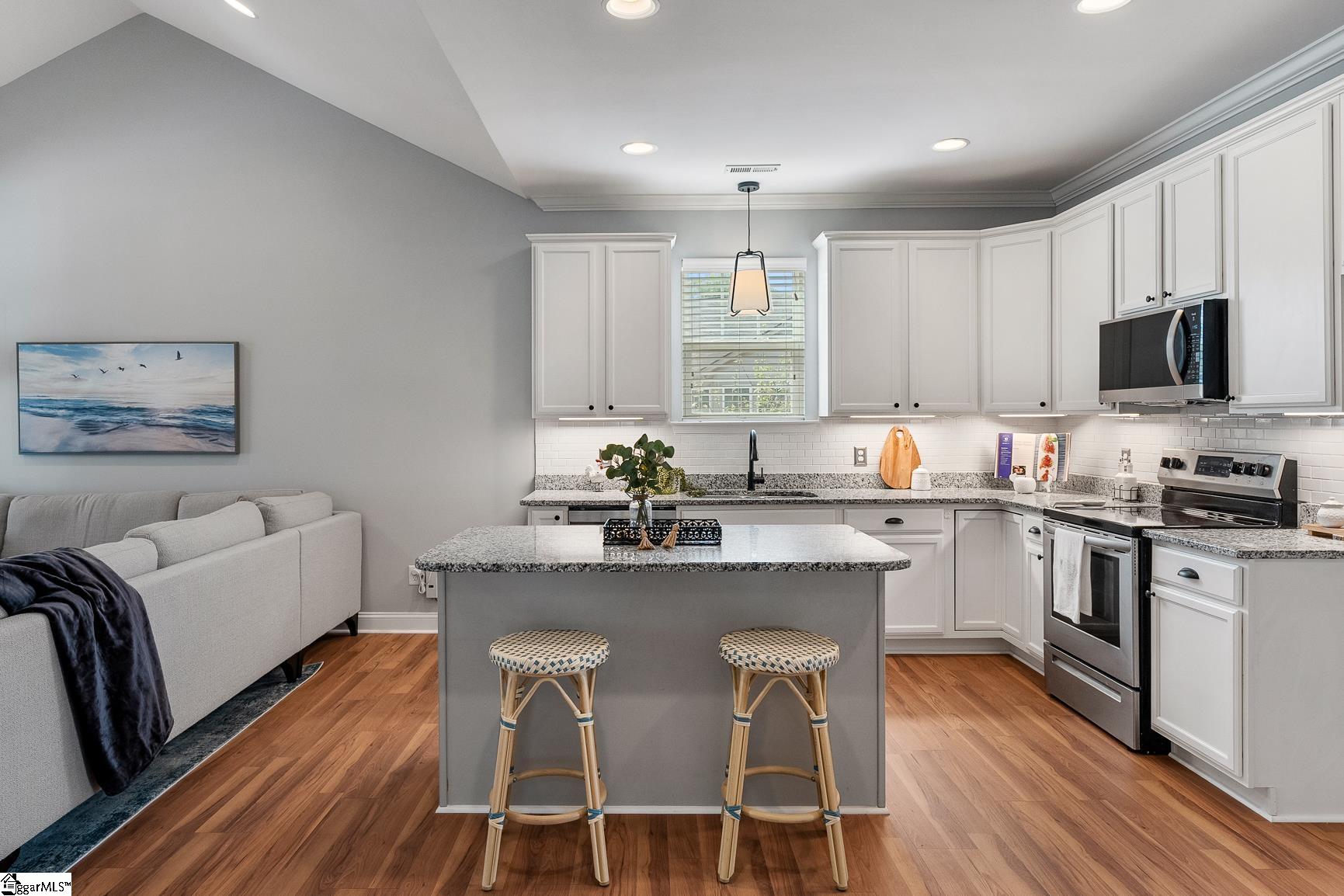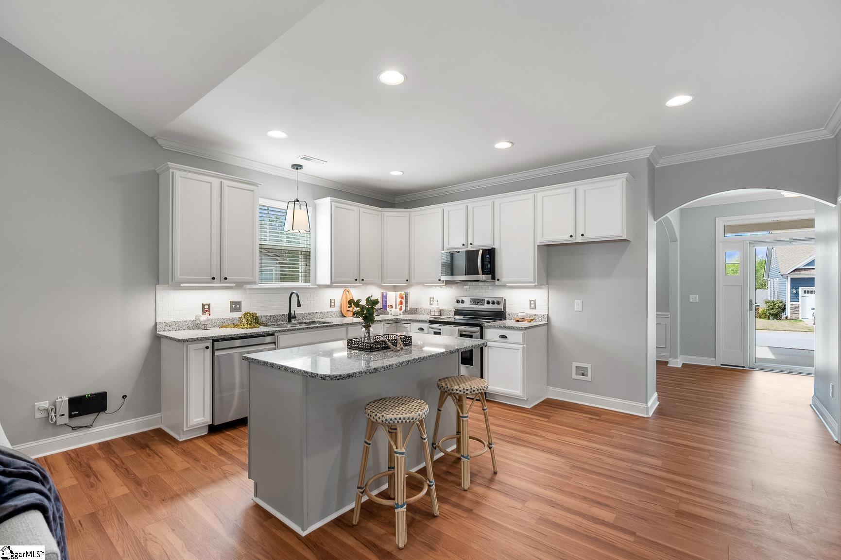 Welcome to 1104 Draycott Road,where comfort, thoughtful updates, and everyday livability come together in one of Simpsonville's most convenient locations. This beautifully updated 4-bedroom, 3-bath home offers a highly desirable layout with three bedrooms on the main level and a private fourth bedroom with full bath upstairs, perfect for guests, a home office, or a quiet retreat. The heart of the home has been transformed to create a bright, open feel, with the living room seamlessly connected to the sunroom. A stunning double-sided fireplace, enhanced with a brick surround and new insert/logs, serves as a warm and inviting focal point between the two spaces. Recent updates throughout the home include new LVP flooring on the main level, fresh tile in all three bathrooms, a new kitchen backsplash, added under-cabinet lighting with timer, and recessed lighting in the living room and kitchen. The kitchen has also been elevated with newly installed cabinet hardware, adding a clean and modern touch. Step outside to enjoy a beautiful patio, perfect for entertaining or relaxing in your own backyard retreat. Located just 5 minutes from downtown Simpsonville, you'll love the convenience of nearby shopping, dining, and everyday amenities. As an added bonus, Frontier fiber internet is installed, with free activation and two months of service included for the buyer. With its thoughtful upgrades, flexible layout, this home is ready to be enjoyed.