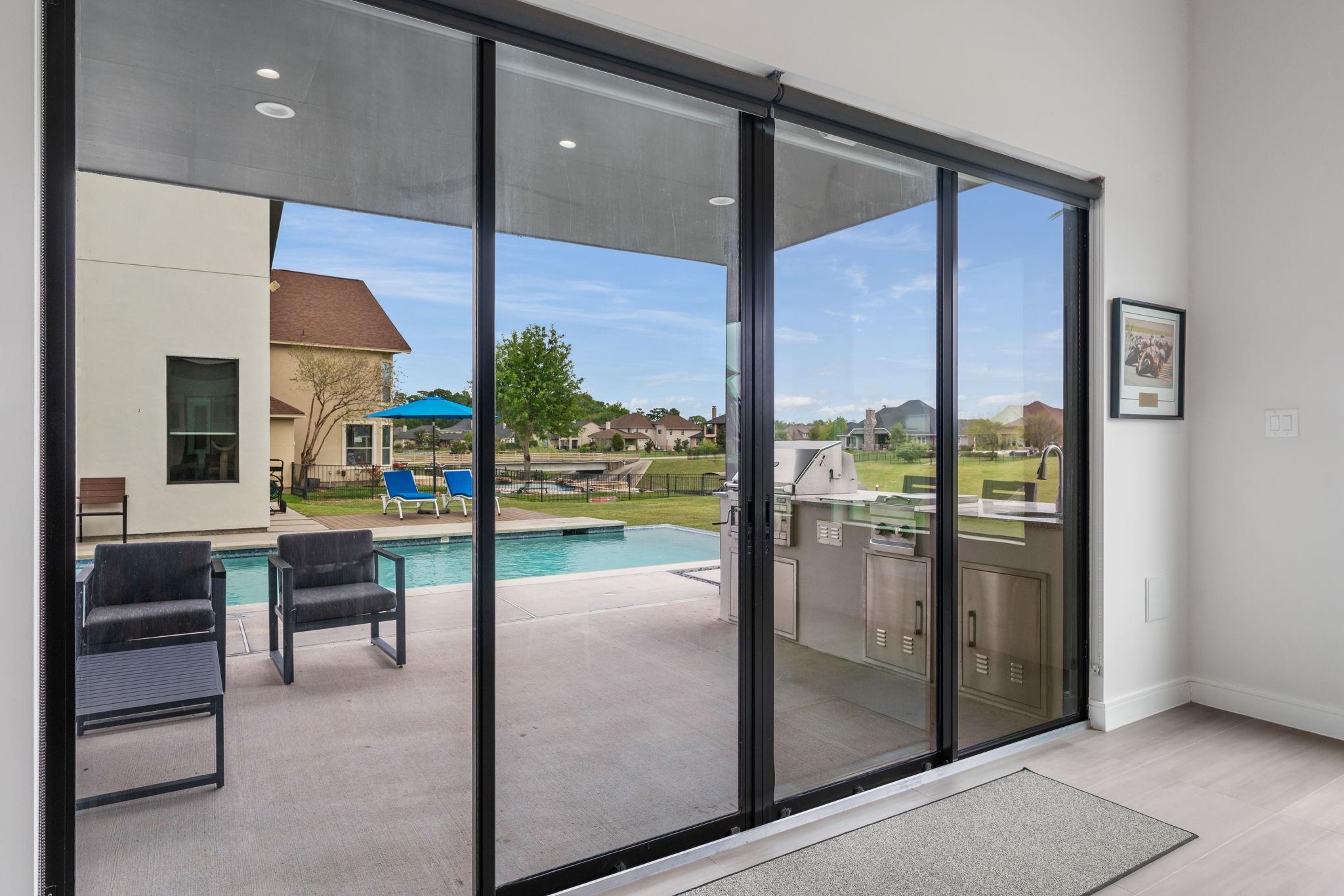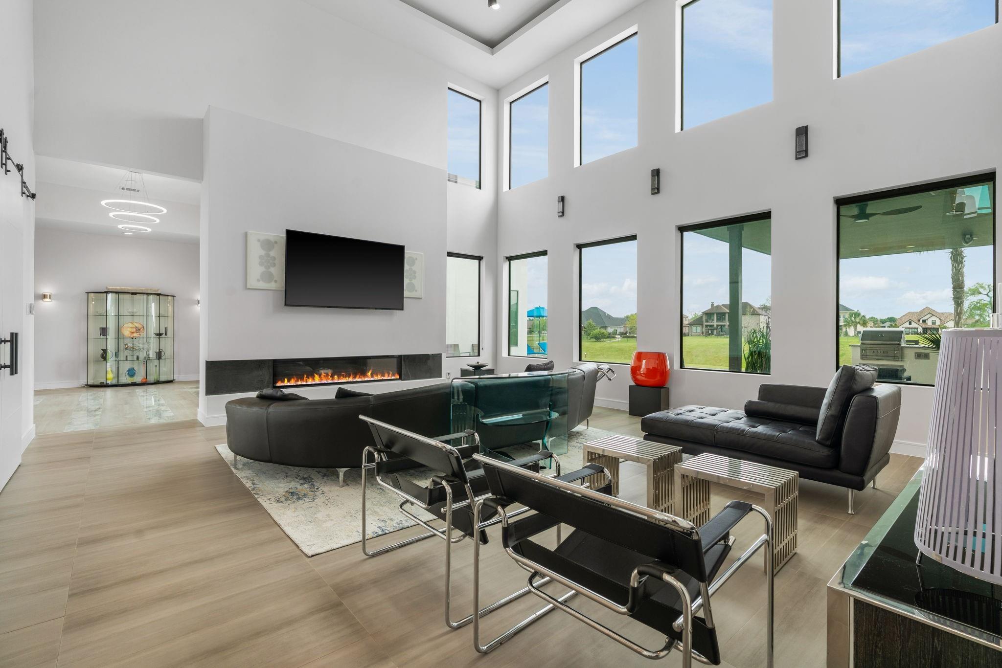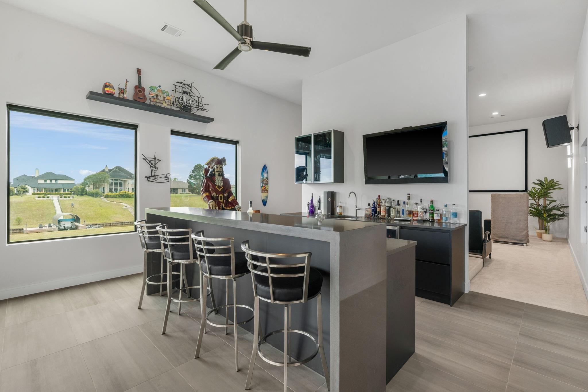 Experience luxury waterfront living in this stunning modern custom-built home located in Grand Harbor on Lake Conroe. Situated on a full acre, this architectural beauty features striking stone & stucco construction, soaring ceilings, & expansive walls of glass that flood the home with natural light. Designed for both comfort & entertaining, this home offers 3-4 spacious bedrooms and 4 full bathrooms, a Chef's kitchen along with dual 2-car garages, perfect for car enthusiasts. Step outside to your private oasis, complete with a sparkling pool, outdoor kitchen, and seamless indoor-outdoor flow. Inside, enjoy well-appointed bar room with direct access to the pool area, plus a private home theater just steps away - ideal for hosting unforgettable gatherings. For boating enthusiasts, the property includes a private boat dock with lift. This is more than a home - it's a lifestyle. Modern elegance, thoughtful design, & waterfront serenity all come together in one exceptional property.