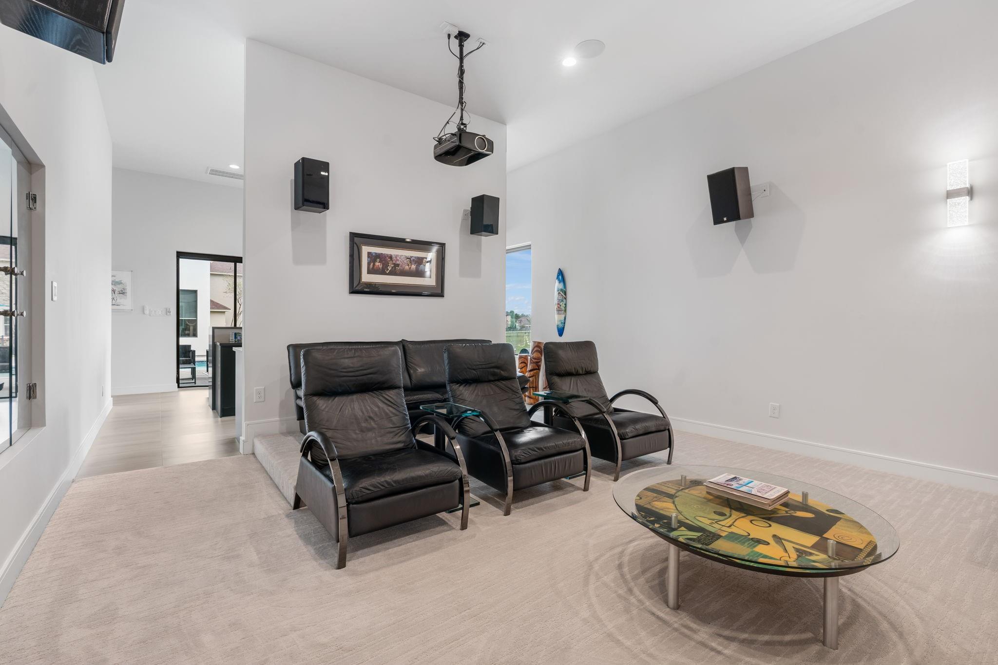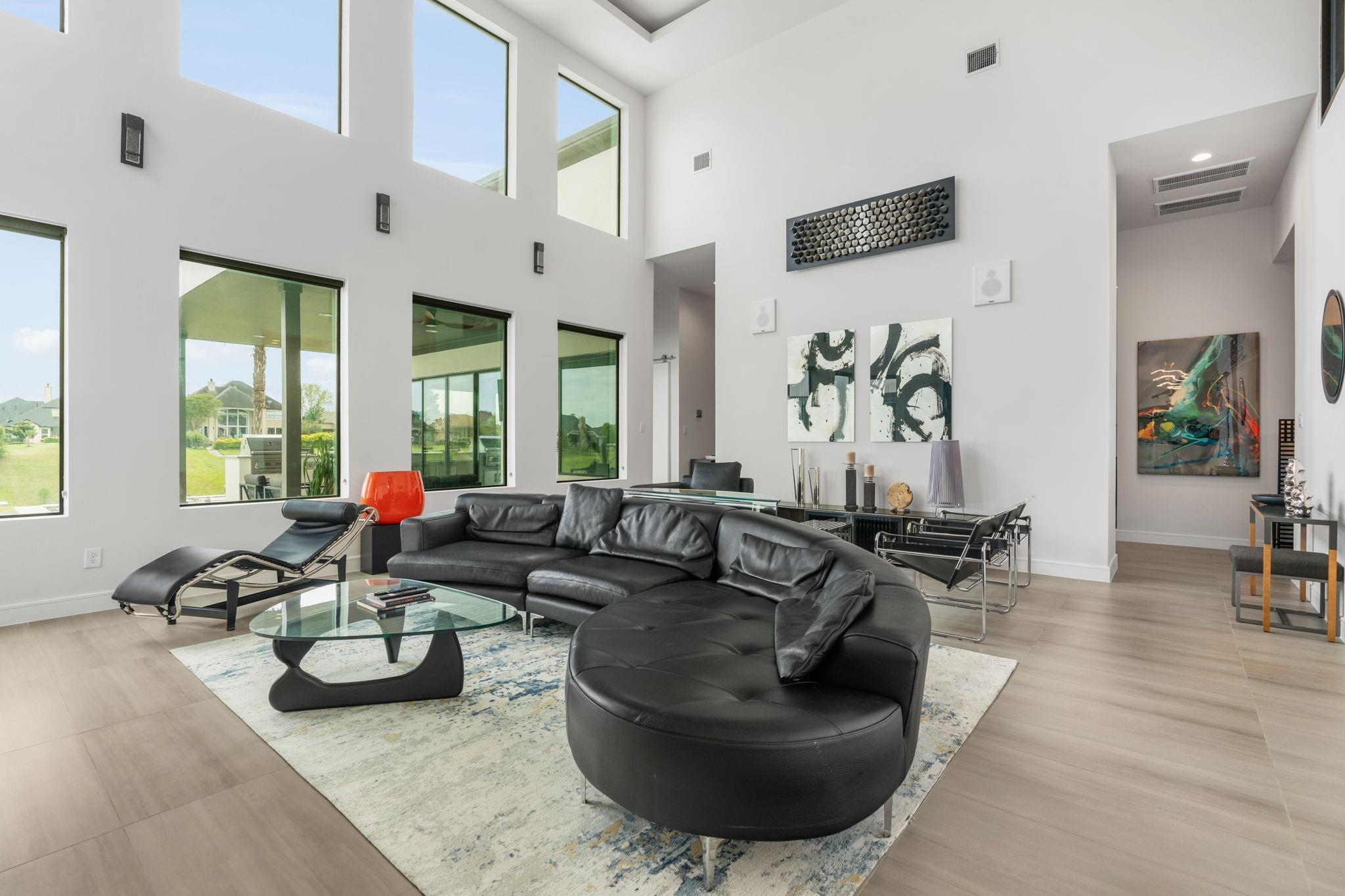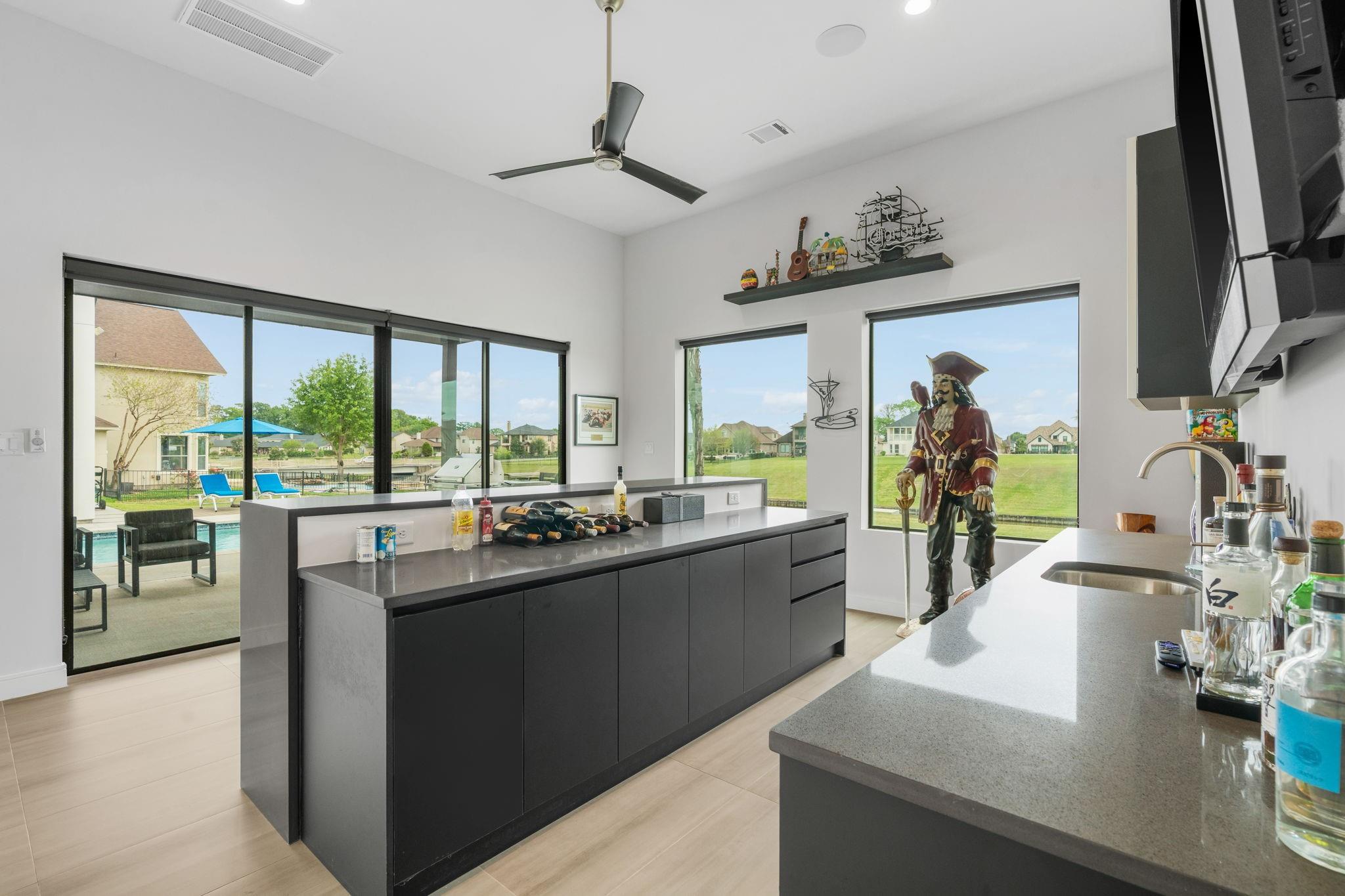 Experience luxury waterfront living in this stunning modern custom-built home located in Grand Harbor on Lake Conroe. Situated on a full acre, this architectural beauty features striking stone & stucco construction, soaring ceilings, & expansive walls of glass that flood the home with natural light. Designed for both comfort & entertaining, this home offers 3-4 spacious bedrooms and 4 full bathrooms, a Chef's kitchen along with dual 2-car garages, perfect for car enthusiasts. Step outside to your private oasis, complete with a sparkling pool, outdoor kitchen, and seamless indoor-outdoor flow. Inside, enjoy well-appointed bar room with direct access to the pool area, plus a private home theater just steps away - ideal for hosting unforgettable gatherings. For boating enthusiasts, the property includes a private boat dock with lift. This is more than a home - it's a lifestyle. Modern elegance, thoughtful design, & waterfront serenity all come together in one exceptional property.