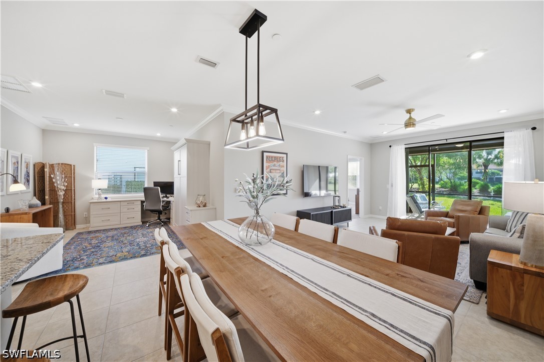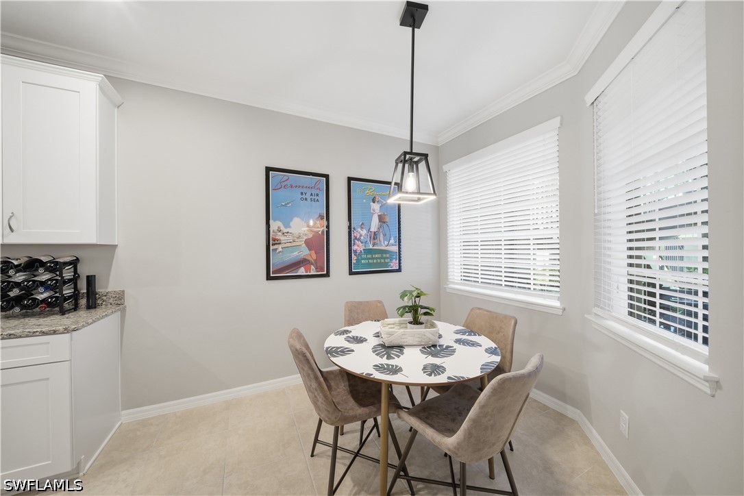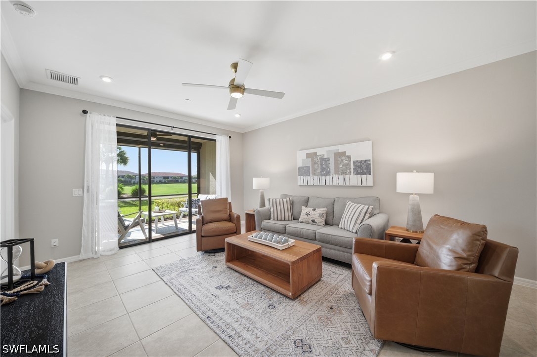 STUNNING GOLF & WATER VIEWS - OFFERED PARTIALLY FURNISHED Nestled within the prestigious, gated enclave of Esplanade Golf & Country Club, this rarely lived-in 2-bedroom + den end-unit residence embodies refined Naples living. Privately positioned at the end of a quiet cul-de-sac, it captures breathtaking sunrise views over a tranquil lake and the manicured 15th green. A light-filled, open-concept floor plan flows effortlessly between the living and dining areas - perfect for both relaxed everyday living and sophisticated entertaining. Upgraded lighting enhances the bright, airy ambiance throughout. The beautifully appointed kitchen features white shaker cabinetry, new upgraded stainless steel appliances, granite countertops, and a charming breakfast nook. The primary suite serves as a serene retreat, complete with dual walk-in closets and a spacious, spa-inspired bath. A private guest suite with en-suite bath offers comfort and privacy for visitors. The versatile den, enhanced by an additional window, includes a custom office and Murphy bed, and can easily be enclosed to create an additional private guest space. Sliding glass doors open to a southeast-facing lanai - an inviting outdoor sanctuary with sweeping golf and water views - complete with a powered hurricane screen for added comfort and protection. Additional highlights include a generously sized laundry room with LG ThinQ washer and dryer, a detached 1 car garage, and exceptional seasonal rental potential of up to $8,000 per month. Impeccably maintained and just five years young, this residence offers the ease of modern construction with minimal anticipated upkeep. THE SELLERS HAVE PAID THE $8,051 CAPITAL IMPROVEMENT PROJECT FEE! Esplanade is set to undergo a series of exciting enhancements including: 4 new indoor PB courts, renovation to the Bahama Bar, expansion of the golf practice range along with a thoughtful course redesign to further elevate the community's vibrant social atmosphere. Esplanade Golf & CC was recently recognized with the Outstanding Landscaping Award by the National Association of Landscape Professionals, and it's easy to see why. As a resident, you'll enjoy an amenity-rich, resort-style lifestyle with access to a spectacular pool area featuring private cabanas and the Bahama Bar for poolside dining and cocktails. The Culinary Center and full-service restaurant offer upscale options for entertaining and everyday enjoyment. Active living is effortless with a state-of-the-art fitness center, Har-Tru tennis courts, pickleball, and bocce. The community also boasts 3+ miles of scenic walking trails, a dog park, and proximity to the Gulf beaches, Founders Square, and the shops /restaurants of Mercato - all within a short 20-minute drive. Includes a Social Membership and a Club/Sports Membership, allowing limited golf privileges during the in-season within a 2 day booking window. Off season, play as much as you want. Enjoy the ease and elegance of resort-style living now!