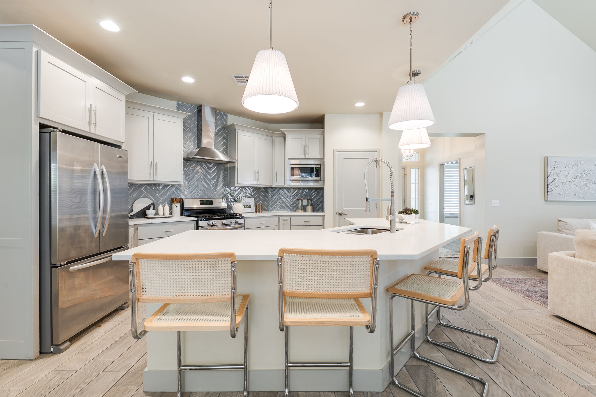 Located in the welcoming Belle Isle neighborhood in Oklahoma City, this charming 2018-built cottage-style sits in a private pocket of the community and offers rare low-maintenance living for North OKC. Even more unique, the home features three bedrooms plus a dedicated office. The curb appeal is charming with beautiful stonework, quaint shutters, manicured flower beds, and a two-car garage. Inside, the open-concept layout flows seamlessly between the kitchen, living, and dining spaces.The kitchen is thoughtfully designed with a large island and bar seating, quartz countertops, abundant cabinet space, a walk-in pantry, and stylish pendant lighting. The dining area includes a custom coffee bar with a beverage fridge and updated light fixture. The living room is filled with natural light and features a cozy fireplace with a mantel and an elegant chandelier. The spacious primary suite offers a large walk-in closet and a well-appointed bathroom with double vanities, a soaking tub, a large tiled shower, and a large linen closet. Two additional guest bedrooms provide great storage and share an adorable bathroom with stylish finishes. Additional highlights include a large laundry room with storage and a sink, plus extra hallway storage. The backyard is a standout with a large covered patio, extended patio space, bar-top seating, and extended-height privacy fencing. Recent updates by the current owner include a storm shelter, privacy fence, new landscaping and sprinkler system, back patio addition, dining room built-in, whole-home surge protector, and a new garage door and motor. Ideally located near The Oak, Nichols Hills Plaza, Classen Curve, and with easy highway access, this home offers both convenience and charm!