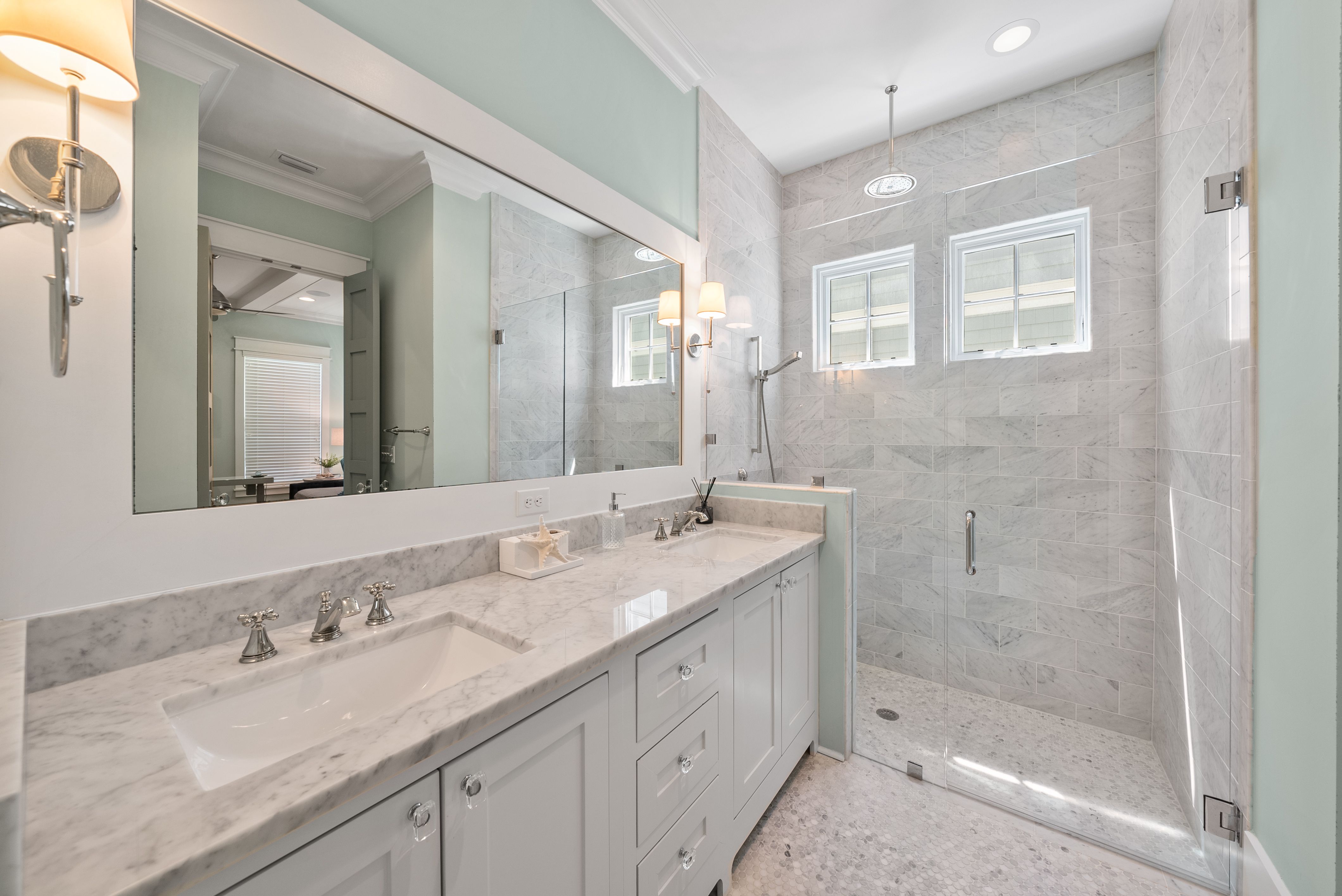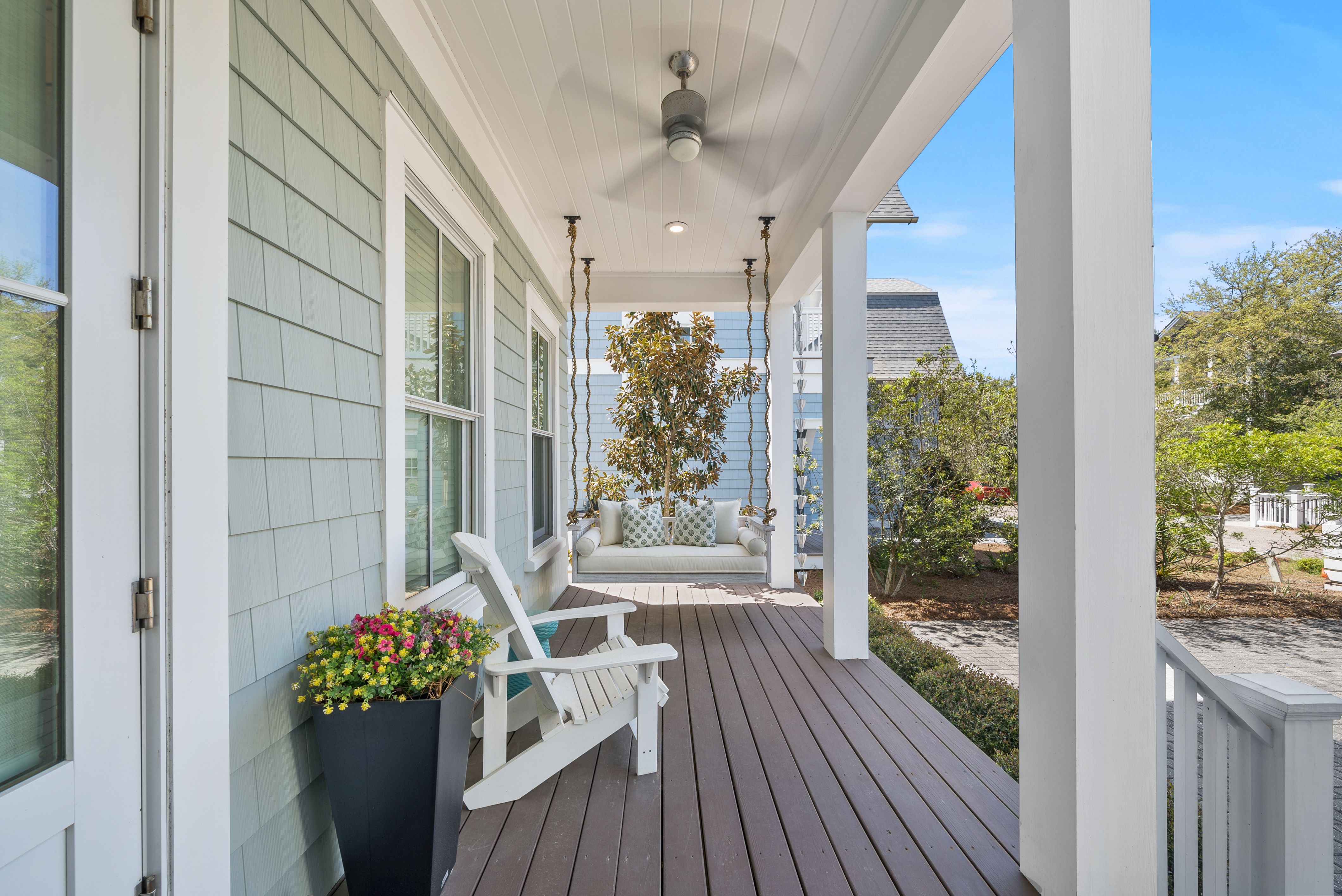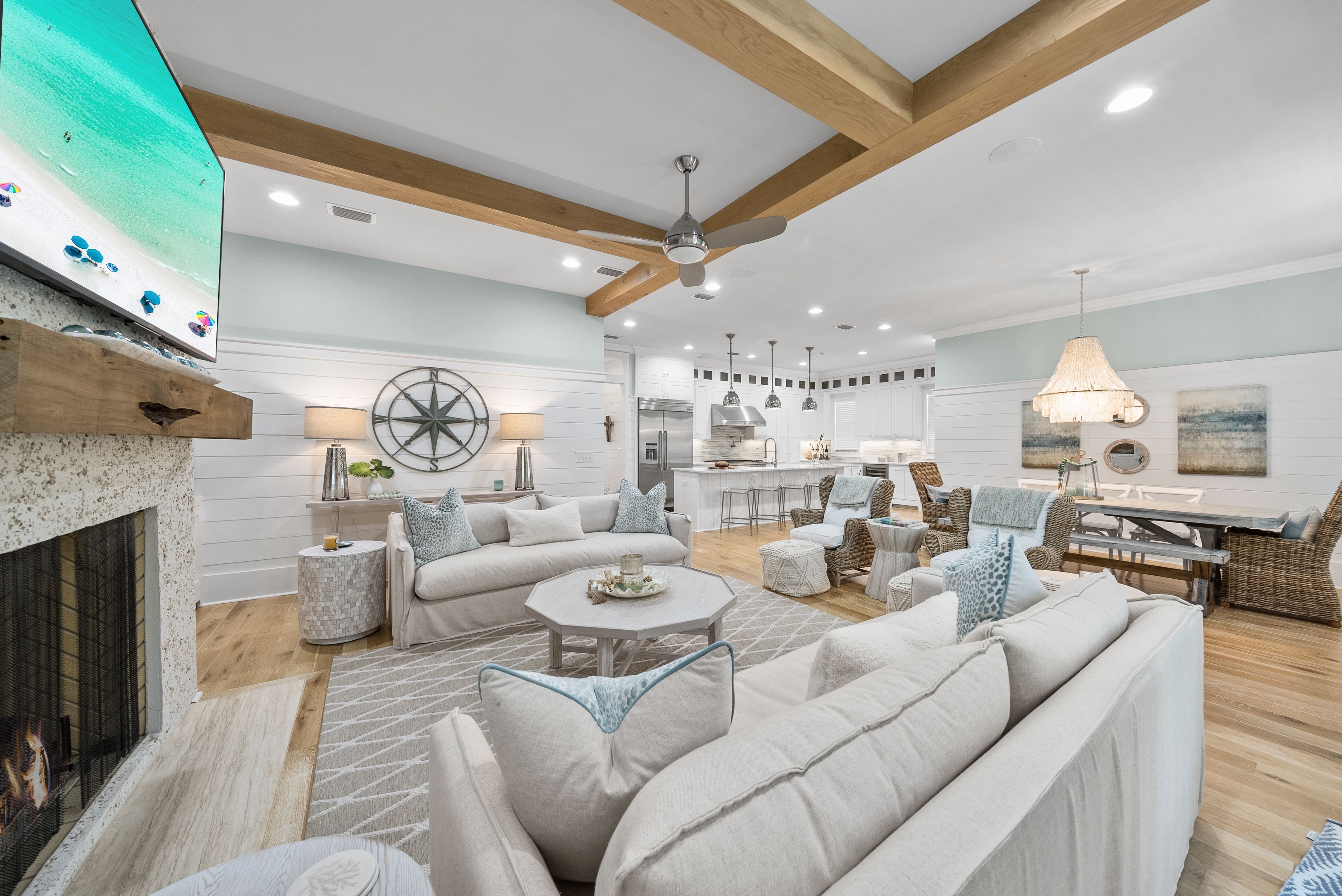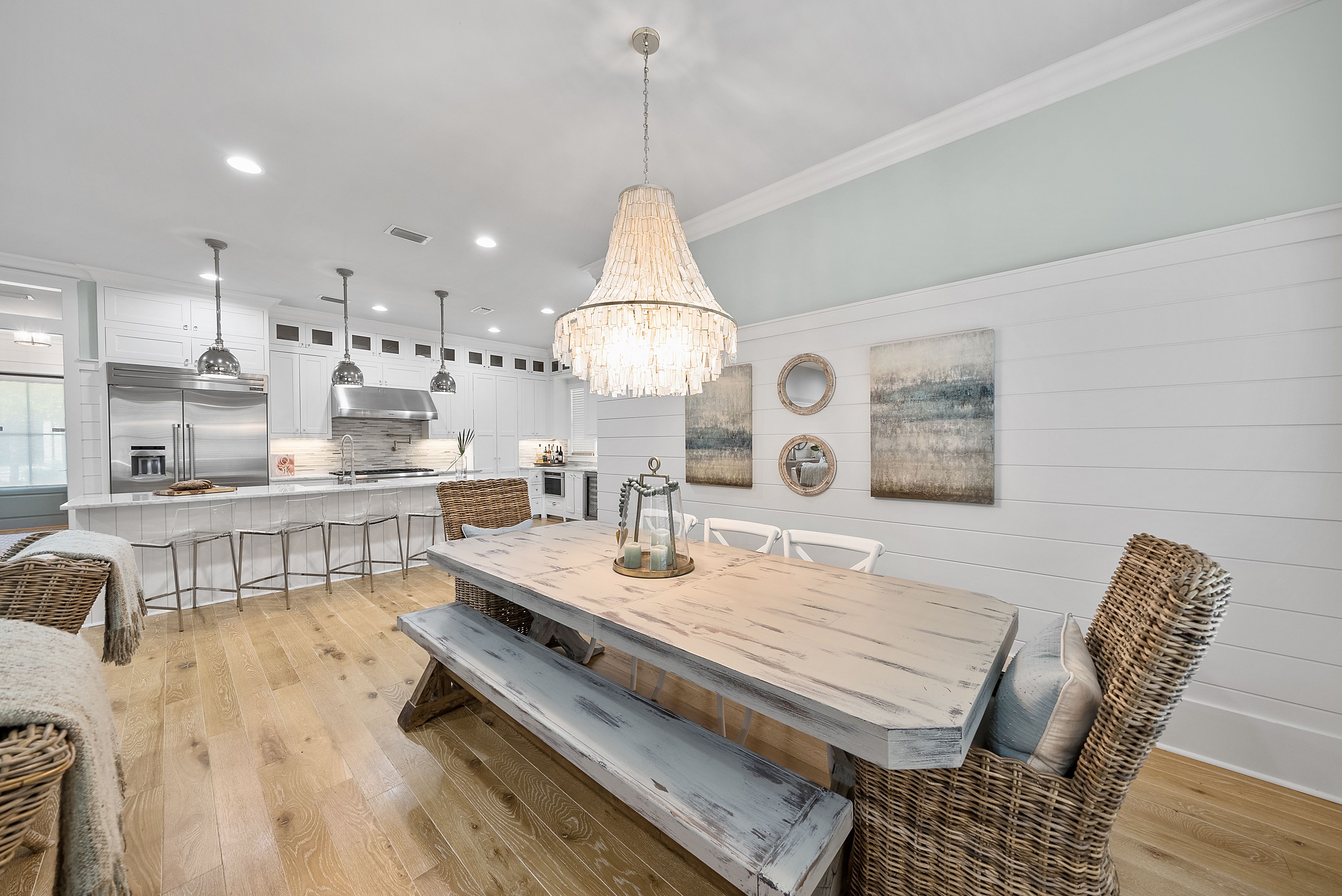 Live every day like you’re on vacation in this stunning five-bedroom, seven-bath beach cottage with a private carriage house and two-car garage, nestled in sought-after WaterSound Bridges. Thoughtfully designed with timeless coastal charm and high-end finishes, this residence offers spacious indoor and outdoor living areas, perfect for relaxation and entertaining. The gourmet kitchen is a chef’s dream, featuring Thermador appliances, gleaming Carrara marble countertops, custom cabinetry, a built-in wine fridge, and an ice maker. A hidden walk-in pantry offers additional storage, while the oversized marble-topped island provides ample space for meal prep and casual dining. The open-concept design flows seamlessly into the inviting living room, where exposed wood beams, a stone fireplace with a reclaimed wood mantel, and built-in shelving create a warm yet sophisticated atmosphere. Designed for seamless indoor-outdoor living, this home features multiple porches at the front and back, ideal for enjoying morning coffee or evening sunsets. A screened porch with an outdoor kitchen, built-in grill, and cozy sitting area extends the entertaining space, while the private splash pool with a tranquil waterfall feature offers the ultimate place to unwind. After a day on the beach, rinse off in the convenient outdoor shower before retreating inside. The primary suite is a luxurious haven, complete with vaulted ceilings, a private balcony, and a spa-like en suite bath. The master bathroom features Carrara marble floors, a freestanding soaking tub, dual vanities, and a glass-enclosed walk-in shower with intricate tilework. Each of the five bedrooms is beautifully appointed, with ensuite baths, ample natural light, and refined coastal design elements. The private carriage house offers independent guest accommodations, featuring a full kitchen, living area, bedroom, and private balcony, making it perfect for visiting guests, extended family, or rental opportunities. This home is equipped with a whole-home Generac generator, ensuring reliability year-round. Located just minutes from the pristine white-sand beaches of 30A, where days can be spent surfing, sunbathing, or enjoying twilight bonfires, this home captures the essence of luxury coastal living. Whether you’re seeking a primary residence, vacation home, or investment property, this WaterSound Bridges retreat is an extraordinary opportunity to own a piece of 30A paradise.