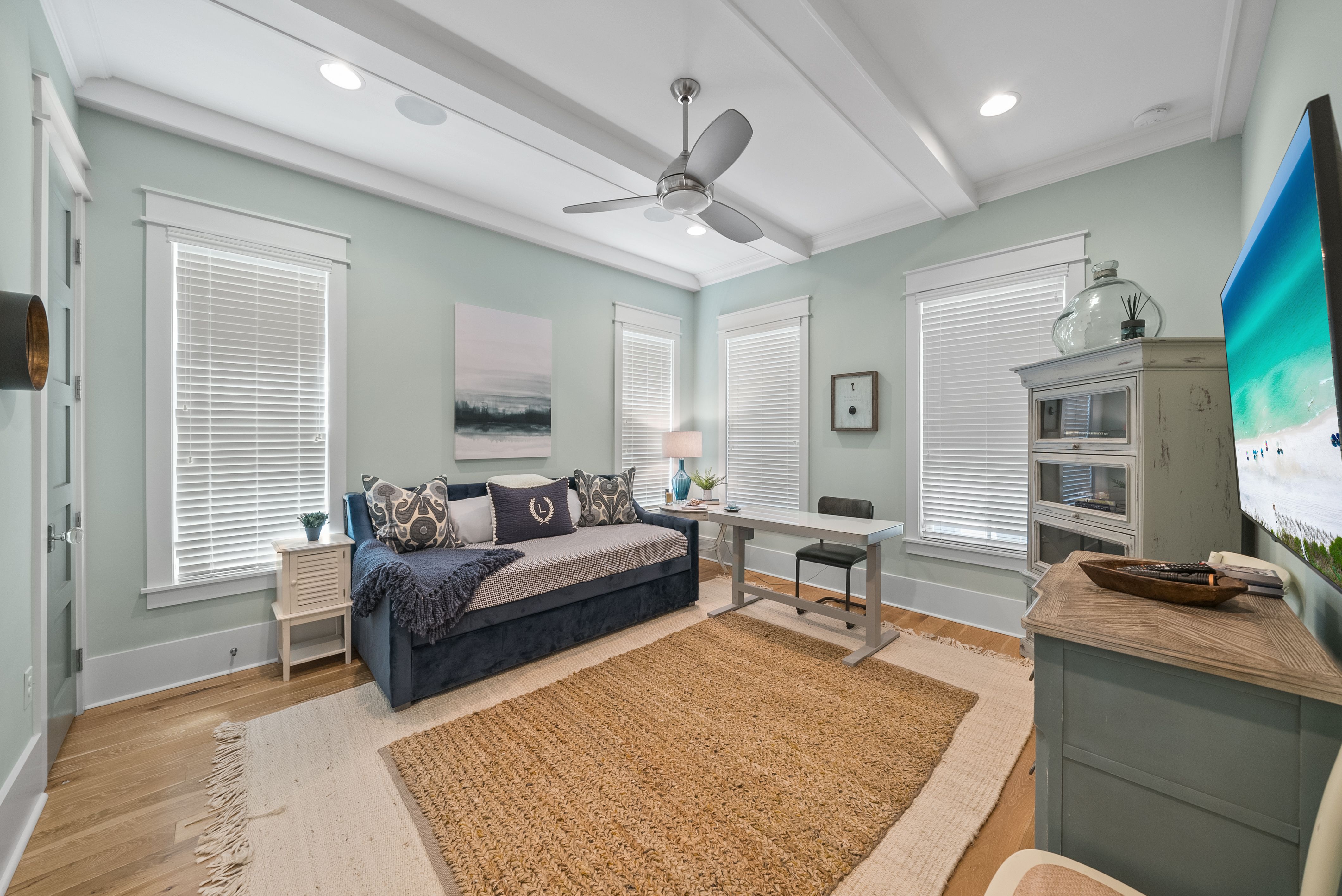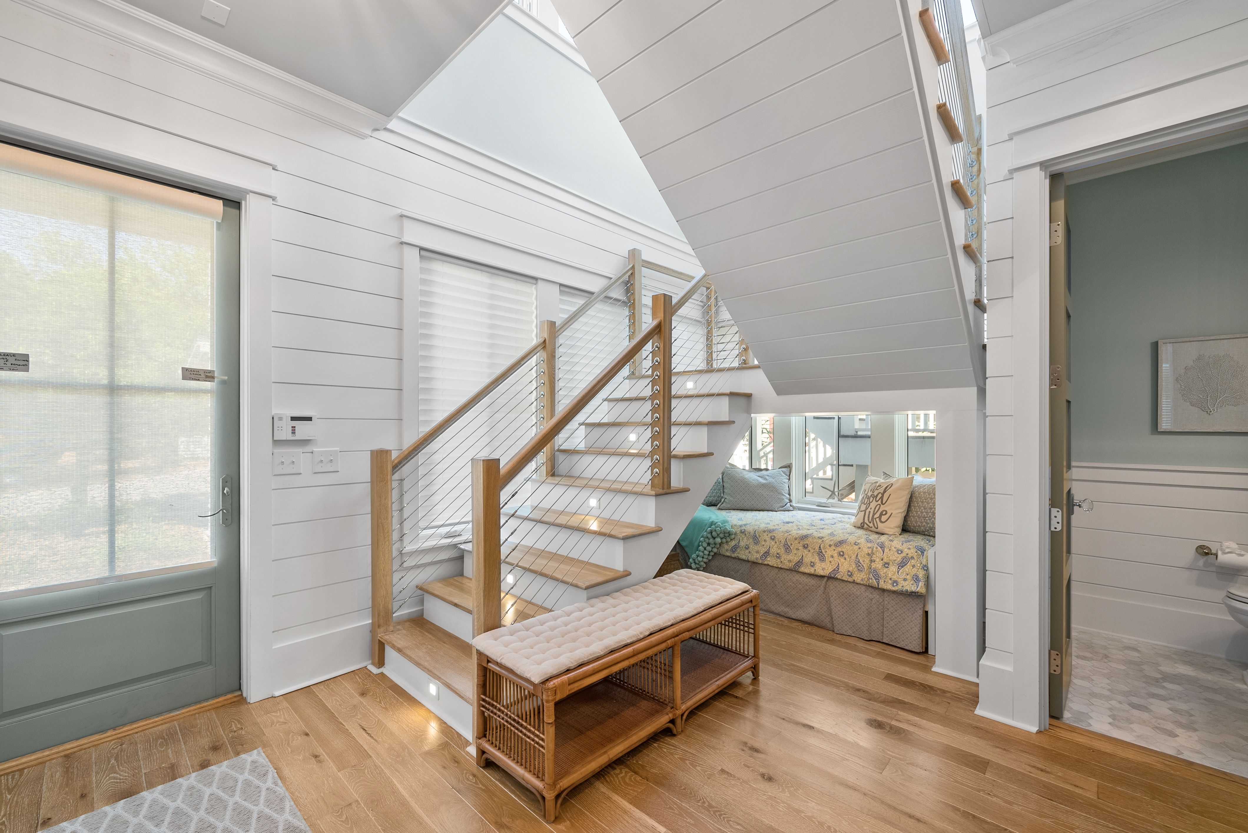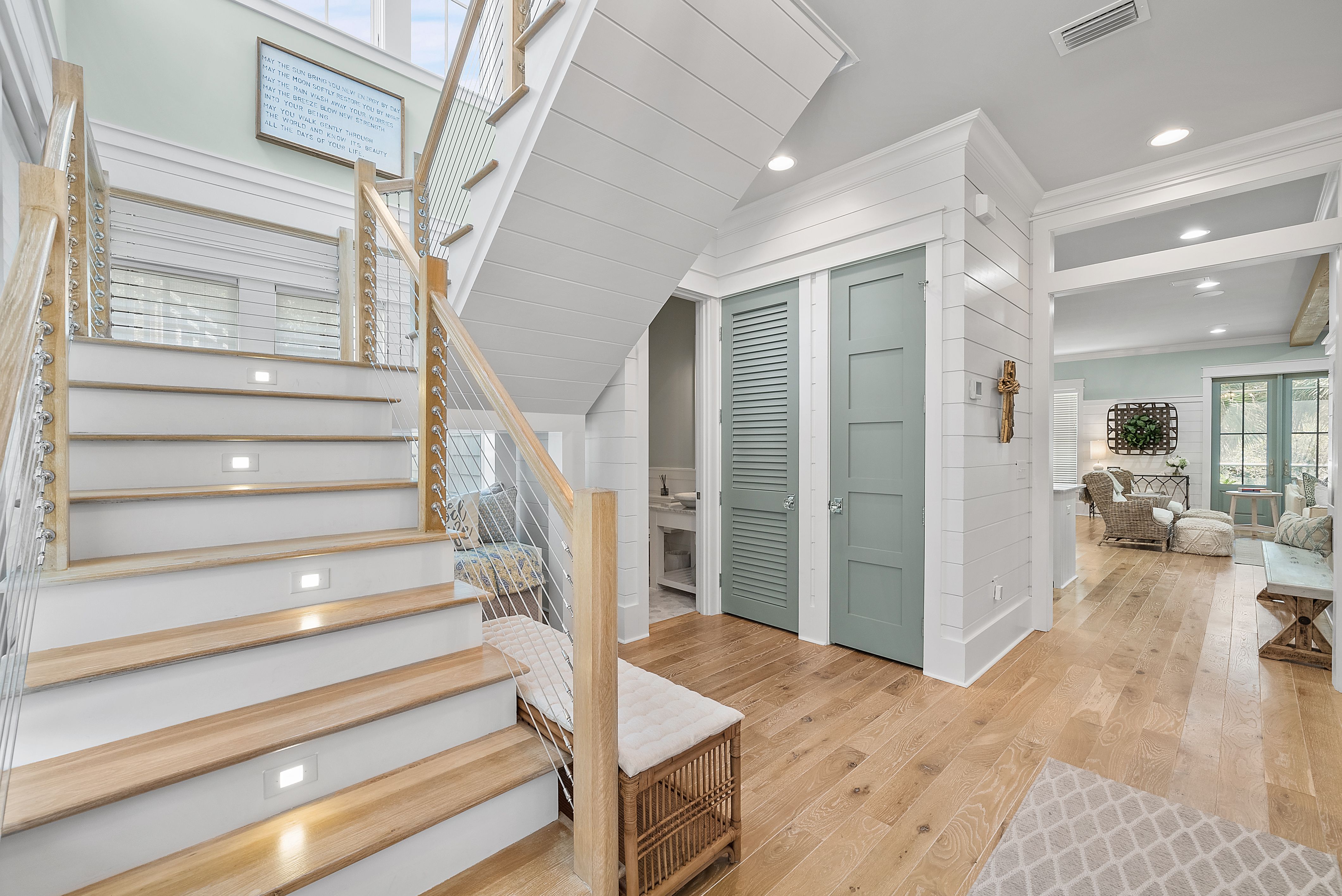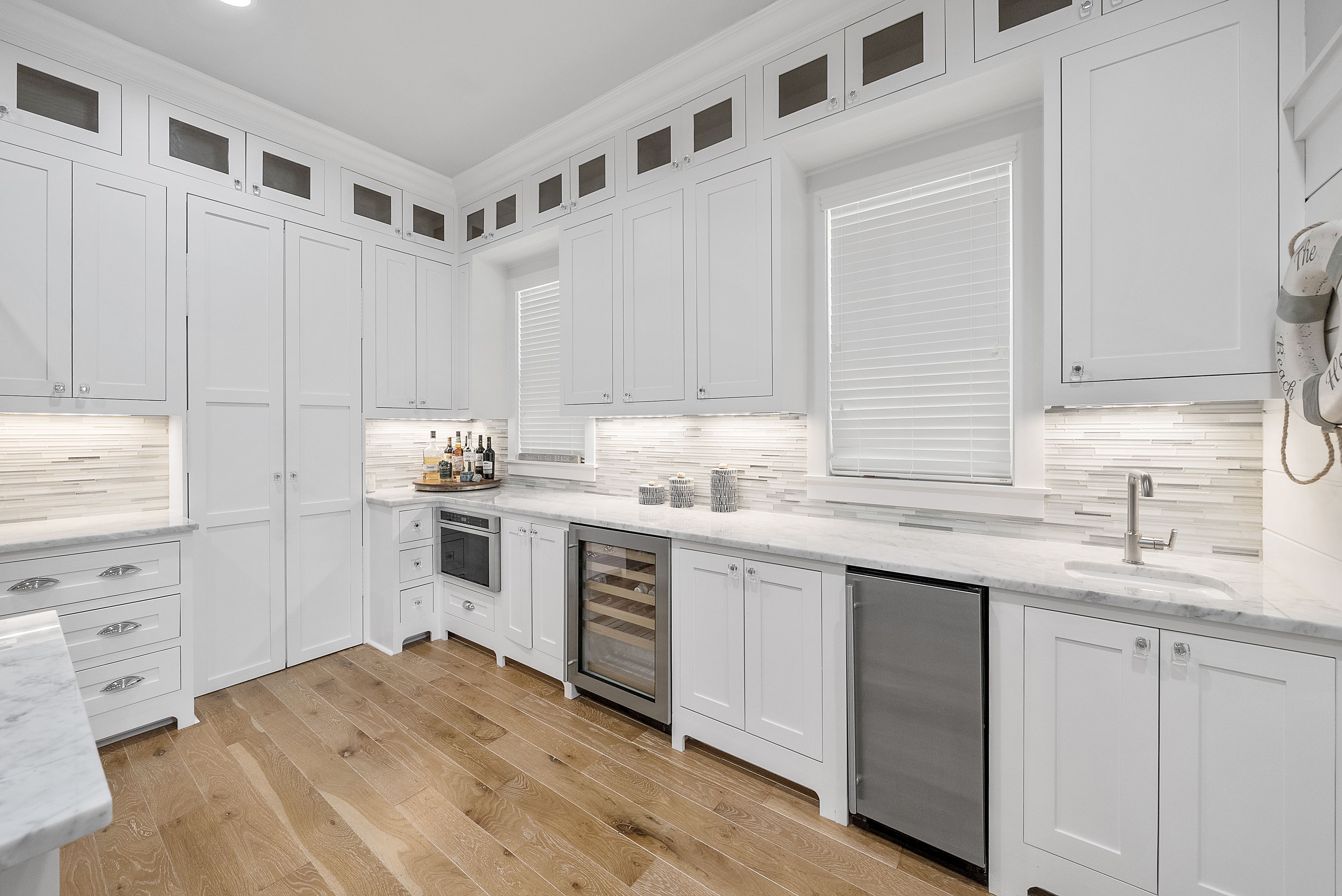 Live every day like you’re on vacation in this stunning five-bedroom, seven-bath beach cottage with a private carriage house and two-car garage, nestled in sought-after WaterSound Bridges. Thoughtfully designed with timeless coastal charm and high-end finishes, this residence offers spacious indoor and outdoor living areas, perfect for relaxation and entertaining. The gourmet kitchen is a chef’s dream, featuring Thermador appliances, gleaming Carrara marble countertops, custom cabinetry, a built-in wine fridge, and an ice maker. A hidden walk-in pantry offers additional storage, while the oversized marble-topped island provides ample space for meal prep and casual dining. The open-concept design flows seamlessly into the inviting living room, where exposed wood beams, a stone fireplace with a reclaimed wood mantel, and built-in shelving create a warm yet sophisticated atmosphere. Designed for seamless indoor-outdoor living, this home features multiple porches at the front and back, ideal for enjoying morning coffee or evening sunsets. A screened porch with an outdoor kitchen, built-in grill, and cozy sitting area extends the entertaining space, while the private splash pool with a tranquil waterfall feature offers the ultimate place to unwind. After a day on the beach, rinse off in the convenient outdoor shower before retreating inside. The primary suite is a luxurious haven, complete with vaulted ceilings, a private balcony, and a spa-like en suite bath. The master bathroom features Carrara marble floors, a freestanding soaking tub, dual vanities, and a glass-enclosed walk-in shower with intricate tilework. Each of the five bedrooms is beautifully appointed, with ensuite baths, ample natural light, and refined coastal design elements. The private carriage house offers independent guest accommodations, featuring a full kitchen, living area, bedroom, and private balcony, making it perfect for visiting guests, extended family, or rental opportunities. This home is equipped with a whole-home Generac generator, ensuring reliability year-round. Located just minutes from the pristine white-sand beaches of 30A, where days can be spent surfing, sunbathing, or enjoying twilight bonfires, this home captures the essence of luxury coastal living. Whether you’re seeking a primary residence, vacation home, or investment property, this WaterSound Bridges retreat is an extraordinary opportunity to own a piece of 30A paradise.