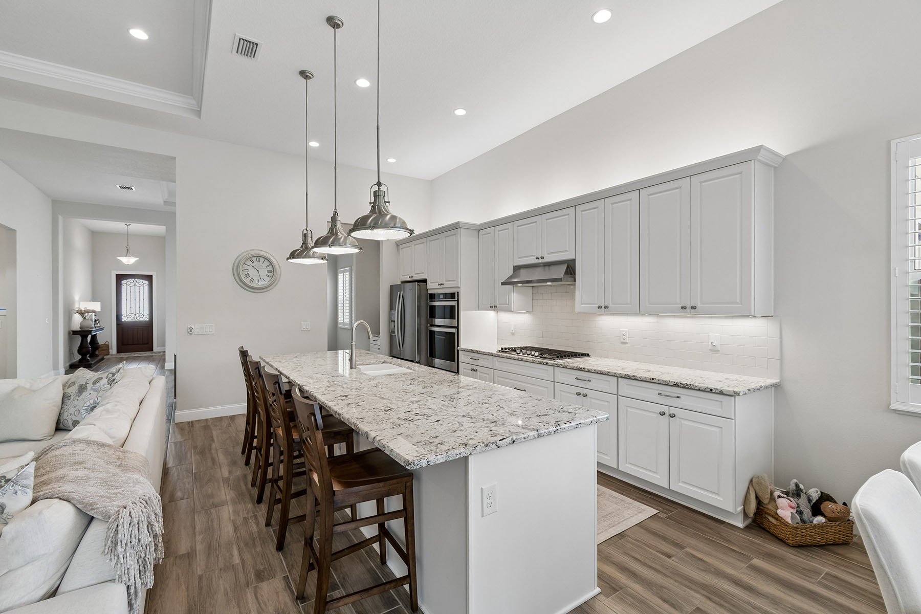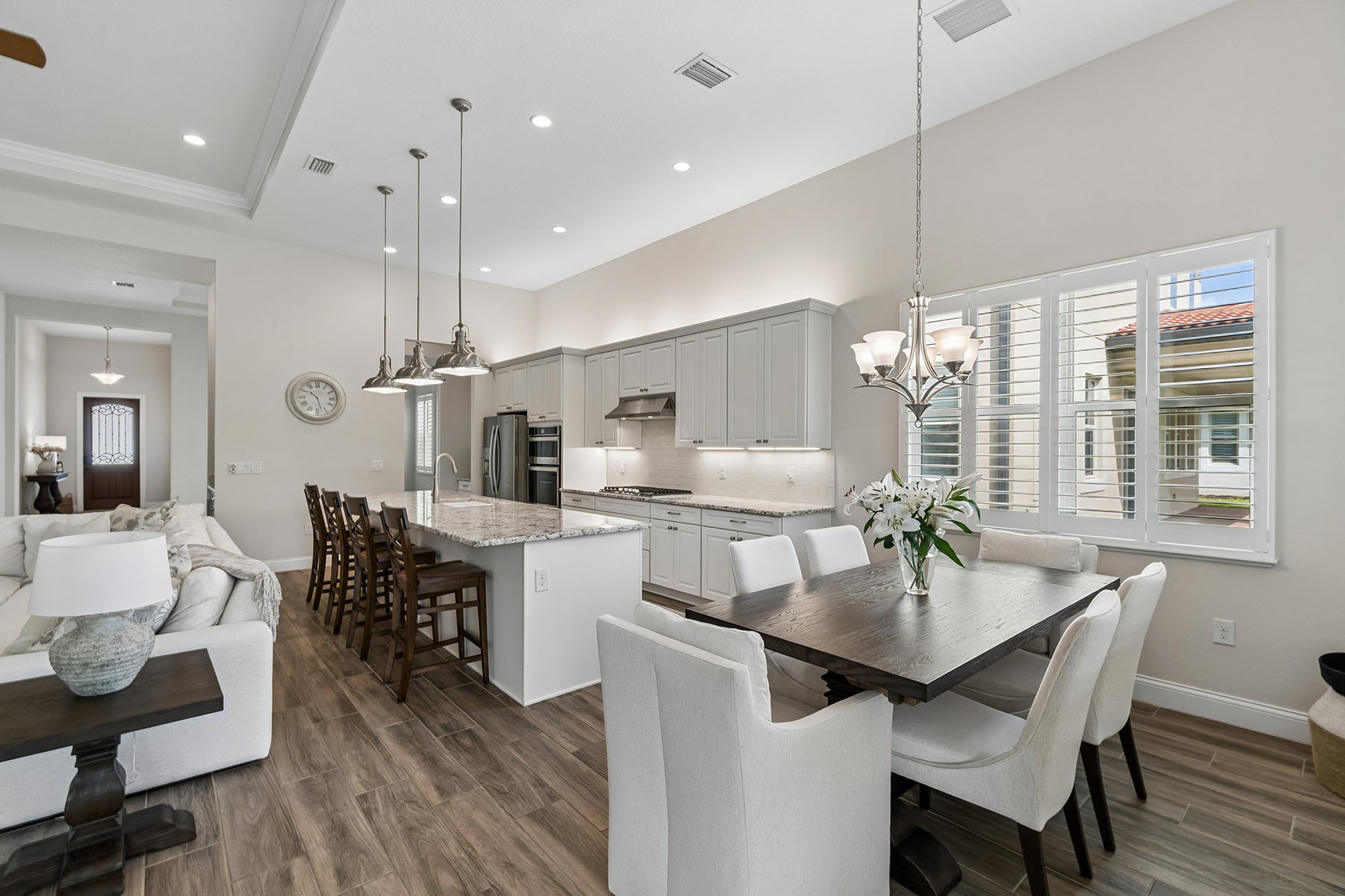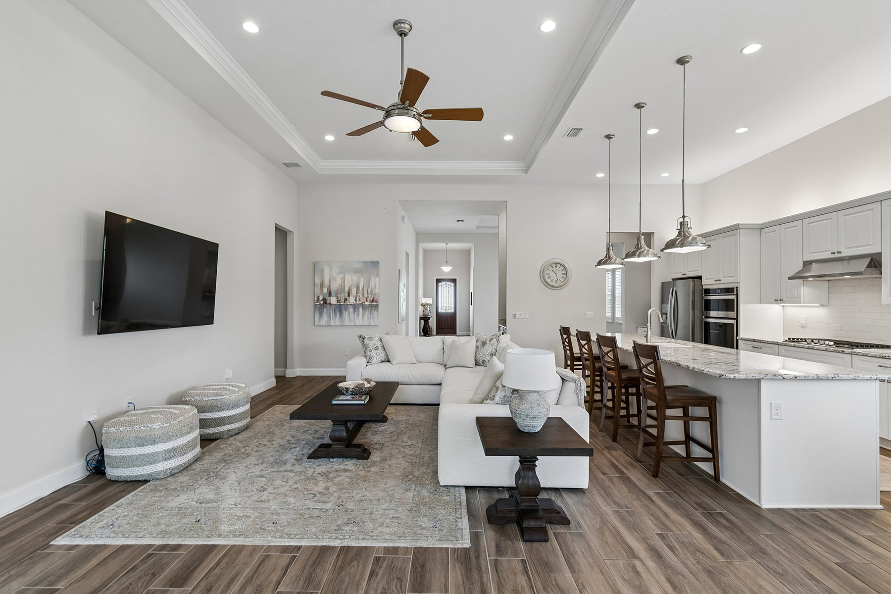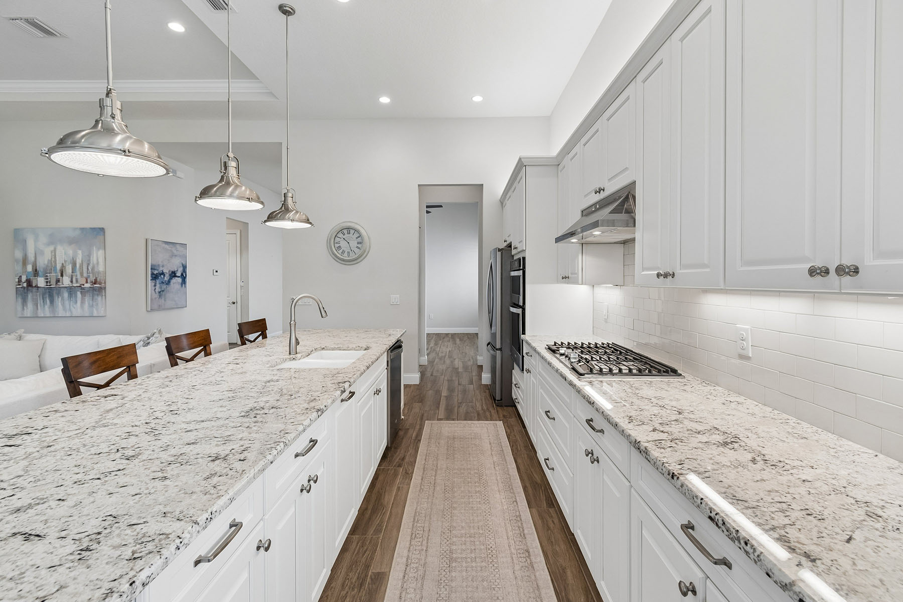 Discover refined elegance and resort-inspired living in this exquisite Toll Brothers residence, nestled within the prestigious guard-gated enclave of Royal Cypress Preserve. Perfectly positioned just moments from Walt Disney World and Orlando's premier shopping, dining and entertainment, this exceptional single-story home offers an unparalleled blend of sophistication, comfort, and convenience. From the moment you enter, you are greeted by soaring 12-foot ceilings, rich wood-look porcelain tile flooring, bespoke lighting and classic plantation shutters; each detail is thoughtfully curated to create a timeless and inviting ambiance. The open-concept design flows effortlessly, ideal for both everyday living and elegant entertainment. At the heart of the home, the gourmet chef's kitchen is a true showpiece, featuring an expansive granite island, premium stainless-steel appliances, under-cabinet lighting and finely crafted upgraded cabinetry, designed to inspire culinary creativity and effortless gatherings. The spacious great room transitions seamlessly to an exceptional outdoor retreat. The screened lanai is a private sanctuary, complete with a custom summer kitchen, sleek granite countertops, artisan grill, and beverage refrigerator, perfect for al fresco dining and entertaining, all enhanced by the rare privacy of no rear neighbors. The luxurious primary suite offers a serene escape, boasting dual walk-in closets and a spa-inspired bath with double vanities and an oversized walk-in shower. Two additional en-suite bedrooms provide refined comfort and privacy for family and guests alike. As a resident of Royal Cypress Preserve, enjoy exclusive access to world-class amenities including a private lakefront clubhouse, resort-style swimming pool, state-of-the-art fitness center, dog park and a private boat ramp to South Lake, offering a lifestyle of leisure and distinction. Zoned for top-rated schools and ideally located near Orlando's most sought-after attractions, this remarkable home embodies the perfect harmony of luxury, privacy and elevated living.