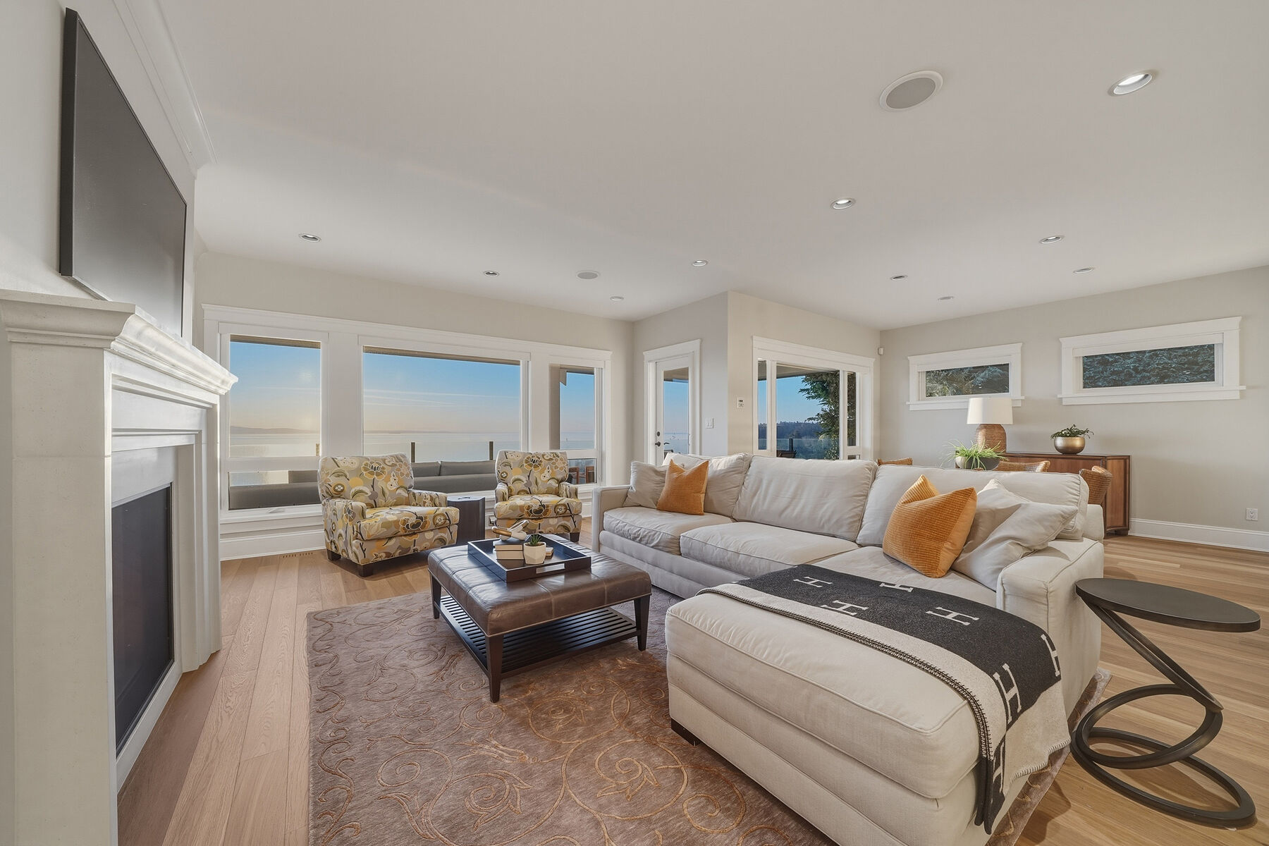Exceptional oceanfront home offering over 6,600 square feet of quality West Coast design. Nearly $1M invested in renovations and landscaping has created a totally private, quiet retreat with panoramic ocean views toward Mount. Baker and the San Juan Islands. The main level provides ideal one-level living with the primary suite, office/den, open kitchen, family, and breakfast areas, living, dining, plus additional bedrooms. The gourmet kitchen features high-end appliances, large prep areas and butler's pantry, with access to a oceanside deck with covered dining area and built-in heaters. The lower level includes a beautiful home theatre with wet bar, games/family room, gym with nicely separated guest spaces. Other highlights include a wine cellar, custom woodwork/built-ins, and a three-car garage with lift option. Fully fenced, professionally landscaped and beautifully maintained—an outstanding combination of privacy, space, and coastal living just minutes from Cadboro Bay Beach and Village, UVic and excellent schools!