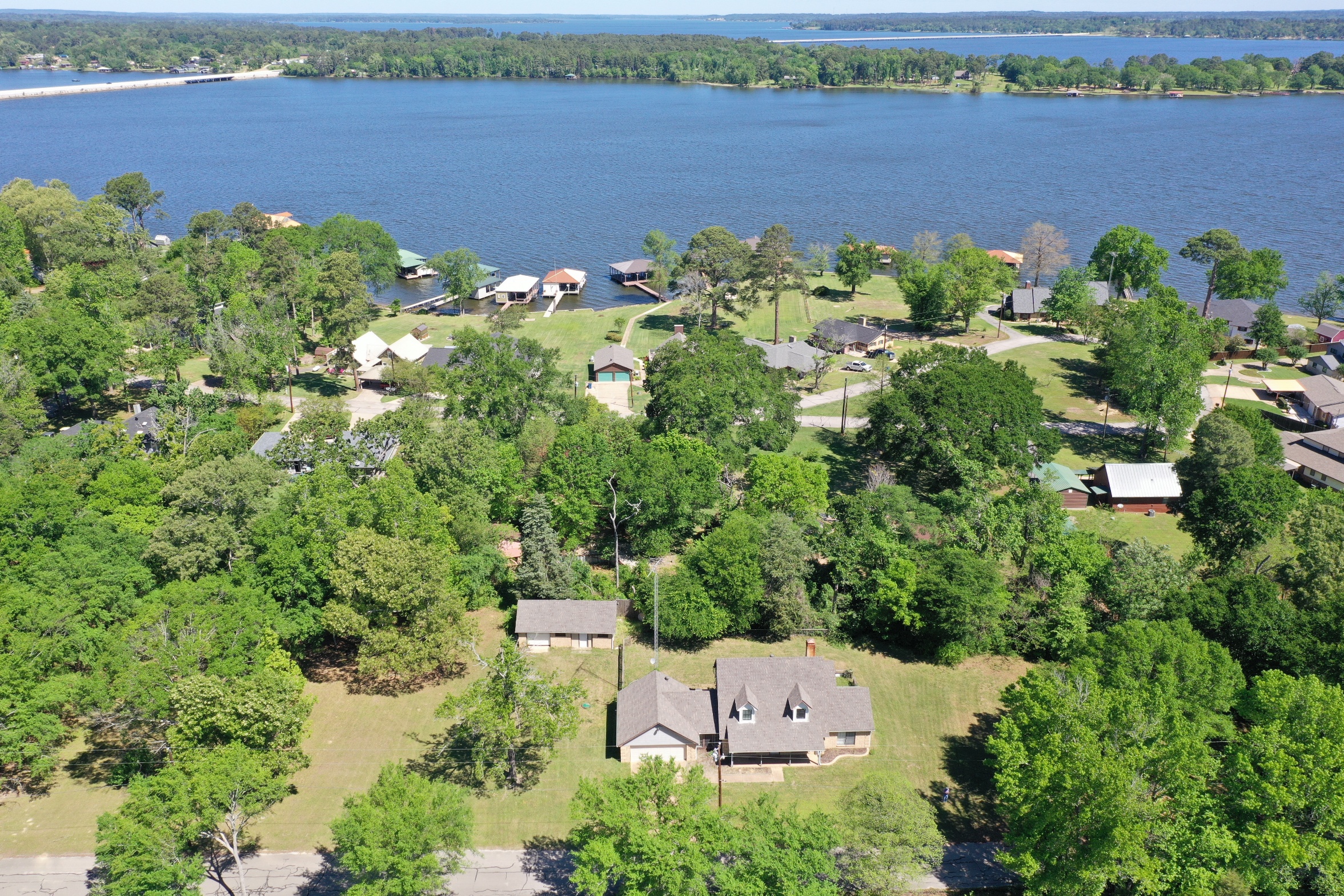 In beautiful lake community On Lake Palestine. Spacious 1.17 acres ,2417 sq. Ft. Brick 2 story ,3 bdrm, 2 1/2 bath with large, detached workshop. Comfortable floor plan with spacious kitchen dining room combination. Large sunroom off the kitchen and office/library off the master bdrm. large laundry with lots of storage. upstairs 2 bedroom with Jack and Jill bath. Walking distance to the Subdivision boat ramp. Frankston ISD. Needs some TLC!
