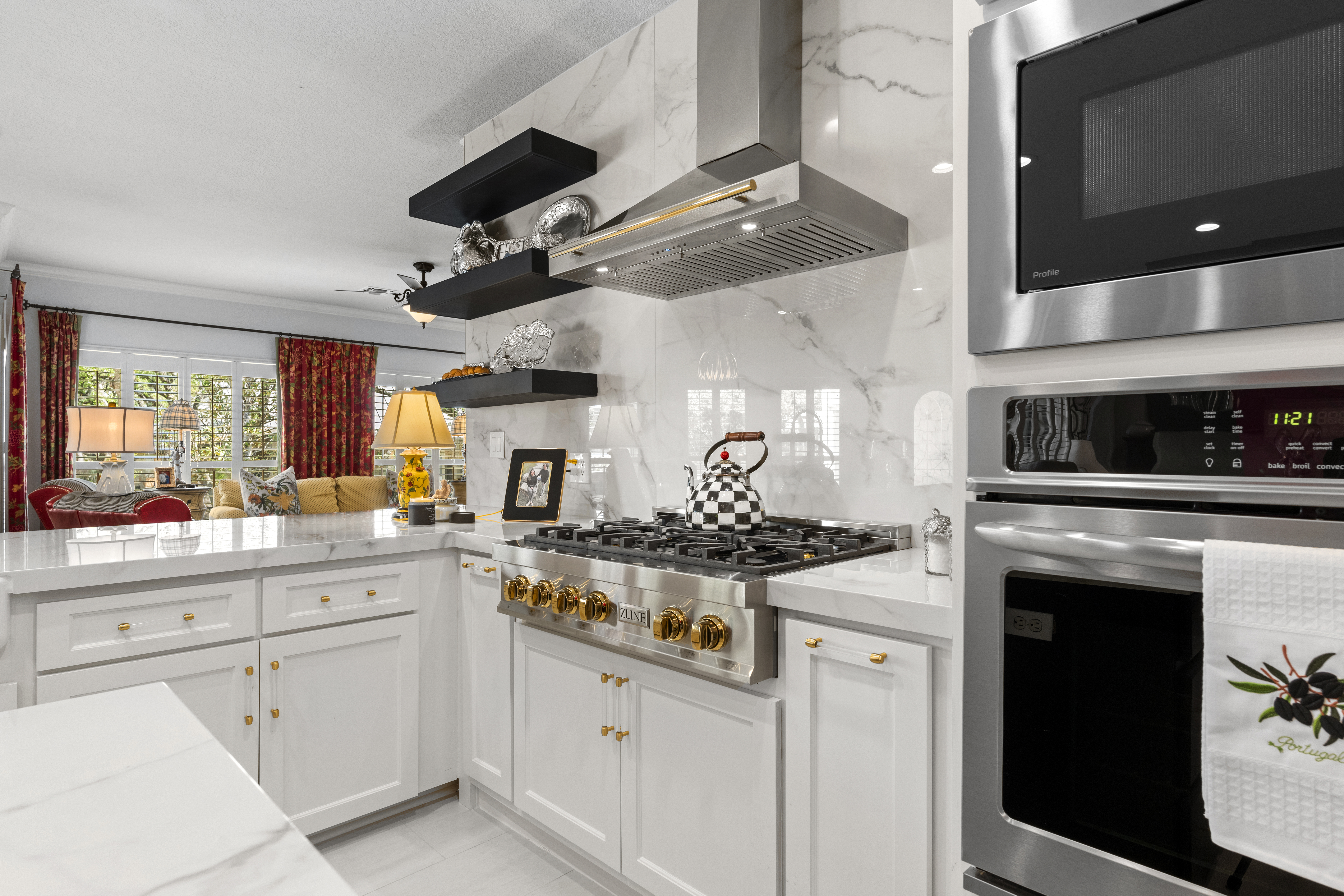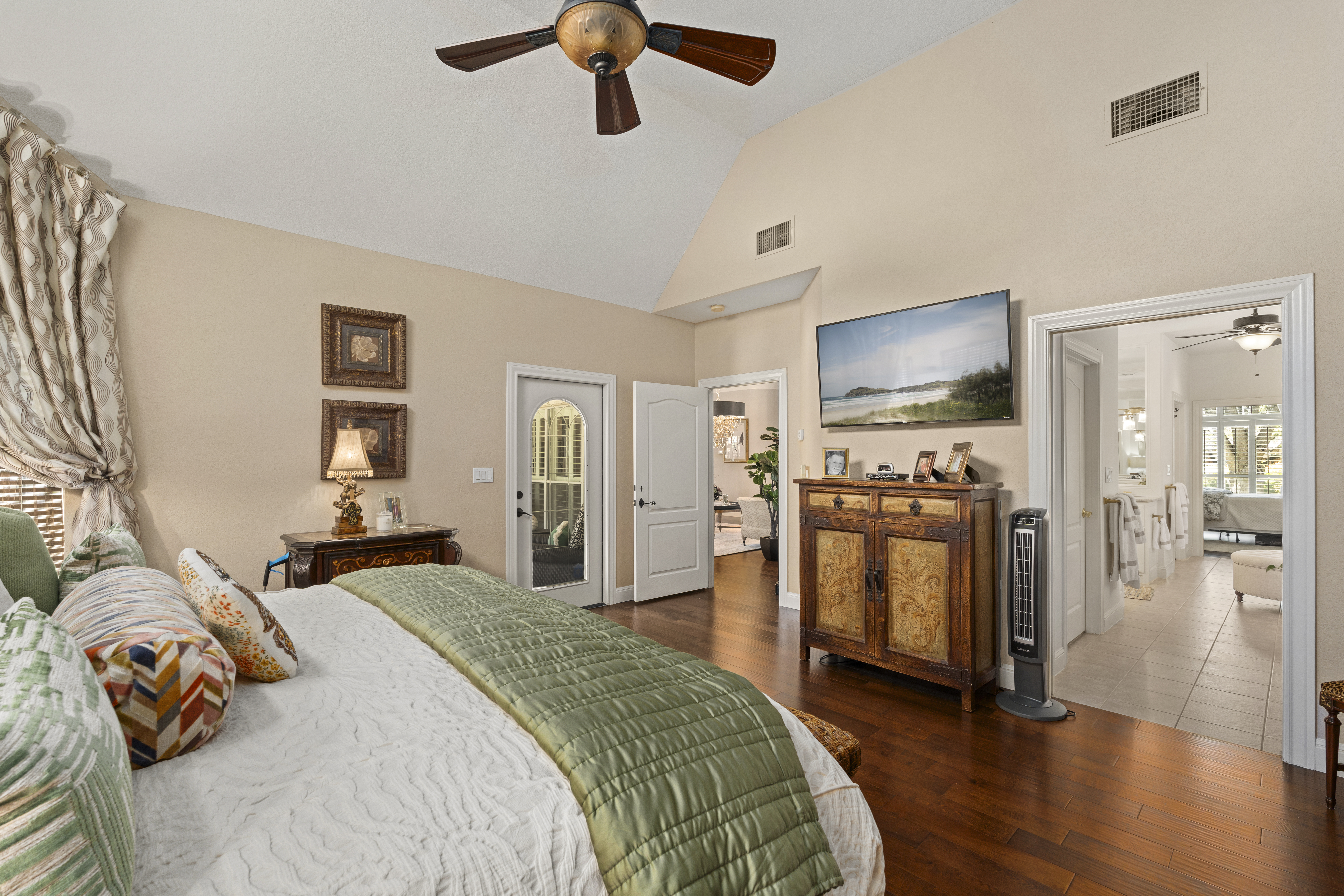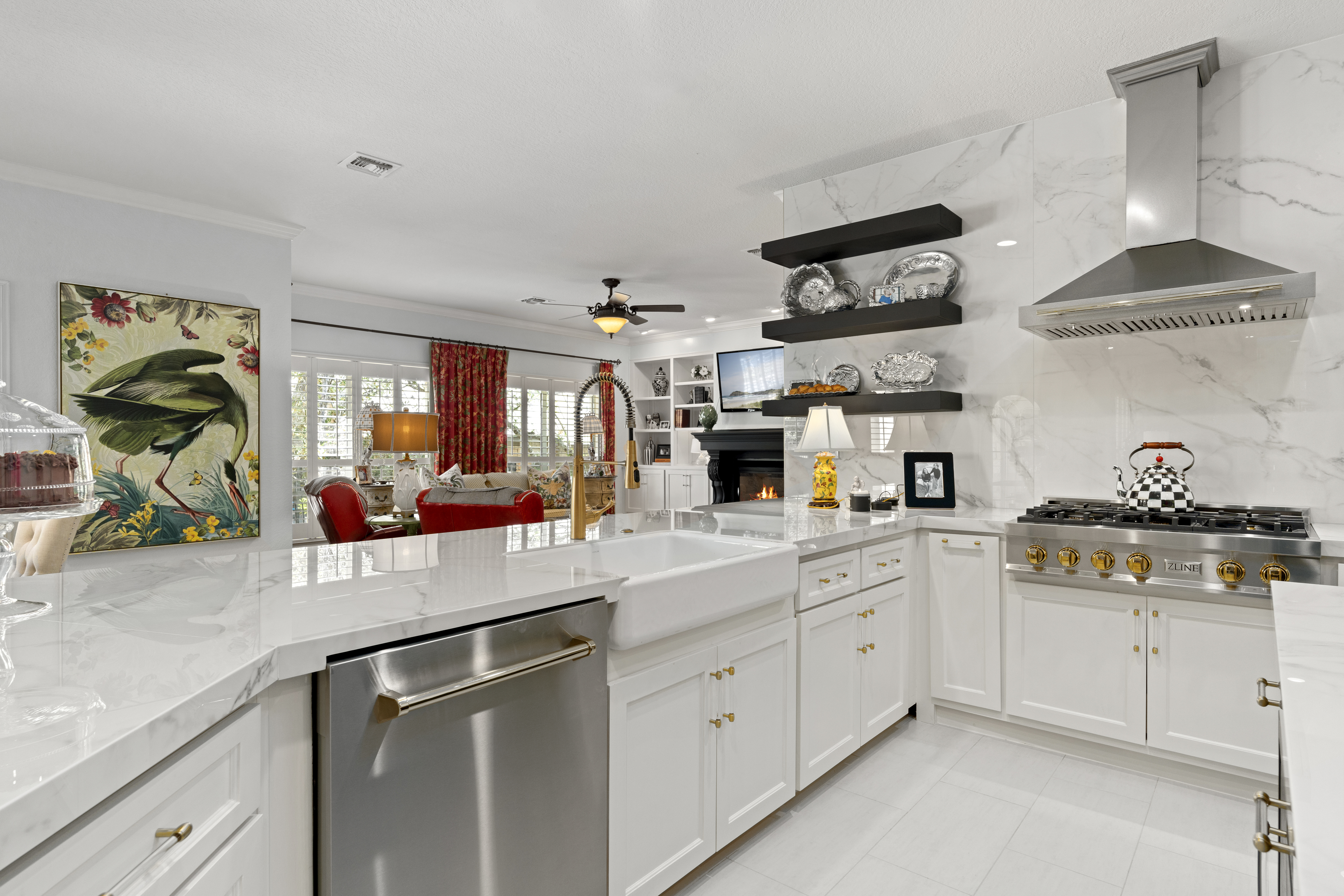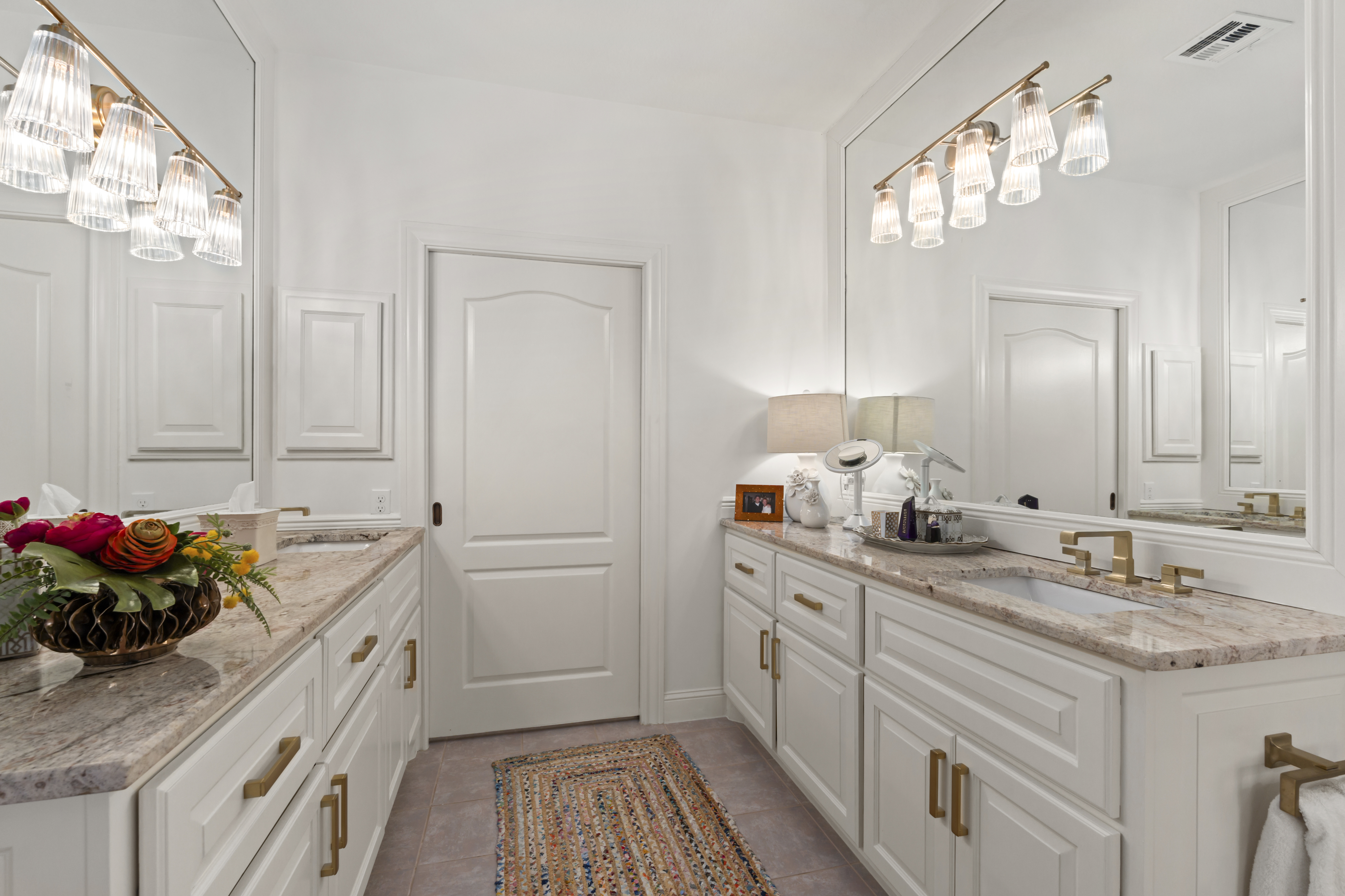 Set on an oversized cul-de-sac lot within the guard-gated Emerald Forest community, this thoughtfully updated single-story offers privacy, functionality, and elegance. A covered front porch provides a welcoming entry with majestic views. Inside, beautifully upgraded elements accent the home. The designer kitchen anchors the main living spaces and opens to breakfast area and family room, where high ceilings, natural light, and a fireplace create a warm, inviting atmosphere. Formal living and dining provide space for all. Plantation shutters are installed throughout. The primary suite offers outdoor access to backyard offering a quiet retreat. Secondary room connected to the primary and complete with a spacious closet-provides flexibility for a 3rd bedroom, private office, exercise, or flex room. A well-sized laundry room offers additional storage with extensive cabinetry, sink, and space for additional refrigeration. Outdoor living is equally considered, with a covered patio and an expansive flagstone terrace featuring a built-in fireplace, ideal for both entertaining and everyday enjoyment. Mature and lush landscaping and a fully fenced yard enhance the property and contributes to a quiet, established feel. The home is a true single story with no interior steps and subtle accessibility features in place. Emerald Forest is one of North San Antonio's most established gated communities, with wonderful amenities such as pool, tennis, walking trails, all with guarded access and entry from both Bulverde Road and Loop 1604.