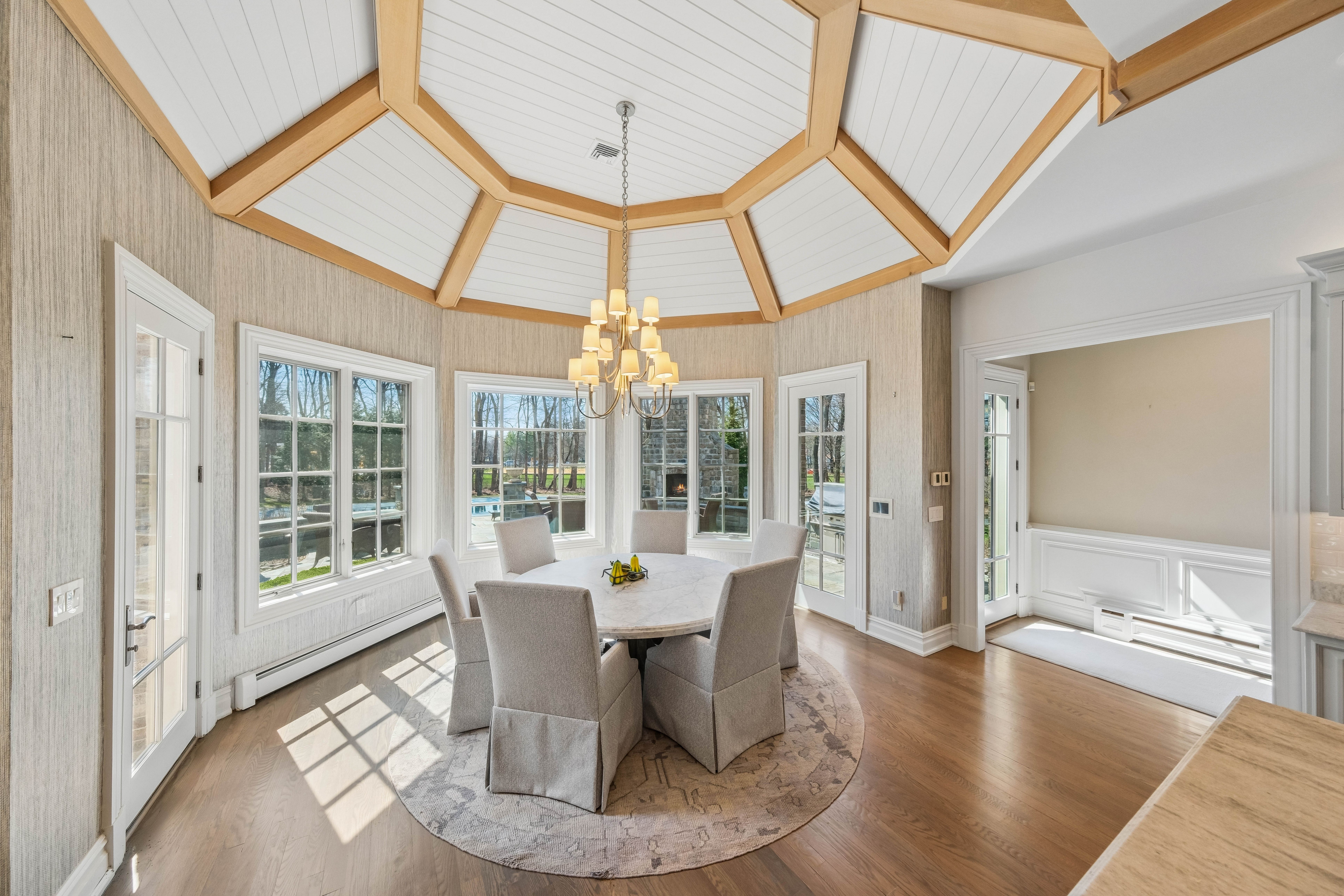 This exceptional estate is on a prime Saddle River location, offering a refined lifestyle where luxury & convenience meet with quiet confidence. A circular drive leads to a stately entrance and a grand 2 story foyer, highlighted by a sweeping staircase and carefully curated details. * * THE MAIN LEVEL is thoughtfully designed for both elegant entertaining and everyday living. Formal spaces transition seamlessly into a richly appointed library w/fireplace, while the dining room flows effortlessly into the kitchen. The great room is filled w/natural light and anchored by a fireplace, creating a warm yet elevated setting. The kitchen is beautifully outfitted with a large center island, custom cabinetry, Hestan appliances & a sunlit breakfast gallery overlooking the grounds. A guest bedroom, full bath, powder room, laundry room, second staircase, & access to a 4 car garage complete this level. * * THE 2nd FL offers a spacious primary suite w/a private sitting area, 2 walk in closets, & a well appointed bath featuring a double vanity, soaking tub, & separate shower. 4 additional bedrooms, each with ensuite baths and walk in closets, are thoughtfully arranged w/an additional staircase for convenience. * * THE LOWER LEVEL presents Golf swing suite w/lg glass gallery, expansive space for recreation, media, fitness along w/a full bath & generous storage. * * OUTDOOR LIVING is equally impressive w/custom patios, a heated pool, spa, and outdoor kitchen designed for your lifestyle.