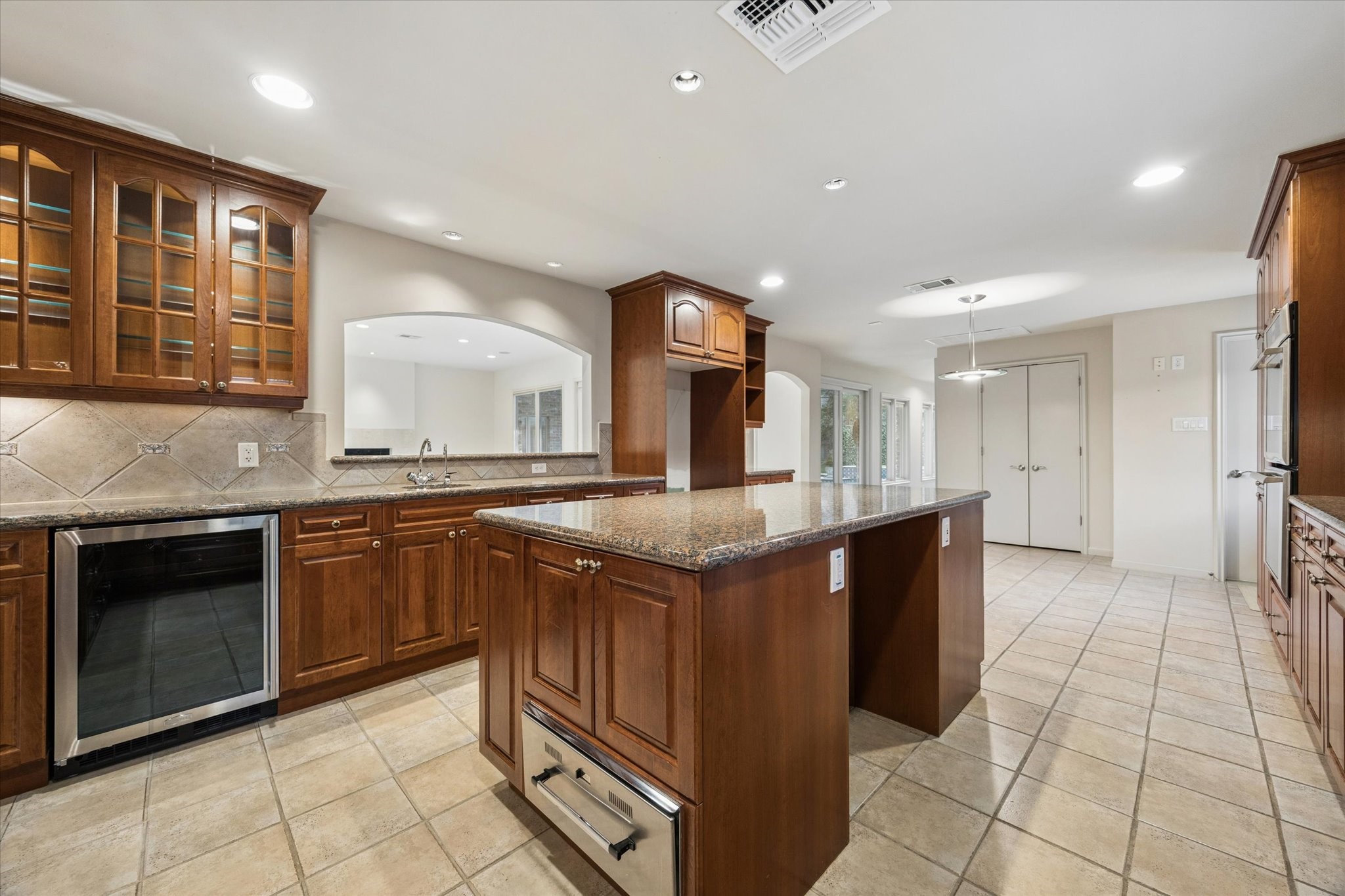 Beautifully updated single-story traditional style home in the heart of Tanglewood, located north of Woodway on a quiet, tree-lined street. Per HCAD, the home offers approximately 4,070 square feet and sits on a generous 14,260-square-foot lot. A formal entry opens to expansive living and dining areas that flow into a spacious family room with pool views, patio access, and an open connection to the kitchen—ideal for entertaining. The kitchen features stainless steel appliances and rich cherry cabinetry. The private primary suite includes a marble-clad bath and ample closet space, while all secondary bedrooms offer en suite bath access. Recent improvements include double-pane windows, a 2025 roof, HVAC updates, and a 22kW Generac generator. A pristine circular drive provides abundant parking. Conveniently located with easy access to I-10 and 610.