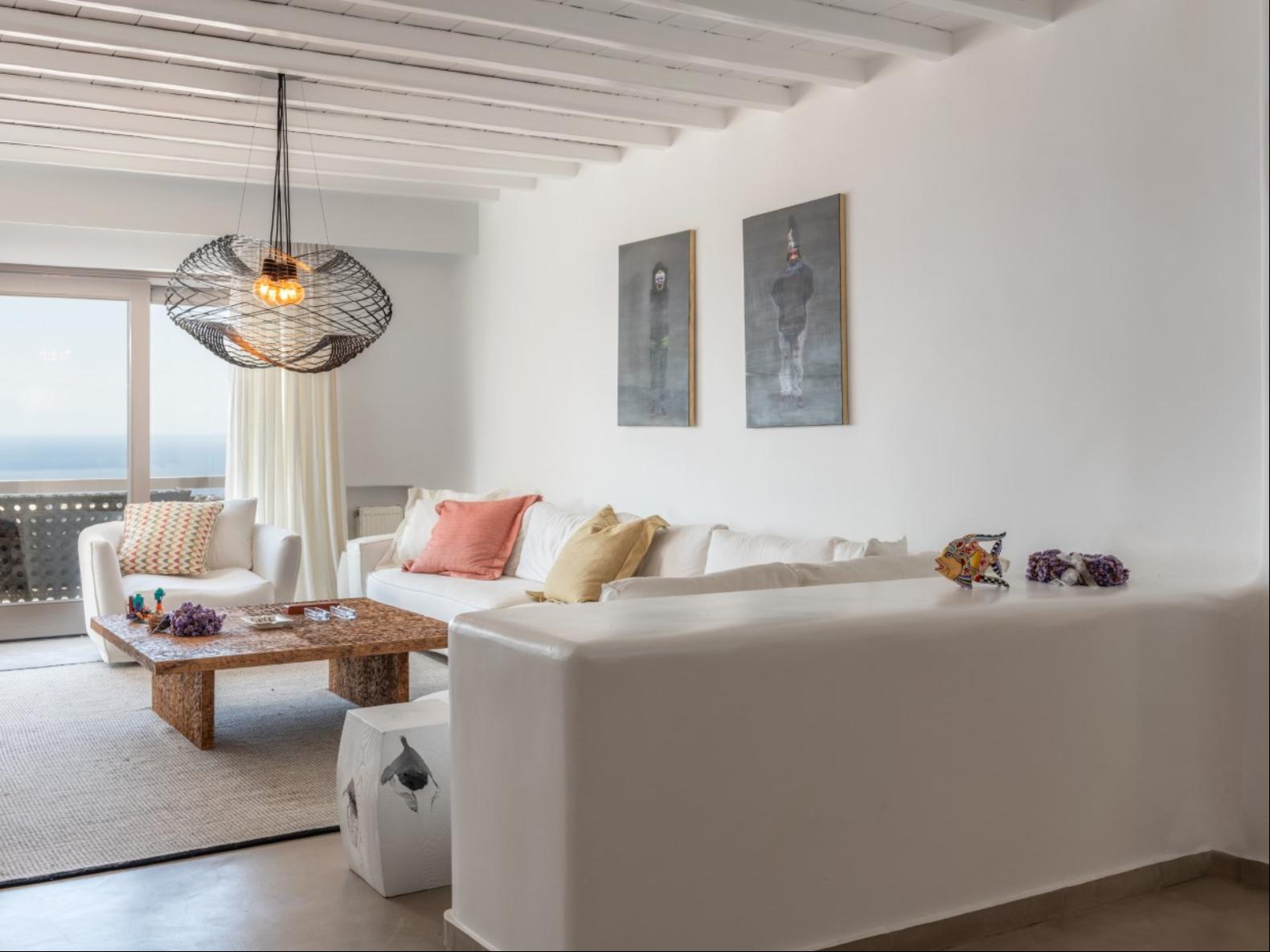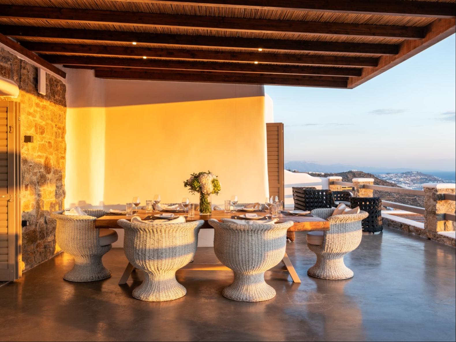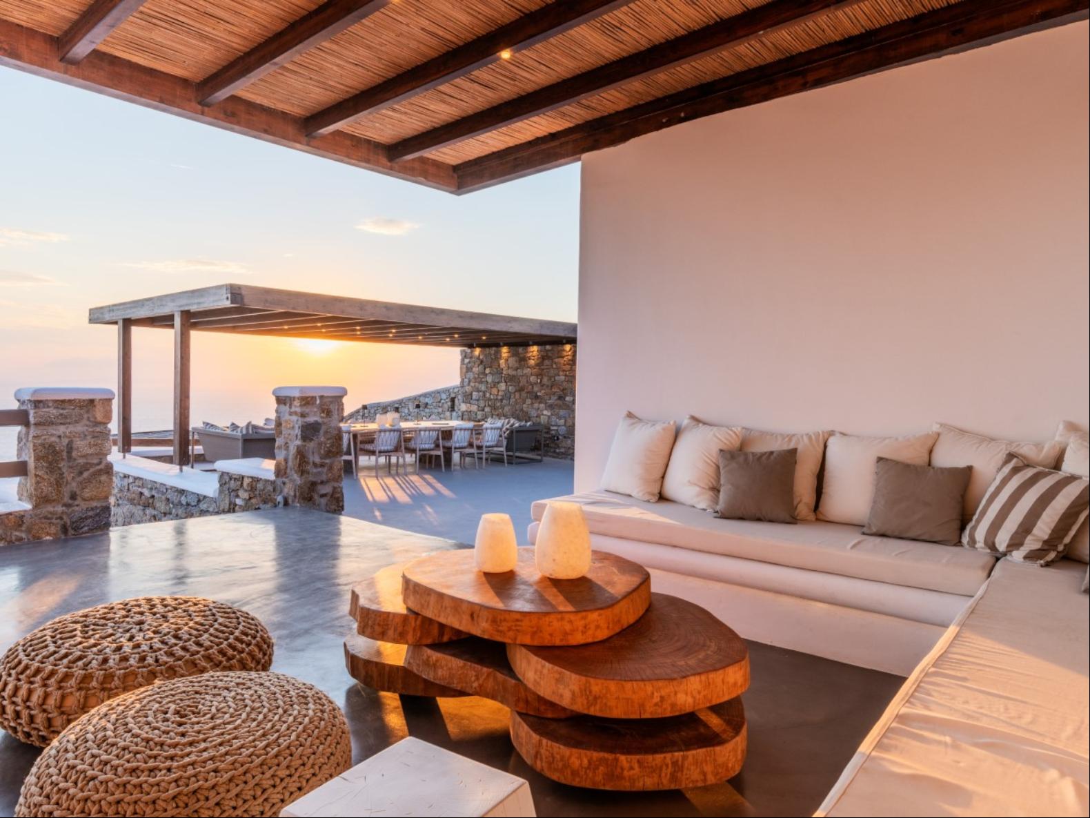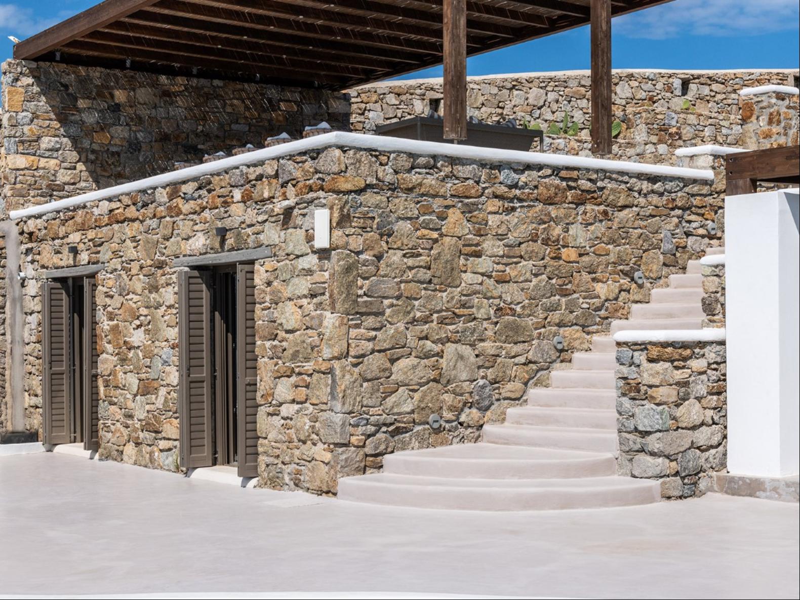 Perched in Fanari, this private haven boasts awe-inspiring sea vistas and unforgettable sunsets, combining seclusion with easy access to Mykonos Town’s vibrant nightlife. The property has a total of 8 Bedrooms and 9 bathrooms and expands in three levels: the ground floor, the pool floor, and the lower floor.The design of the villa is modern, with minimal interiors in pastel colors. The rooms are airy with elegant en suite bathrooms and art deco elements. The ground level consists of an open plan fully equipped kitchen, with a dining table and cozy lounge corners in nude tones.The outdoor areas are designed to appeal to guests with a variety of amenities. The private infinity swimming pool plays a central role and the alfresco jacuzzi is there to offer you relaxation moments with your loved ones. One of the highlights of the space is the pool bar, ready to serve you and your guests at the unforgettable Mykonian nights. The outdoor area includes 2 shaded dining areas, 2 shaded outdoor lounge areas, and outdoor gym equipment for you to enjoy.In this exclusive estate, every corner is at your disposal!