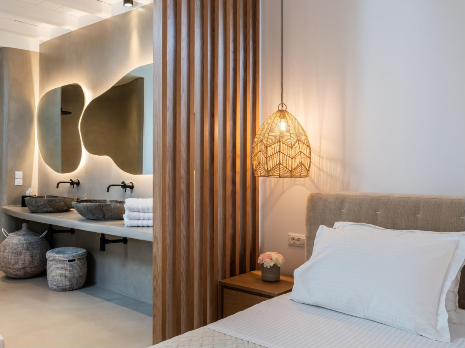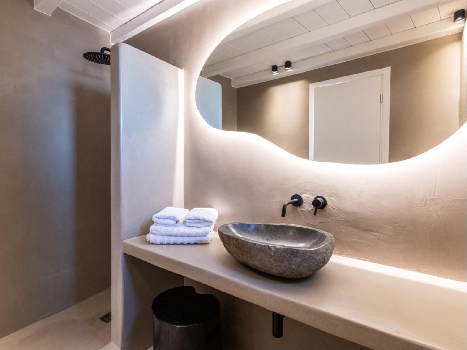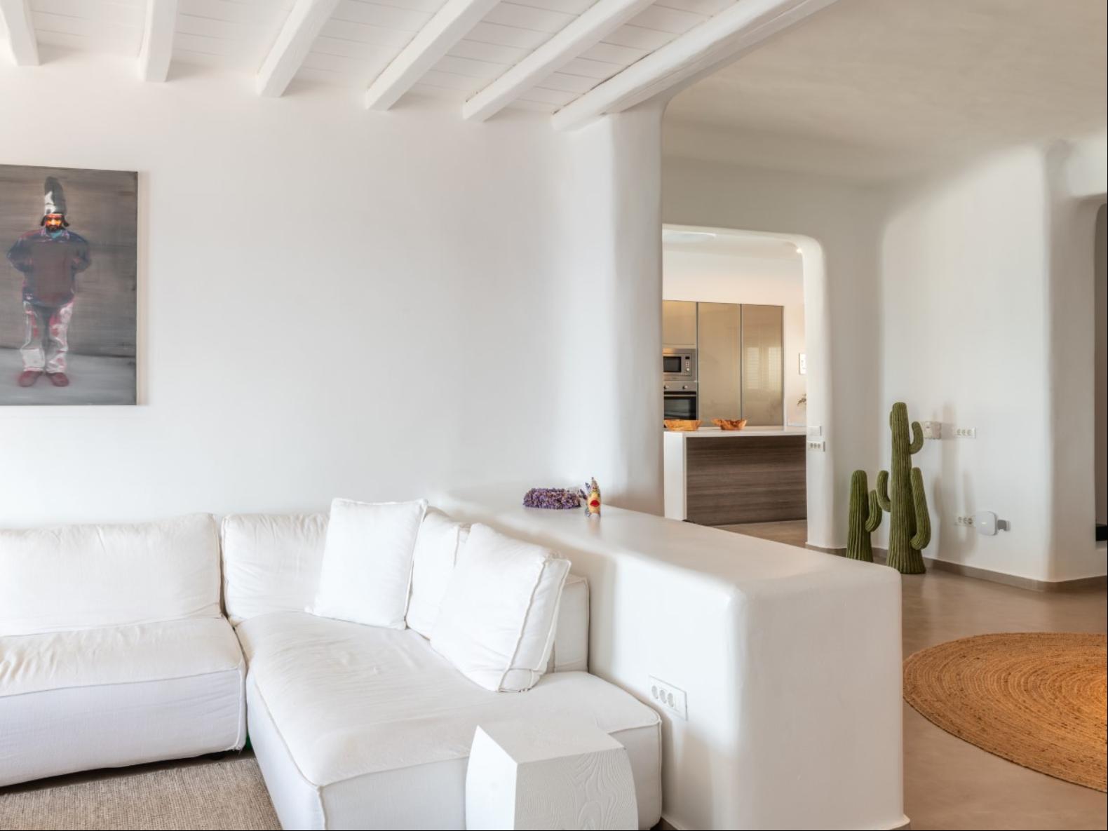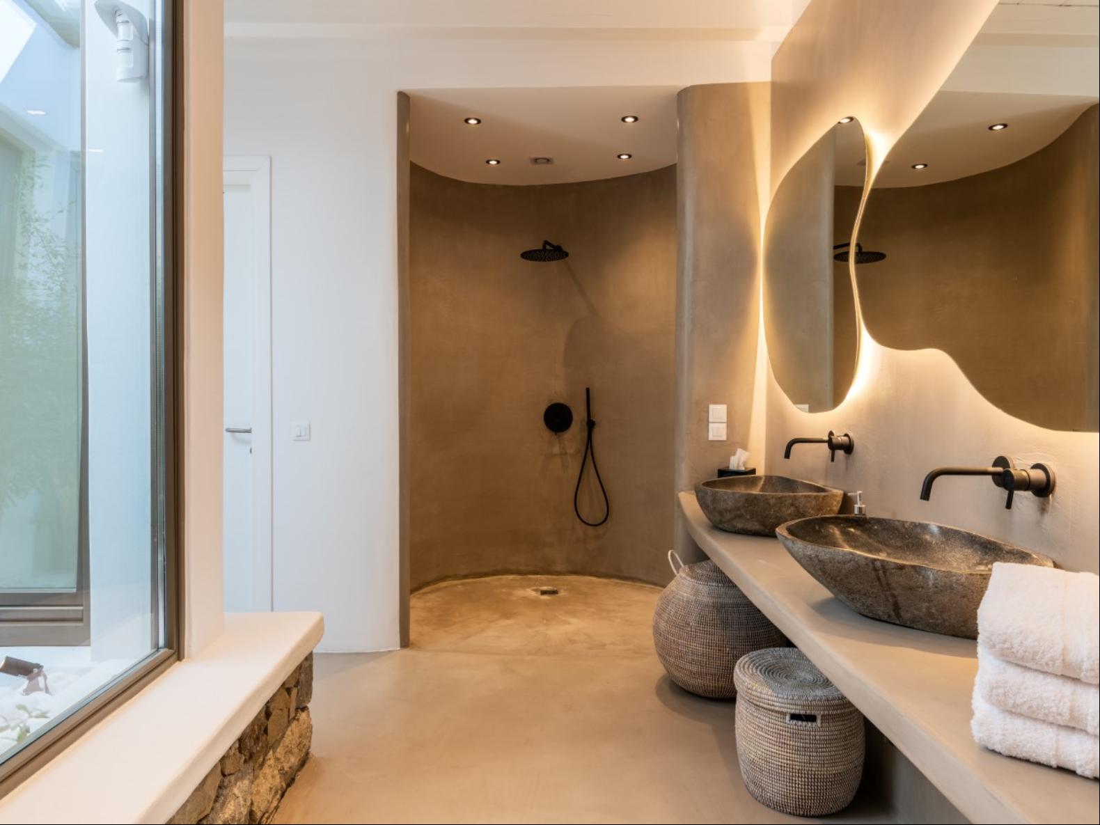 Perched in Fanari, this private haven boasts awe-inspiring sea vistas and unforgettable sunsets, combining seclusion with easy access to Mykonos Town’s vibrant nightlife. The property has a total of 8 Bedrooms and 9 bathrooms and expands in three levels: the ground floor, the pool floor, and the lower floor.The design of the villa is modern, with minimal interiors in pastel colors. The rooms are airy with elegant en suite bathrooms and art deco elements. The ground level consists of an open plan fully equipped kitchen, with a dining table and cozy lounge corners in nude tones.The outdoor areas are designed to appeal to guests with a variety of amenities. The private infinity swimming pool plays a central role and the alfresco jacuzzi is there to offer you relaxation moments with your loved ones. One of the highlights of the space is the pool bar, ready to serve you and your guests at the unforgettable Mykonian nights. The outdoor area includes 2 shaded dining areas, 2 shaded outdoor lounge areas, and outdoor gym equipment for you to enjoy.In this exclusive estate, every corner is at your disposal!