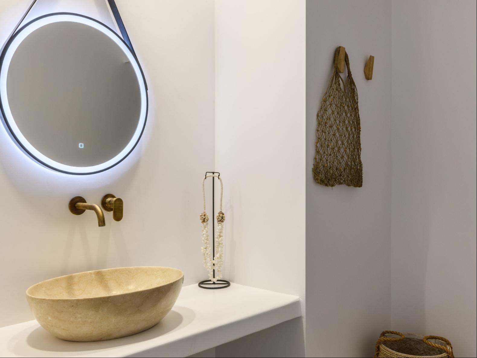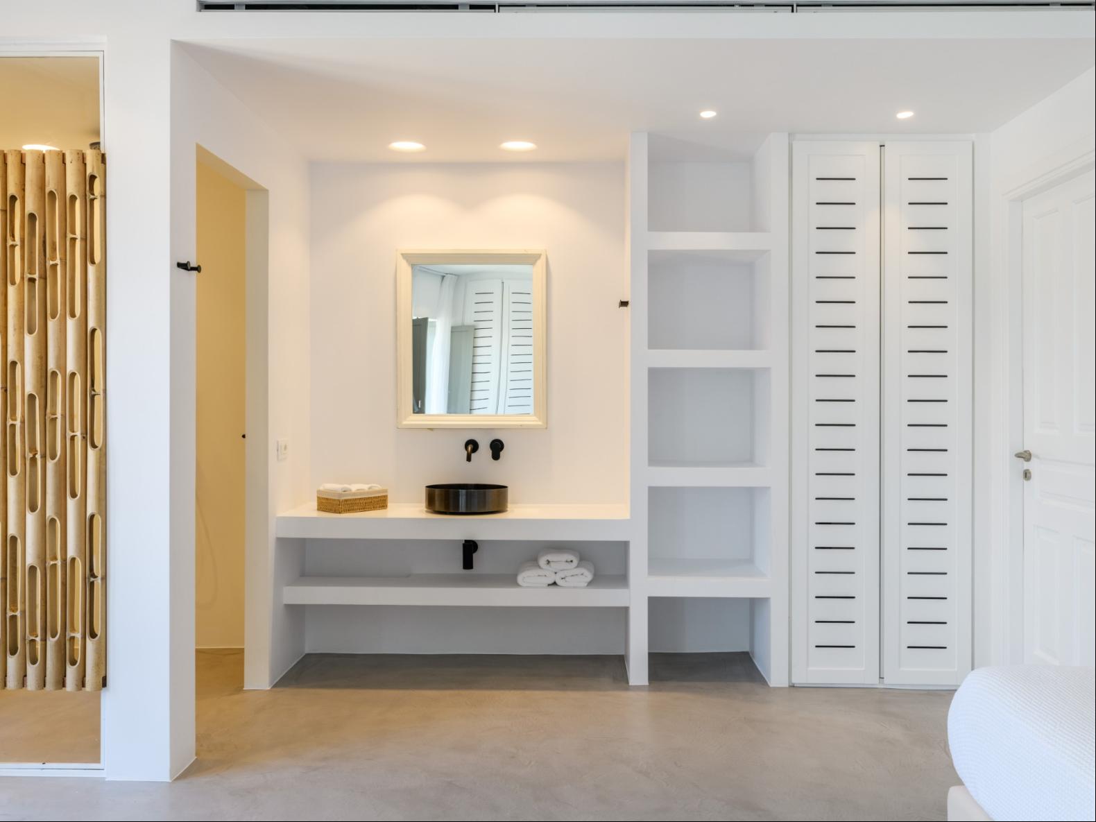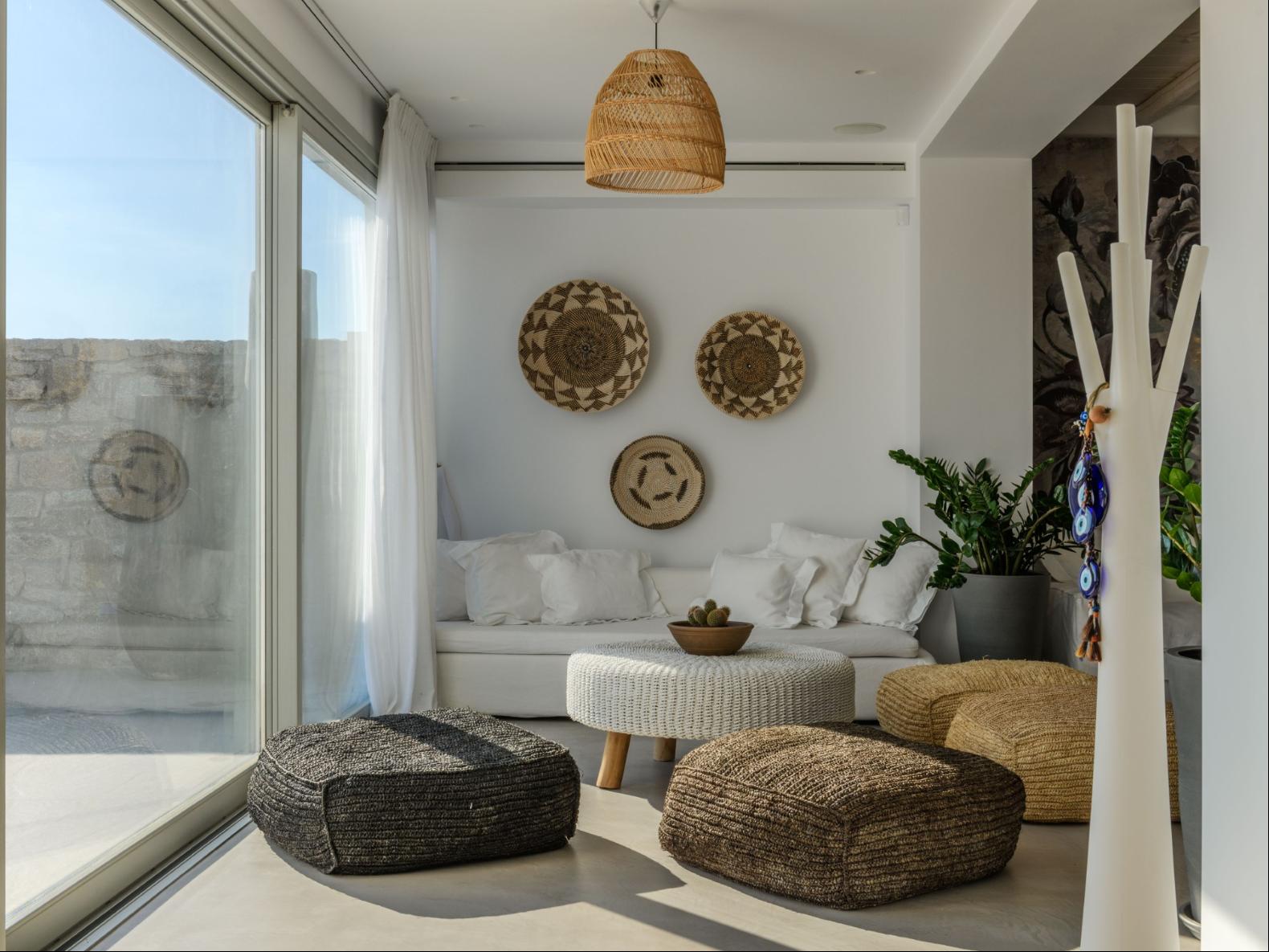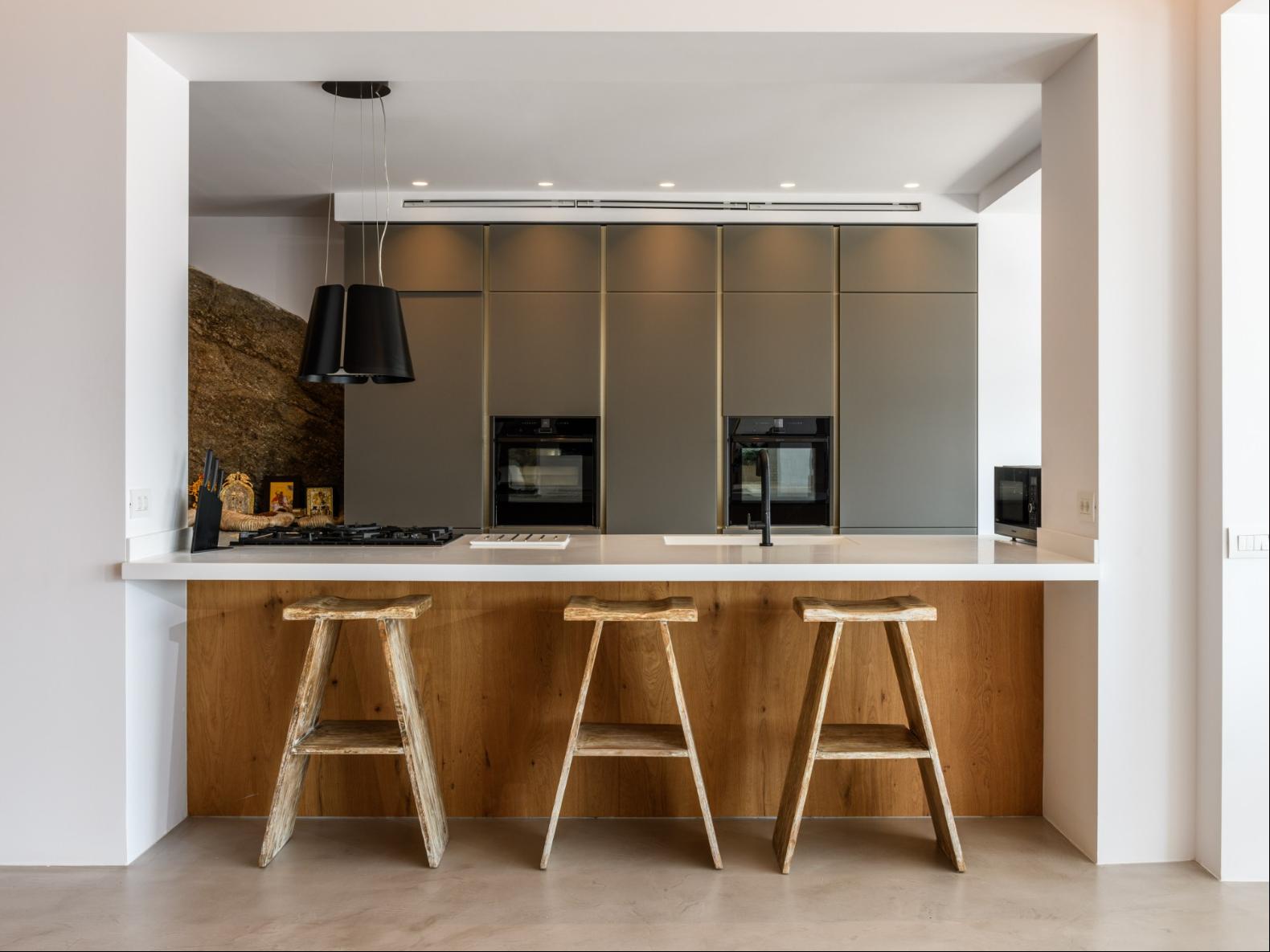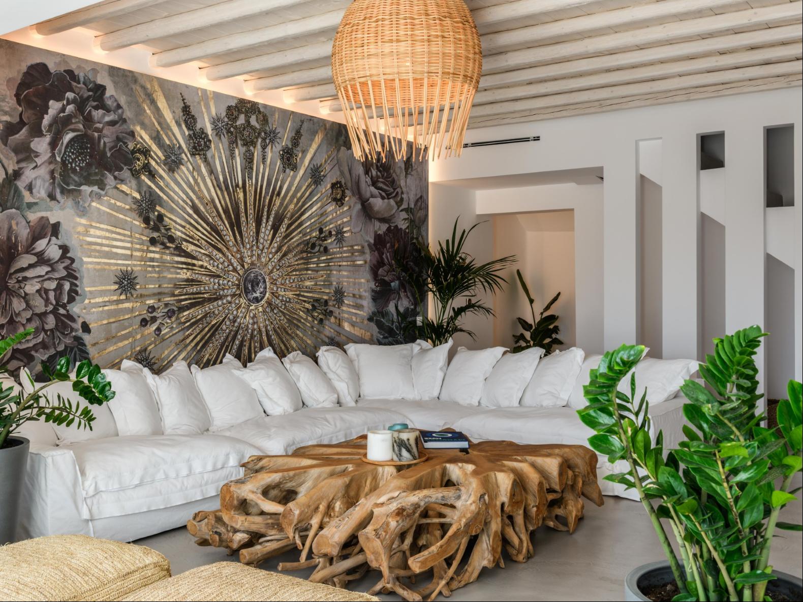 A newly built estate situated in the prime Kanalia area, just steps from the renowned Ornos Beach and Santa Marina Hotel. Perched on a hillside, it offers sweeping views of Korfos Bay and the iconic whitewashed houses of Mykonos Town. The property can accommodate 14 guests and consists of 3 levels in total. On the main level the guest can find the common area like the living room , the kitchen and the dinning area as well as 3 double bedrooms. On the same level you can enjoy the majestic wine cellar that decorates the main floor. On the lower level you can find 3 more double bedrooms and on the upper floor is locate the Master Bedroom. Enjoy breathtaking panoramas from this hillside estate, where the Aegean Sea stretches as far as the eye can see. Enjoy your private infinity pool after a long day at the near by famous beach clubs of Mykonos and spend chill afternoons under the warm Greek sun with a tropical cocktail in your hand!