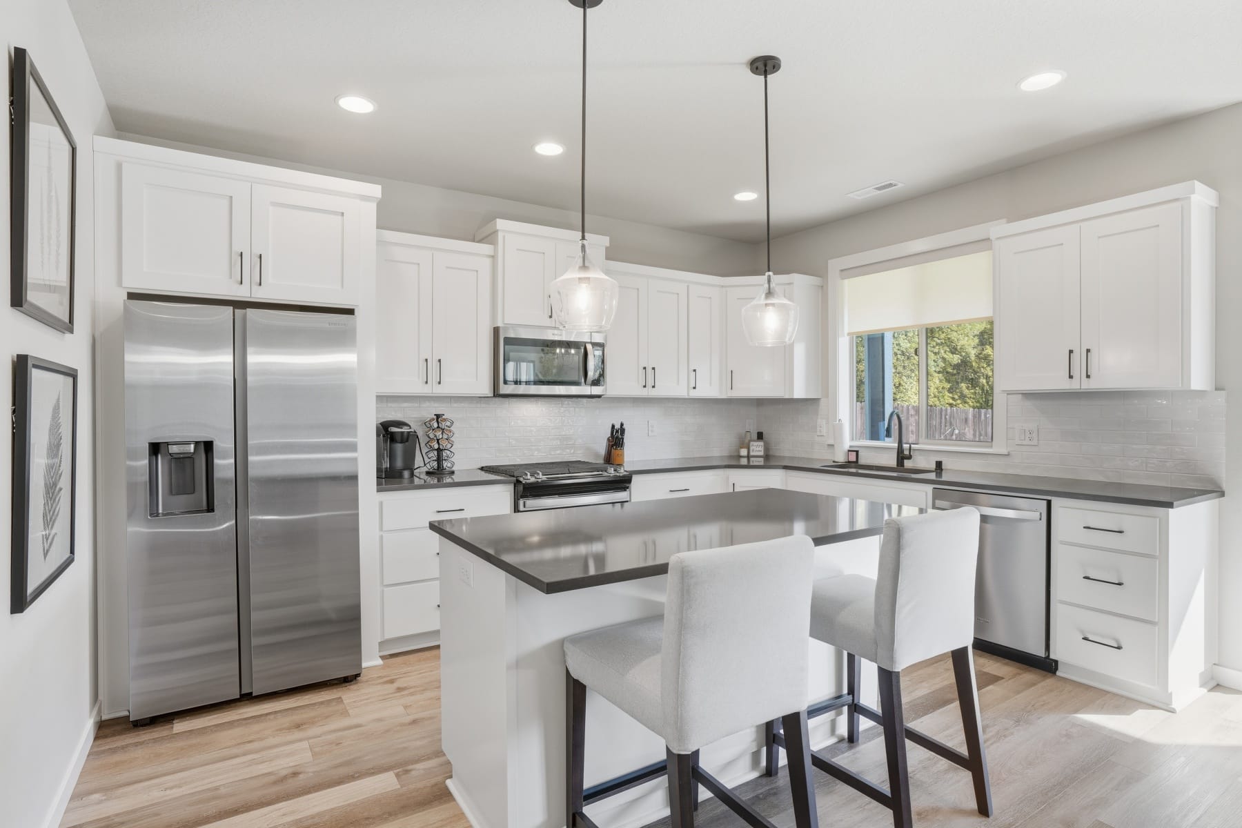 Beautifully maintained & fabulous floorplan, this like-new home is ready for immediate occupancy and offers a seamless transition for buyers seeking convenience and comfort. Tastefully decorated throughout, the main level features a spacious family room with a gas fireplace and a stunning surround. The fully equipped open-concept kitchen includes an island, walk-in pantry, and ample cabinetry, ideal for everyday living and entertaining. The dining area offers large windows overlooking the private, southern-facing backyard, providing abundant natural light.A separate main-floor office offers flexible space for work or additional living needs. Upstairs includes three bedrooms plus a generous loft/media area, providing versatile living space. The tastefully appointed primary suite features vaulted ceilings, a walk-in closet, and an ensuite bath with separate shower and soaking tub. The laundry room includes a washer and dryer and storage for added convenience. Additional features include air conditioning for year-round comfort and a generous backyard that backs to green-space, offering added privacy. Located in a quiet neighborhood with convenient access to shopping, dining, and services, this property presents a true turnkey opportunity with furnishings included. This is a must see'