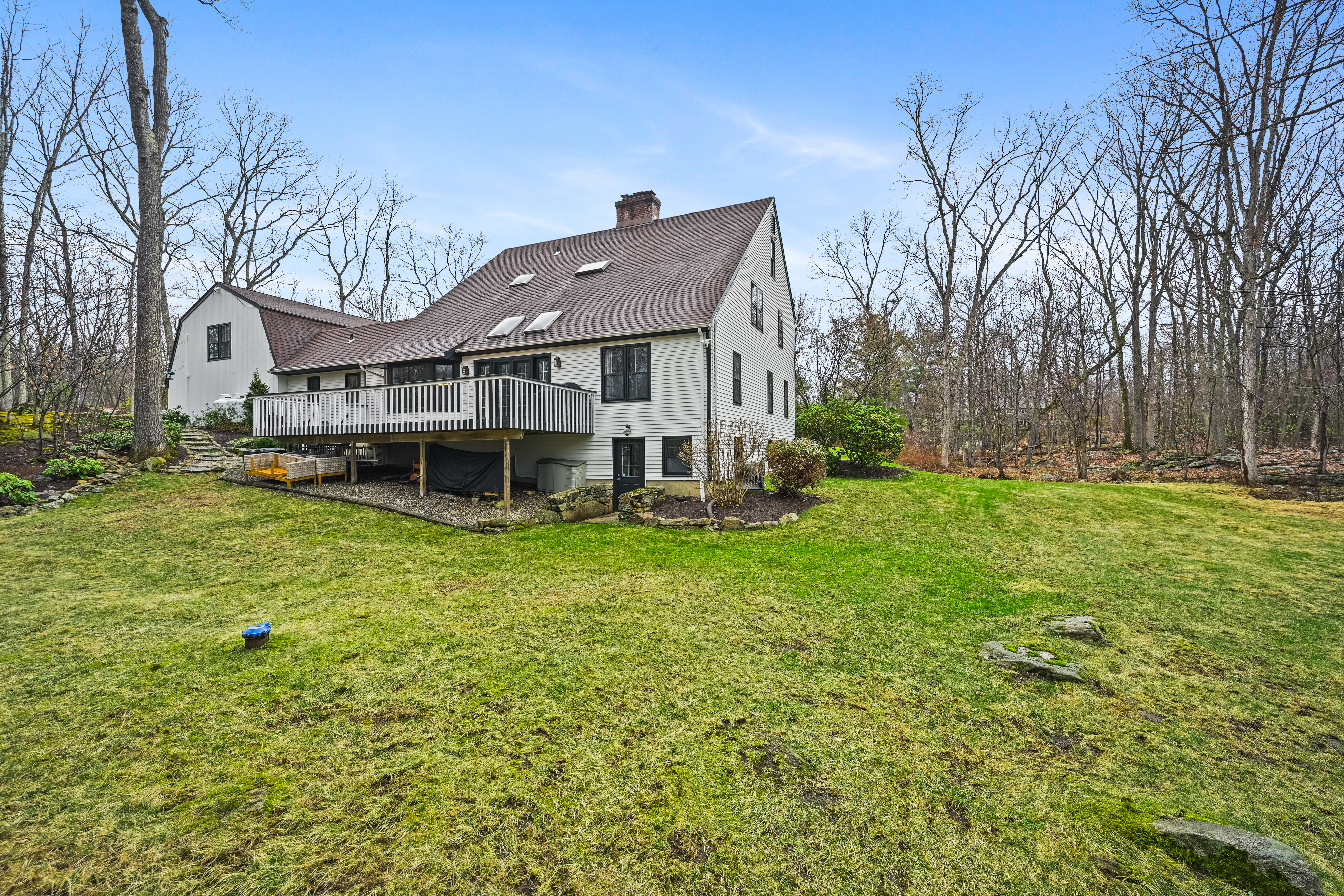 A quiet country lane near the Lake Club (pool lake and tennis club) introduces this lovely Colonial set back on a beautiful, level property. The desirable open floor plan encompassing a warm and inviting kitchen and family room w/ a stone fireplace encourages lingering and relaxation. The gracious living room also with a fireplace and an expansive dining room are perfect for more formal entertaining. A large bonus room, 1st floor office, laundry and mudroom complete this level. The master suite enjoys a full bath and walk-in closet. Down the hall are three additional bedrooms and large hall bath. Finished walk-out lower level. Convenient location.