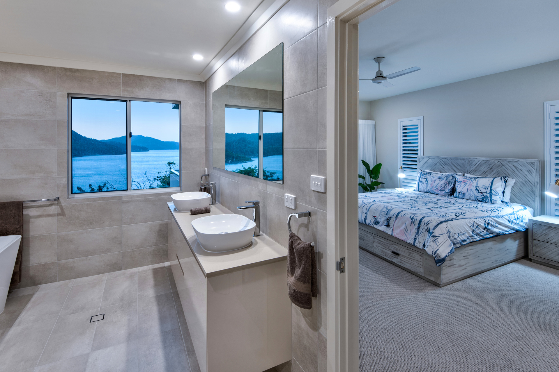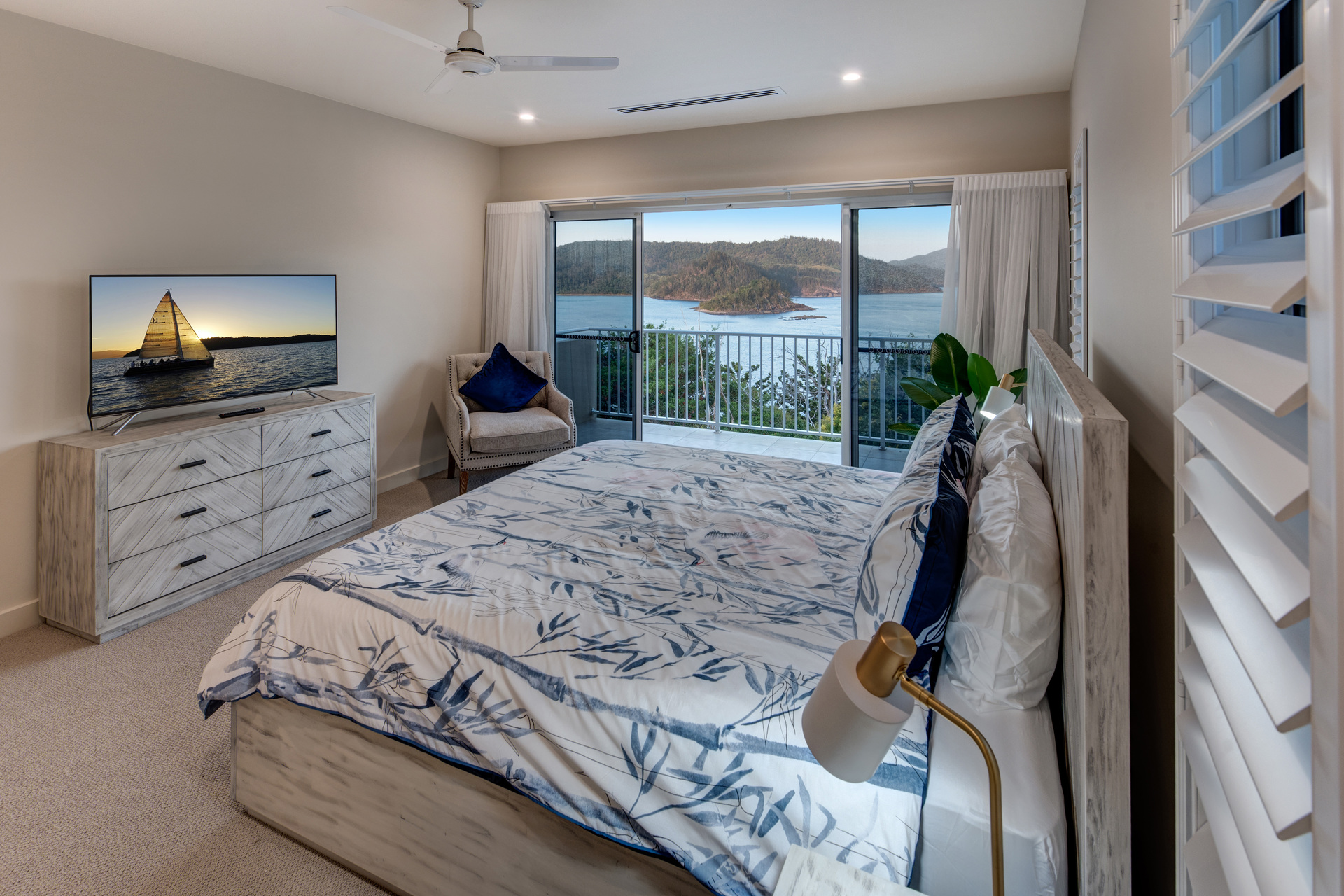This beautifully designed property exudes sophistication and class. Step inside to 3.2m high ceilings in the main living hub, complete with a modern gourmet kitchen, spacious dining area, and a generous living space flowing seamlessly to the patio and lawn. Enjoy uninterrupted views of the crystal-blue waters of Fitzalan Passage and the Whitsunday Islands.