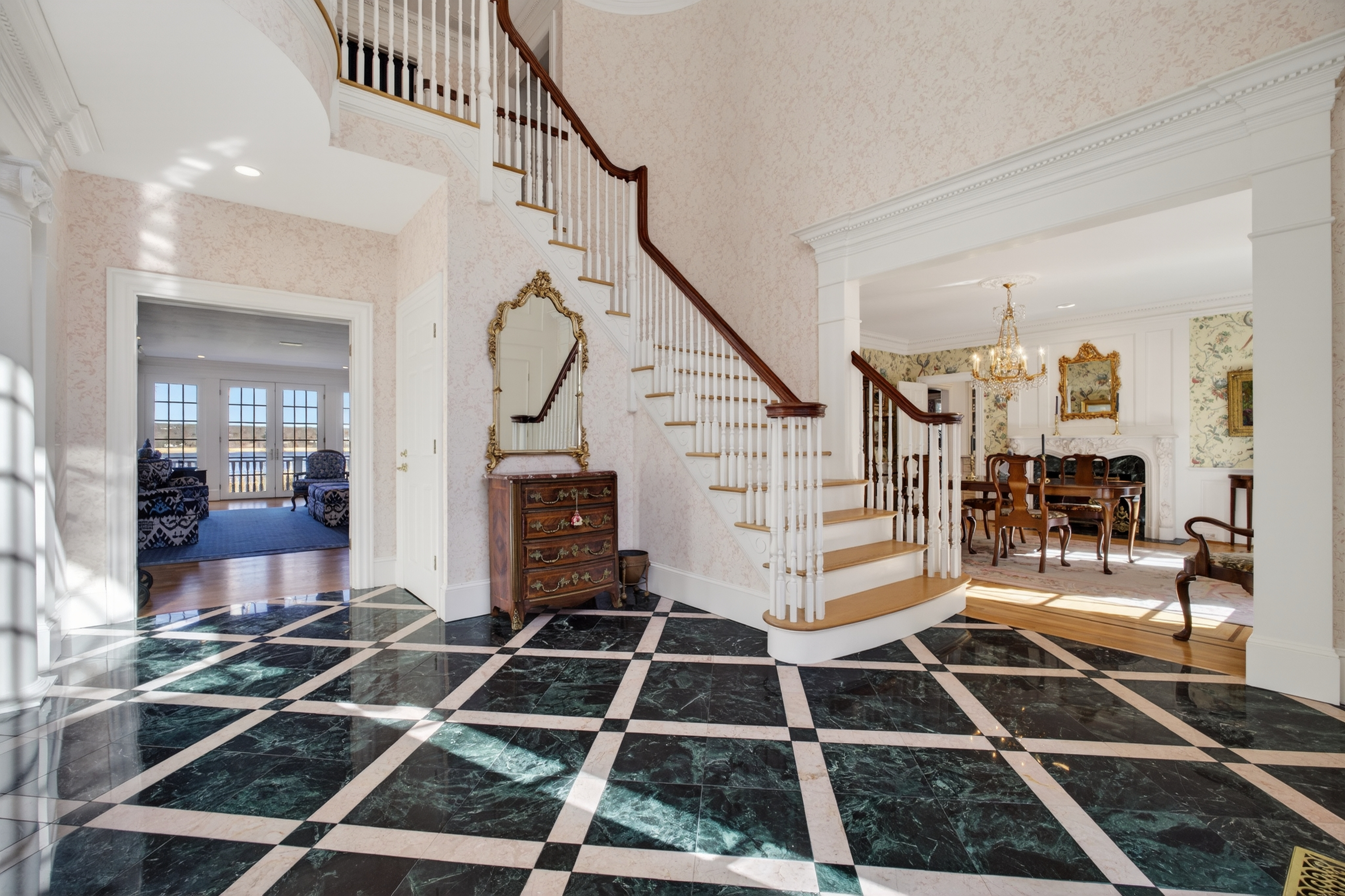 Riverside Elegance Meets Neoclassical Grandeur: Experience the pinnacle of waterfront living in this breathtaking Grecian Colonial estate, perfectly situated on 3.43 pristine acres overlooking the majestic Connecticut River. Spanning an impressive 5,739 square feet, this residence combines timeless architectural sophistication with the serene beauty of nature. Leave the world behind as you travel up the winding driveway that sets this home back from the road for ultimate privacy. The exterior is a master class in curb appeal, featuring a three-car garage and a porte cochere, all framed by lush landscaping and your own private pond and a dock. Step through the front door into a soaring cathedral ceiling foyer. As the heart of the home, this space is open to the floor above and finished with exquisite marble flooring, offering a regal welcome to guests. The floor plan is defined by wide-open spaces that flow seamlessly from one room to the next, making it as ideal for grand-scale entertaining as it is for quiet relaxation. With six spacious bedrooms, there is ample room for family, guests, or a dedicated home office suite. Embrace the river breeze from your choice of outdoor vantage points: This isn't just a home; it's a lifestyle. Whether you are watching the seasons change over the Connecticut River or enjoying the tranquil reflections on your private pond, this estate offers a rare blend of scale, light, and location.