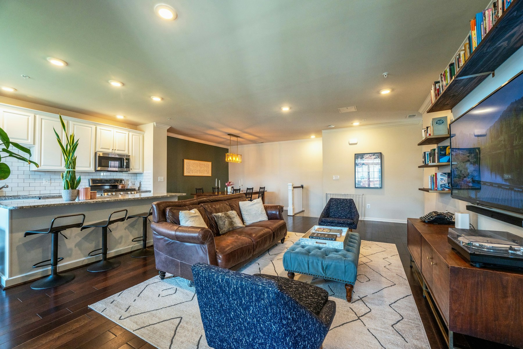 Step into this beautifully maintained 2-bedroom, 2.5-bath condominium, where thoughtful design and quality craftsmanship come together seamlessly. The open-concept great room welcomes you with rich hardwood floors, beautiful custom floating shelves and effortless access to a charming, covered porch — the perfect spot for morning coffee or unwinding at the end of the day. At the heart of the home, the kitchen truly shines. Crisp white cabinetry, granite countertops, a stylish backsplash, and a spacious center island create an inviting space ideal for both everyday living and easy entertaining. A convenient powder room completes the main level. Upstairs, the primary suite offers a peaceful retreat with its private en-suite bath and generous walk-in closet. The secondary bedroom is equally spacious and enjoys access to a well-appointed hall bath. A versatile upper landing provides the perfect nook for a home office, and the washer and dryer are thoughtfully located on the bedroom level for added convenience. Perfectly situated between Brambleton Town Center and the Ashburn Metro Station, this home offers unbeatable access to shopping, dining, and major commuter routes. Residents enjoy a beautifully landscaped community filled with resort-style amenities, including three clubhouses, multiple pools, party rooms, fitness centers, basketball and tennis courts, and scenic walking trails. With close proximity to Dulles Airport and key commuting corridors, this home blends comfort, convenience, and an exceptional lifestyle. Don’t miss the opportunity to make it yours. **** Front door access to #103 faces Stuarts Glen Terr*****